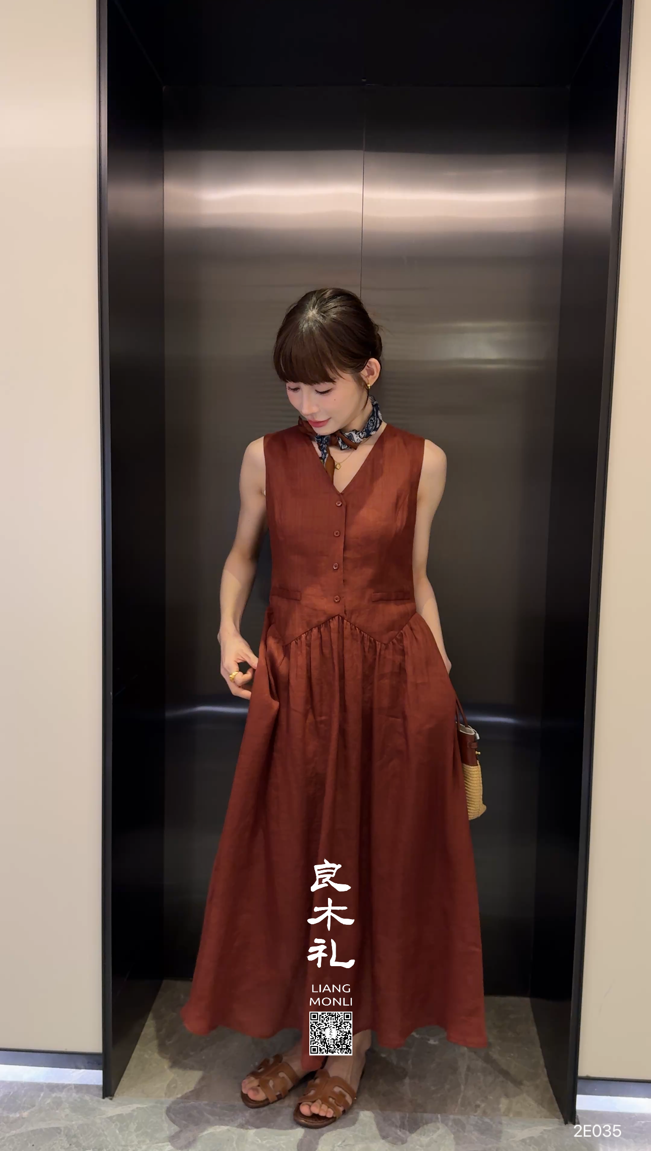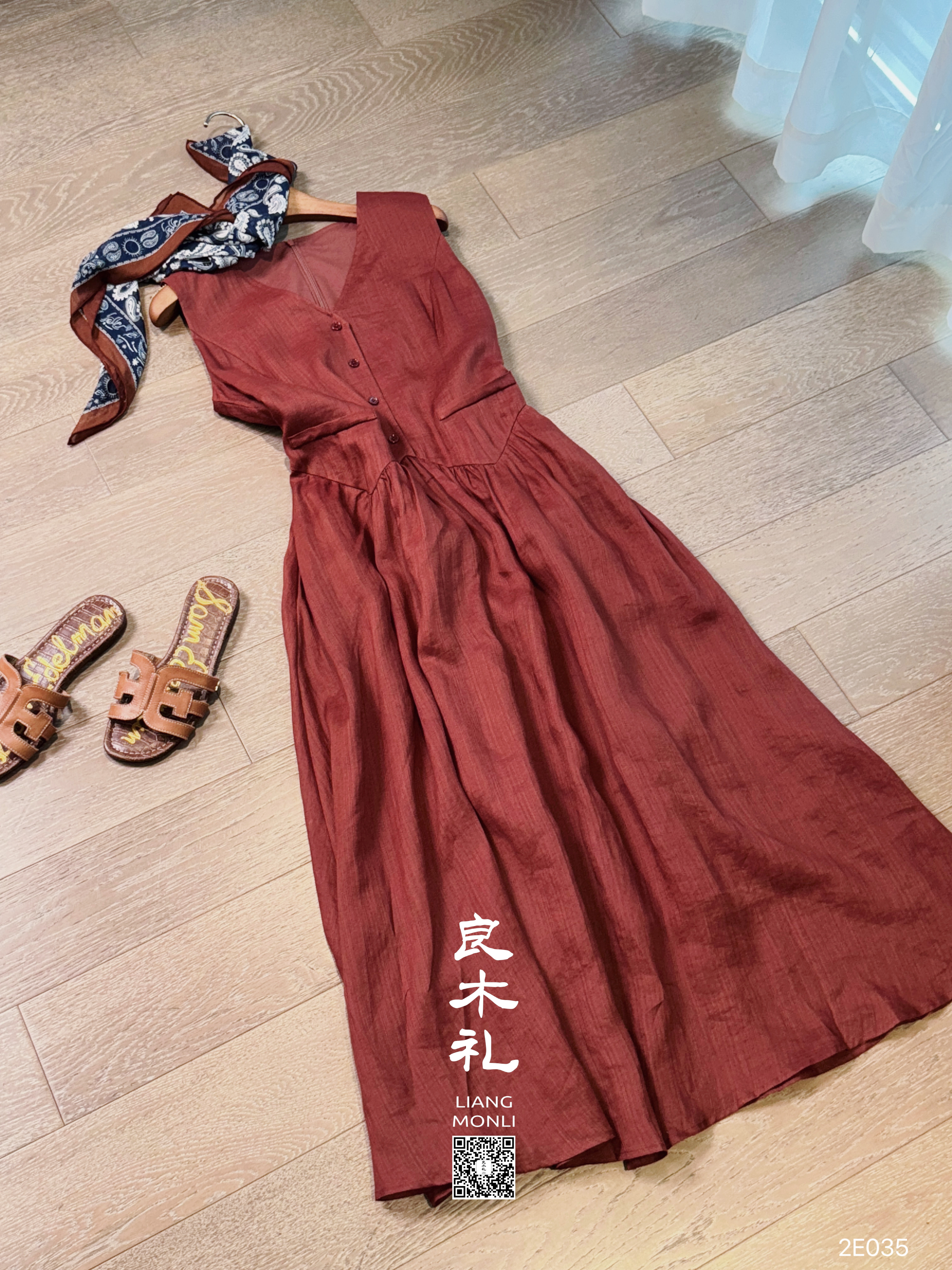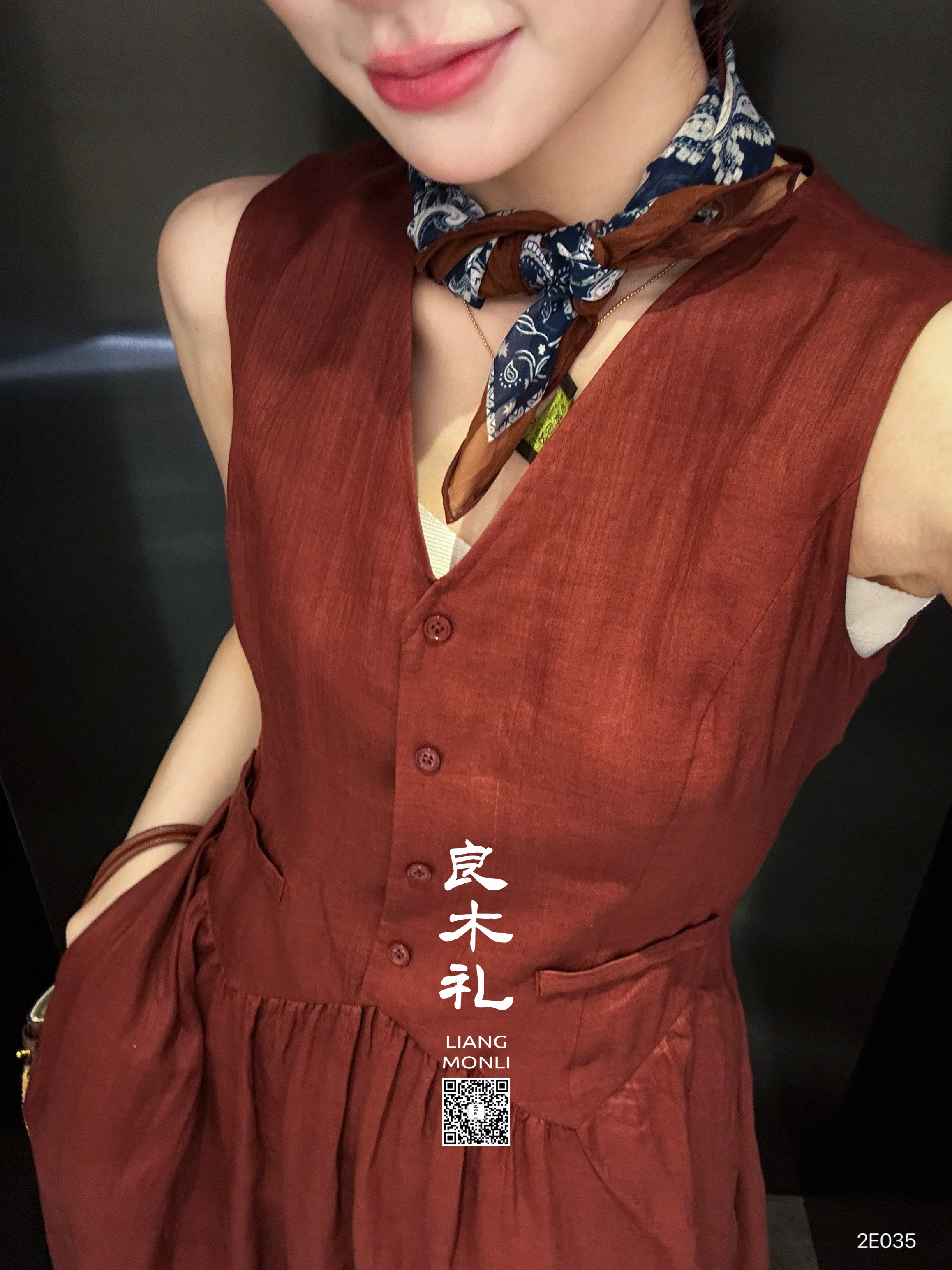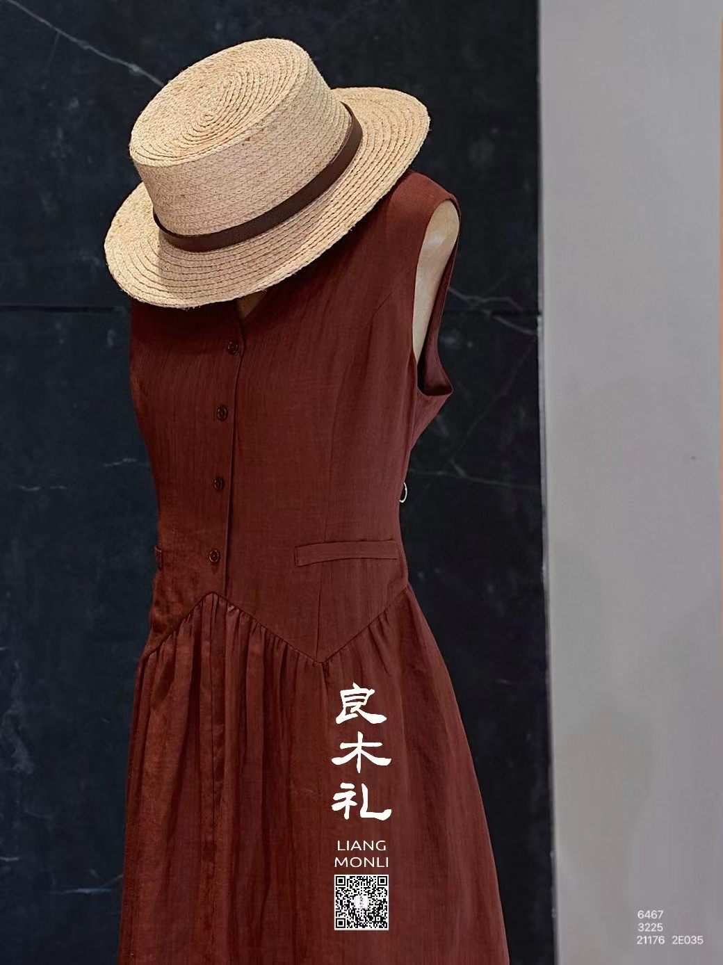 【卖完不补】良木礼亚麻马甲连衣裙套装(2E036-027)