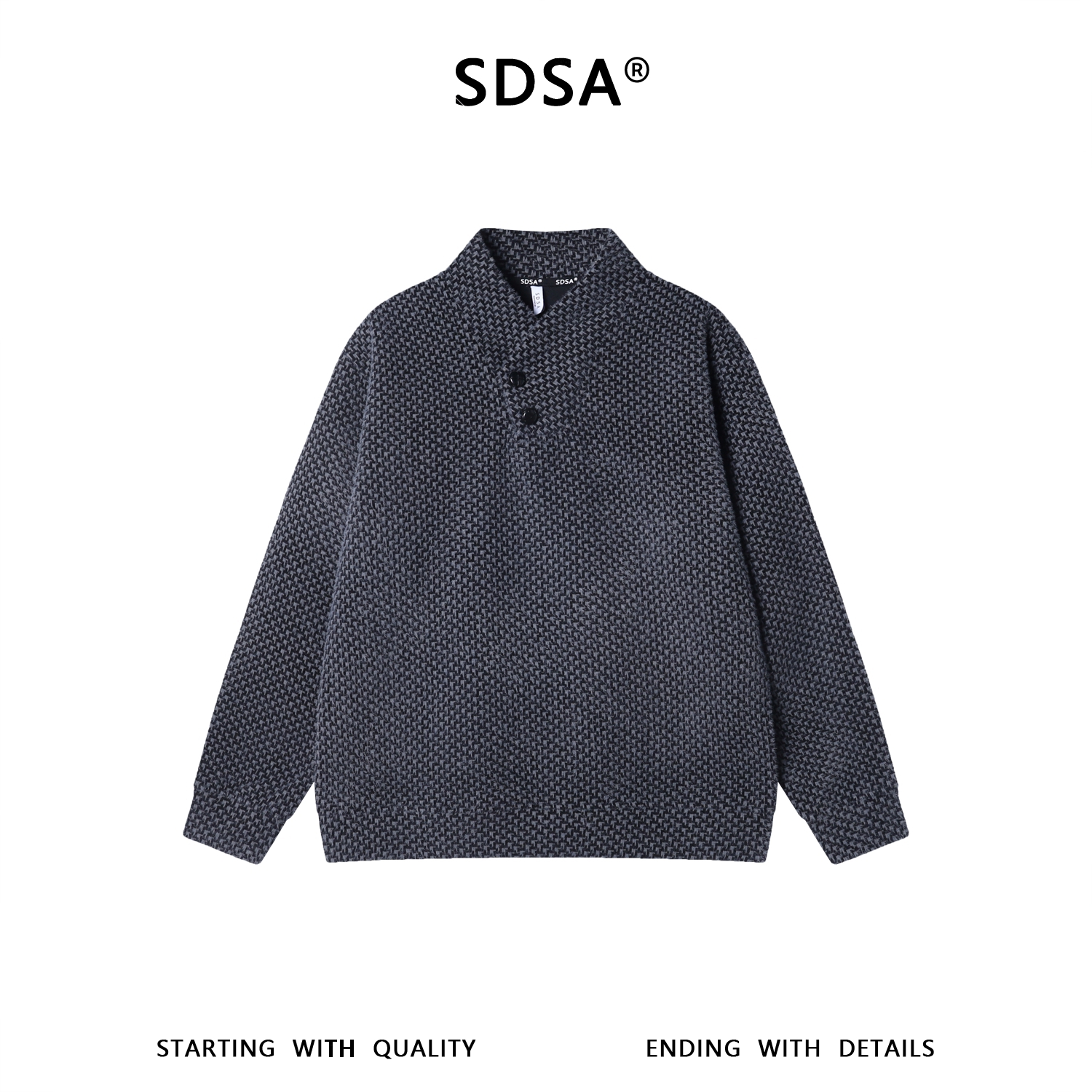 WY1565SDSA男士秋冬新款痞帅男装潮牌绒毛千鸟格纹保暖V领卫衣百搭时尚