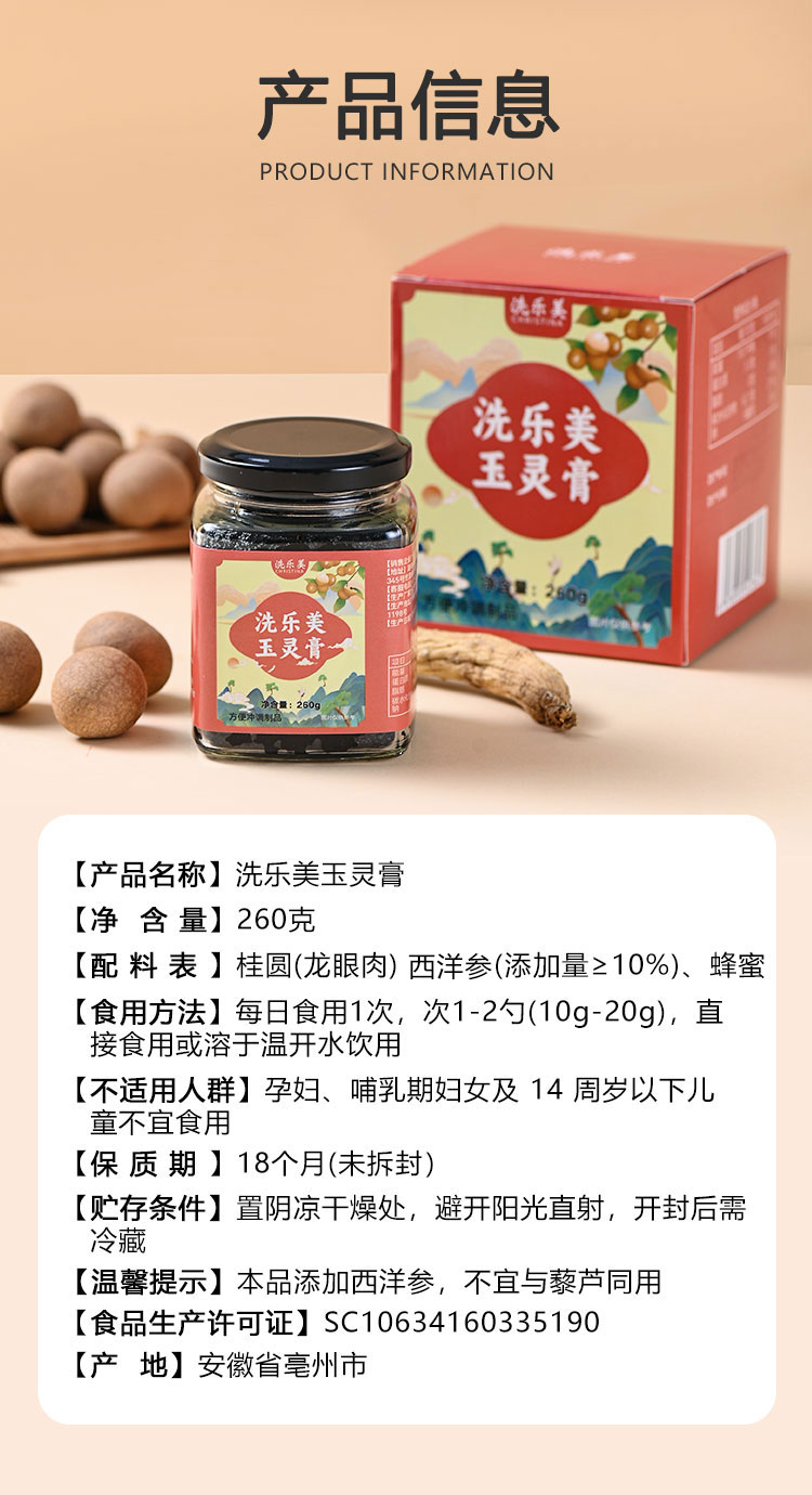 洗乐美玉灵膏蒸桂圆补气养血西洋参玉灵膏气色安神助眠官方旗舰店