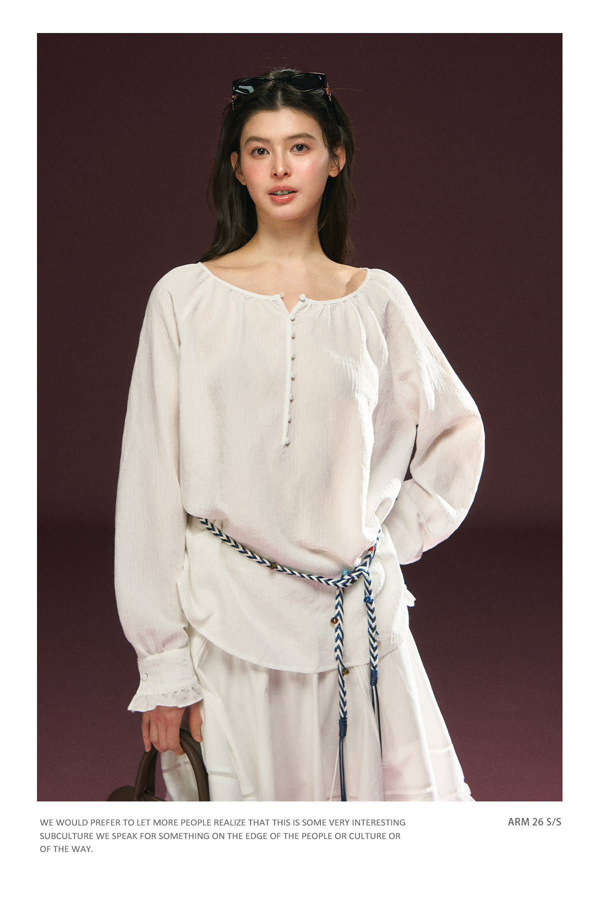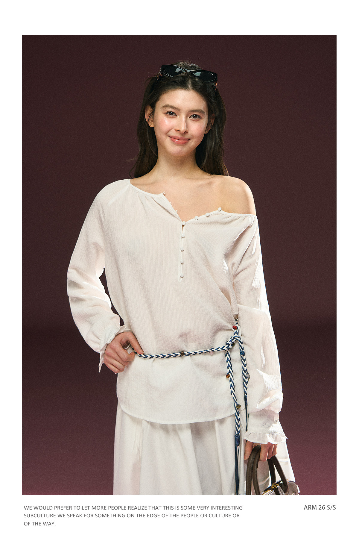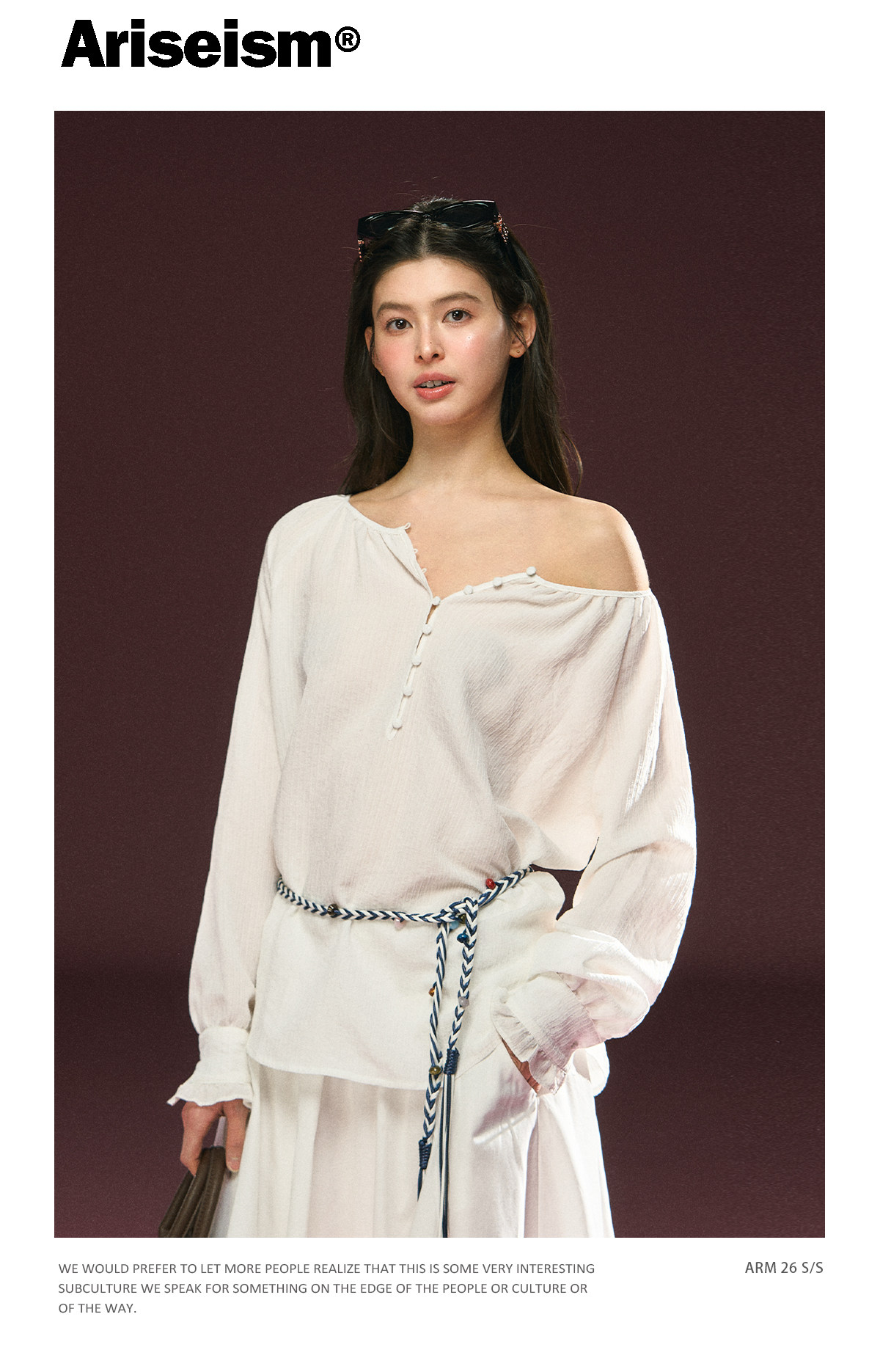 Ariseism 美式复古白色宽松多扣衬衫上衣女春季新款