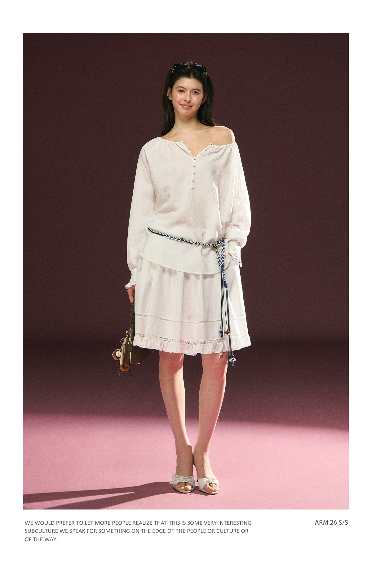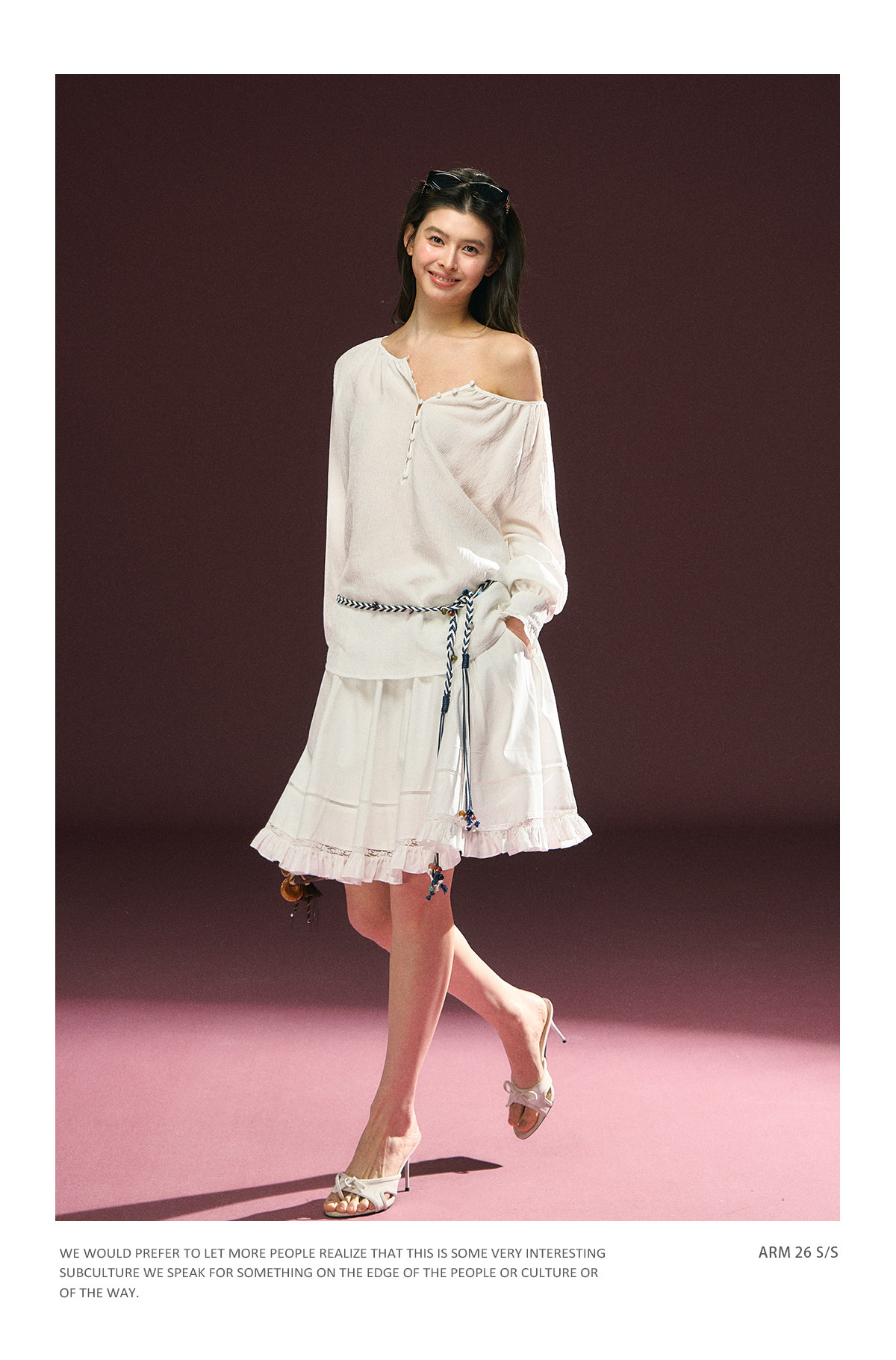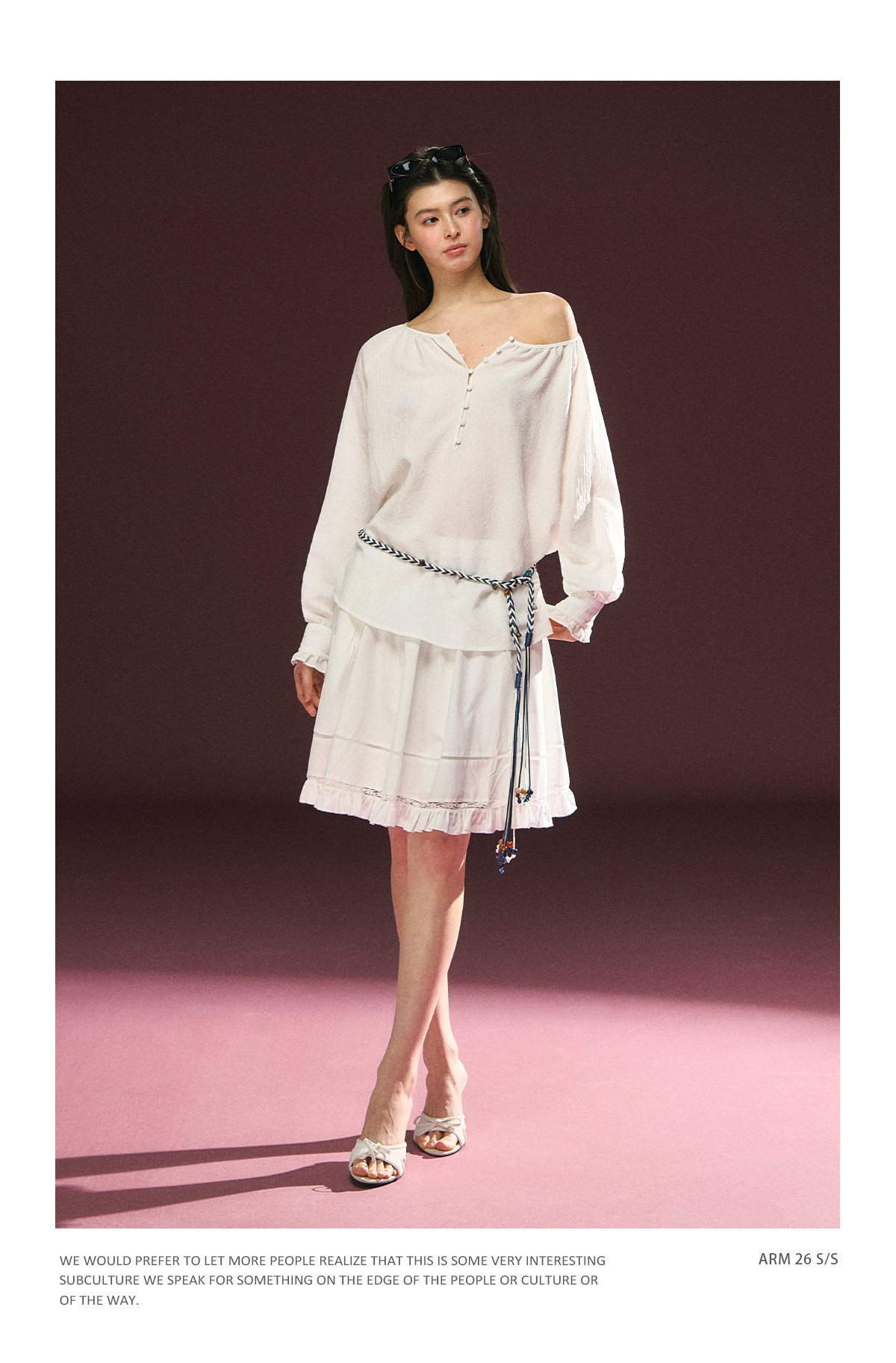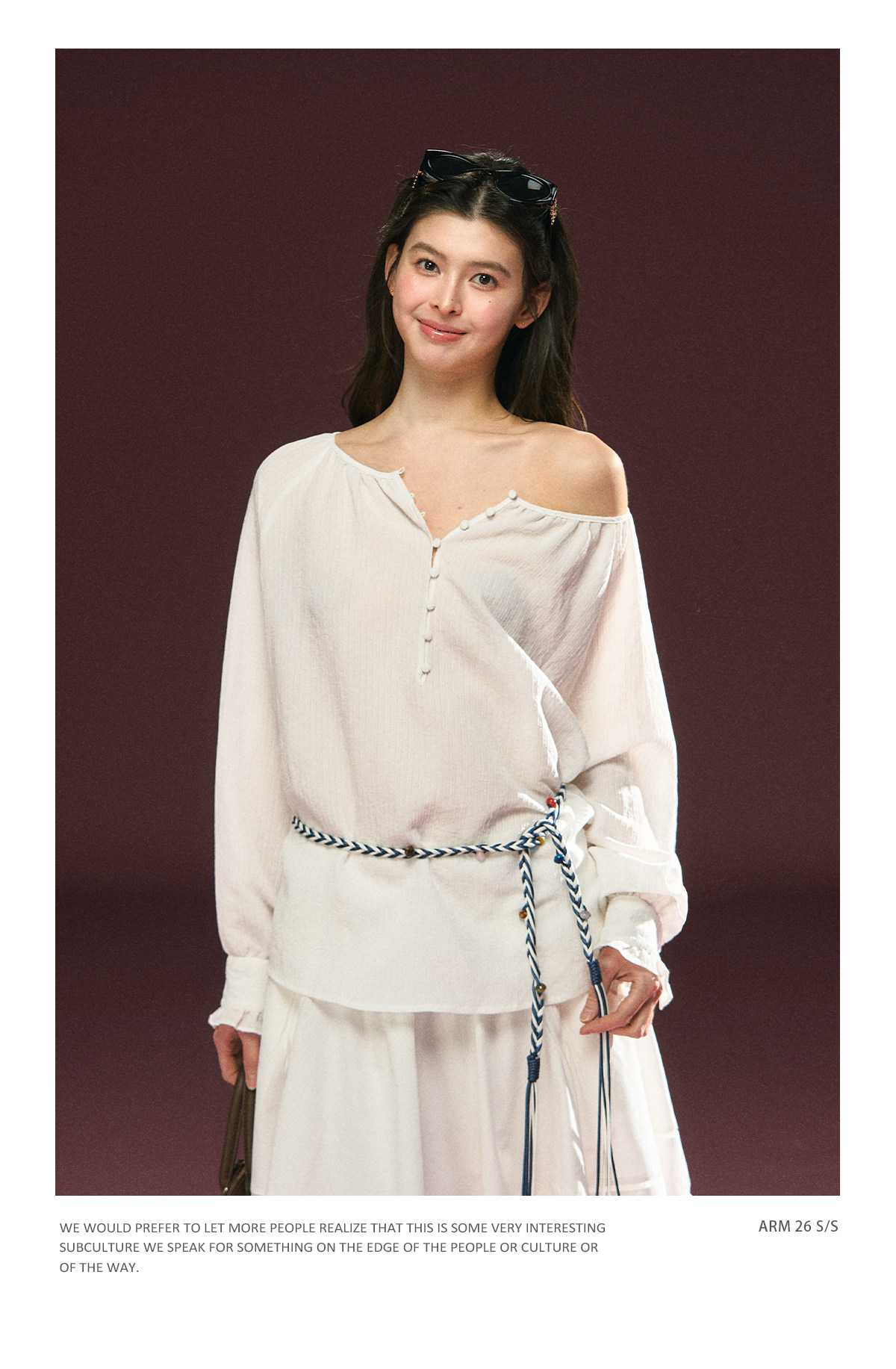 Ariseism 美式复古白色宽松多扣衬衫上衣女春季新款