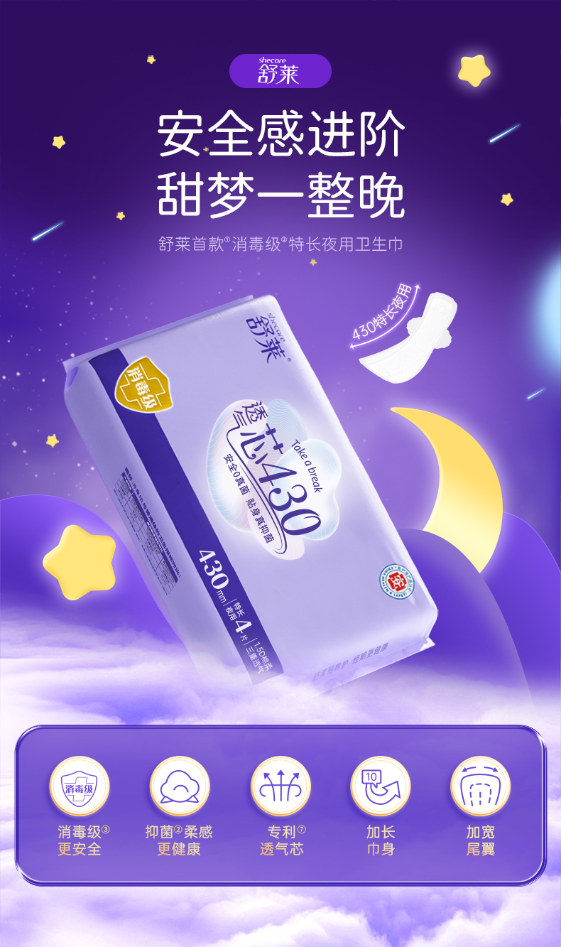 【量大的姐妹看过来】舒莱悬浮芯430mm超长夜用医护级卫生巾