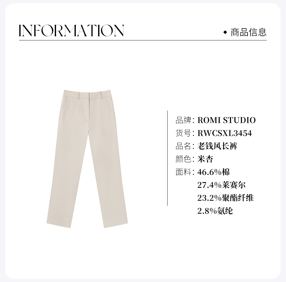 ROMI STUDIO“舒适自在”老钱弹力梭织挺括九分休闲裤 RWCSXL3454
