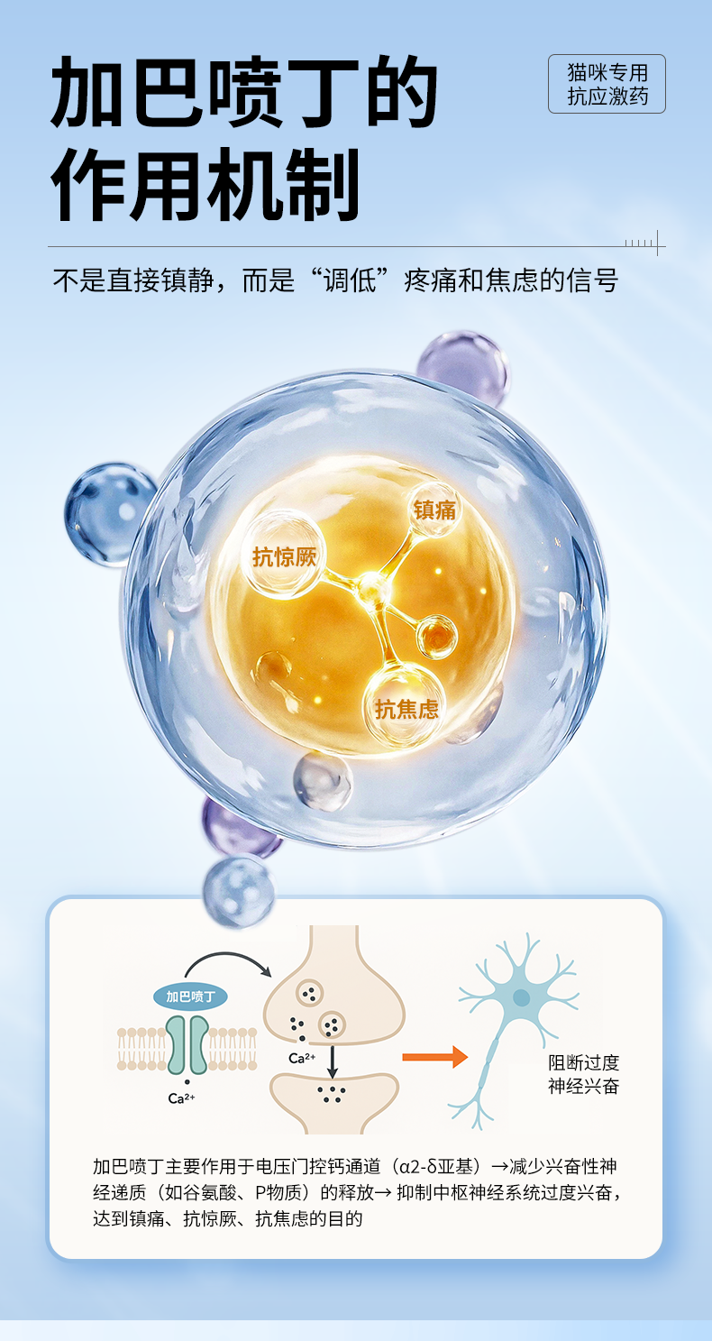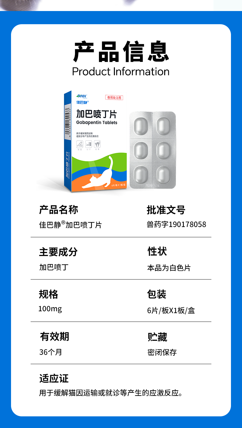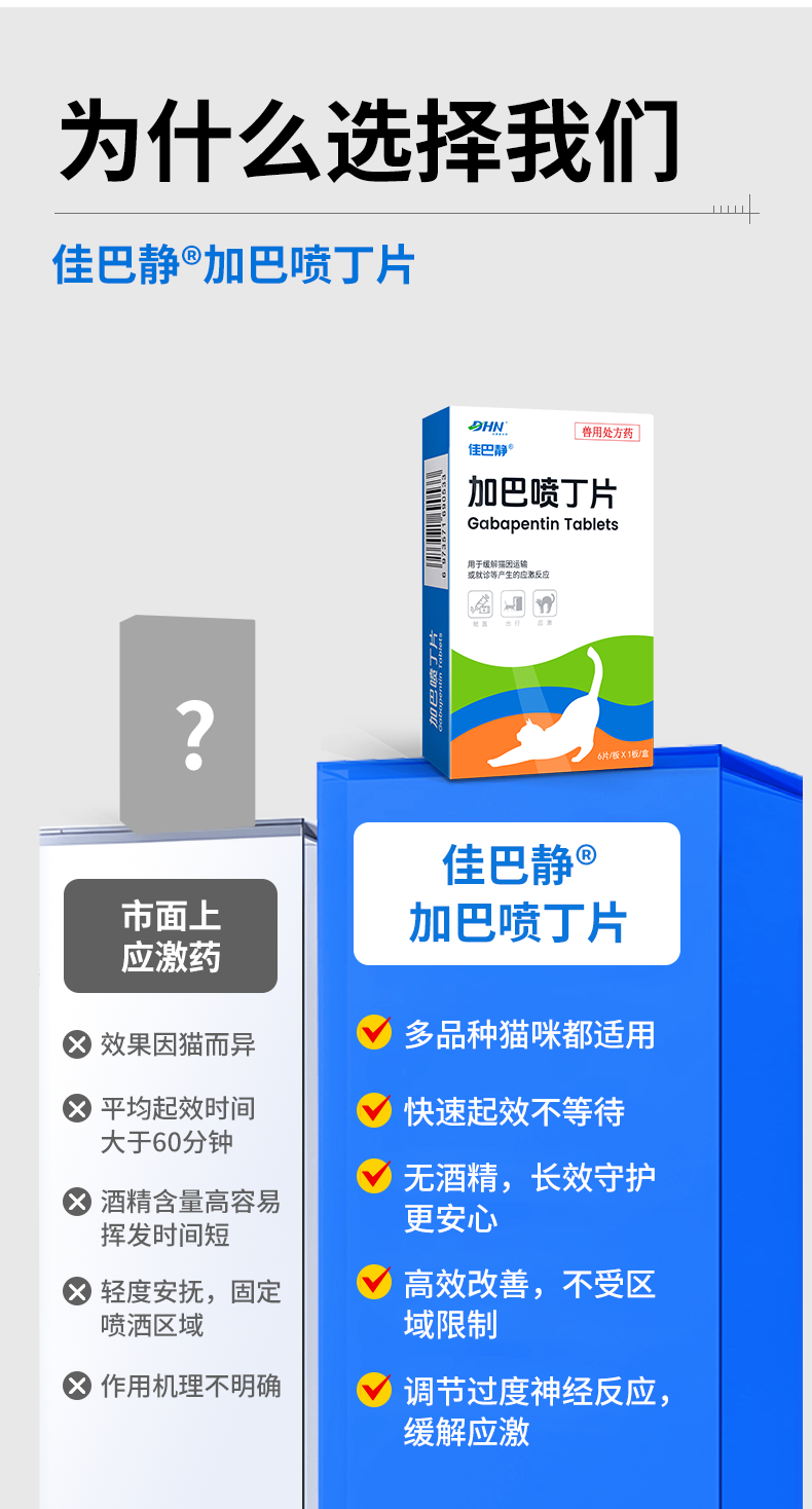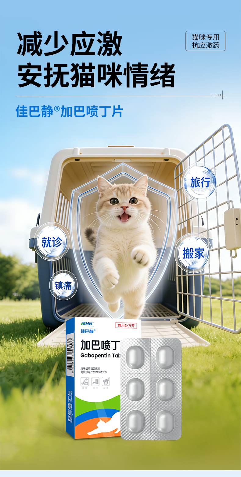 佳巴静加巴喷丁片剂宠物猫咪专用舒缓情绪防应激口炎尿闭止疼痛药