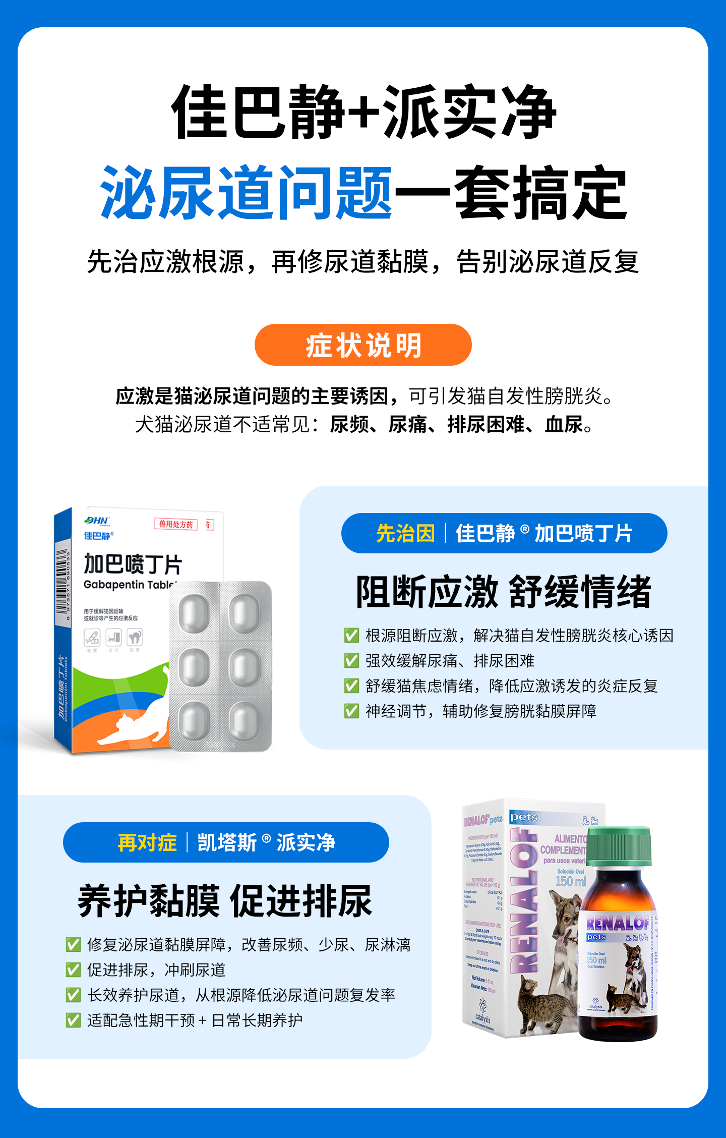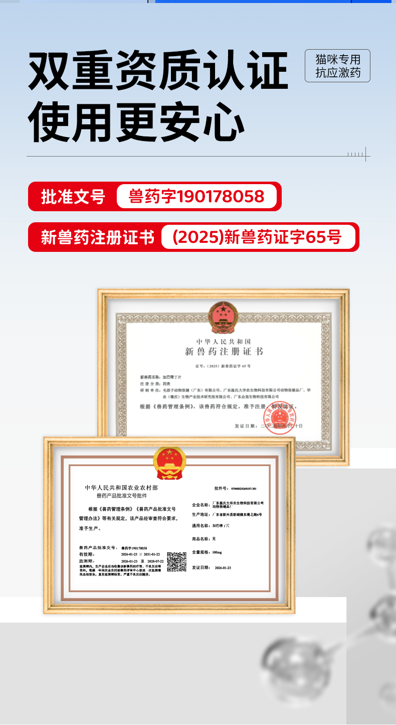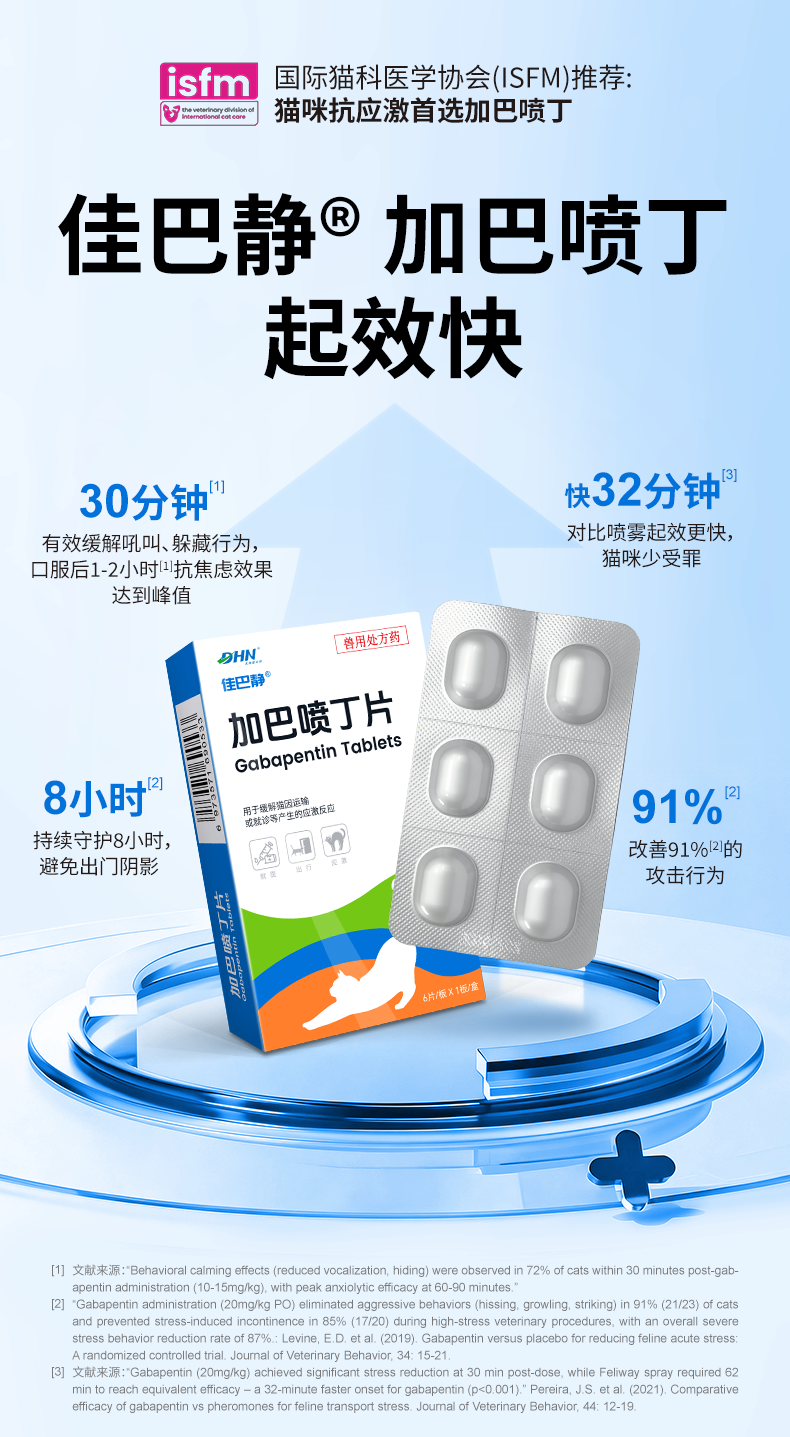 佳巴静加巴喷丁片剂宠物猫咪专用舒缓情绪防应激口炎尿闭止疼痛药