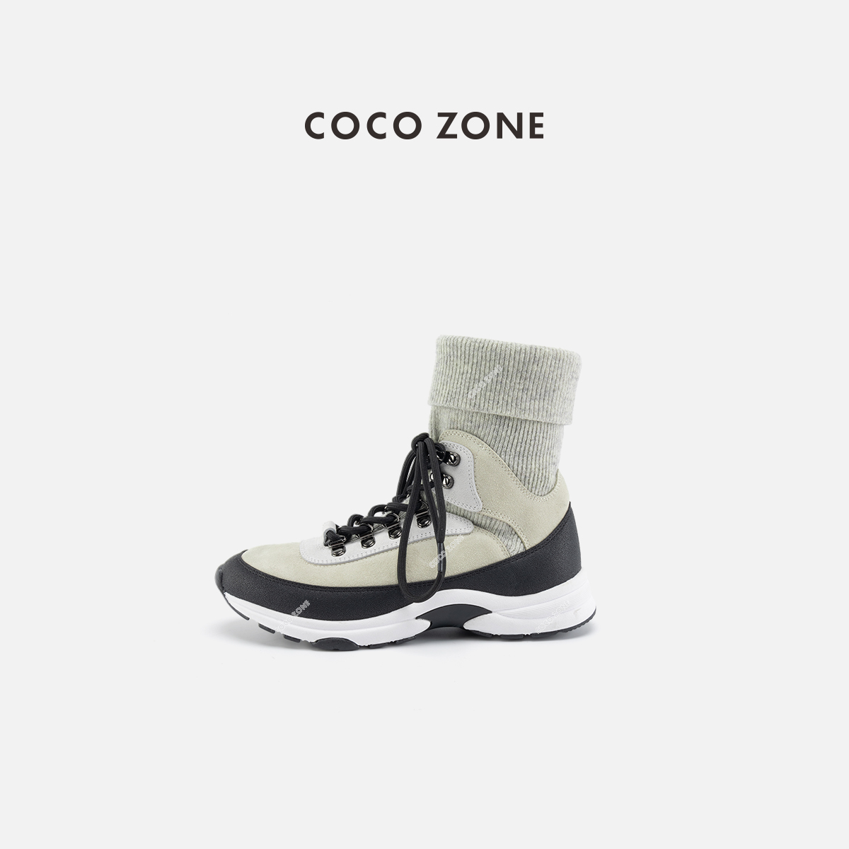 COCO ZONE 复古厚底系带休闲鞋拼色百搭女鞋CC2D2495