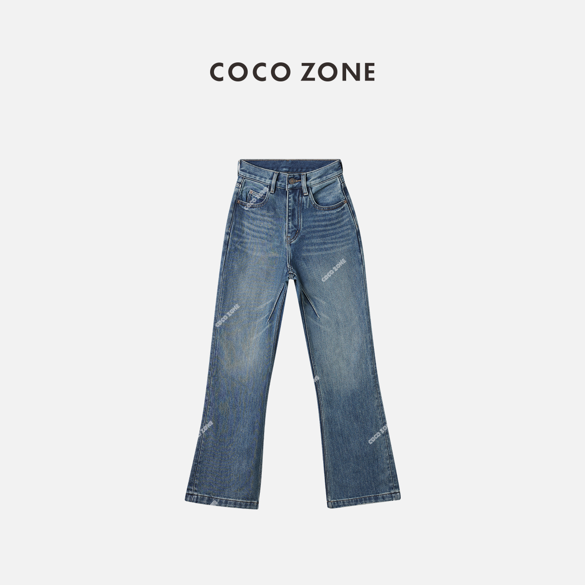 COCO ZONE冬季加薄绒直筒裤美式修身百搭牛仔裤23C50042