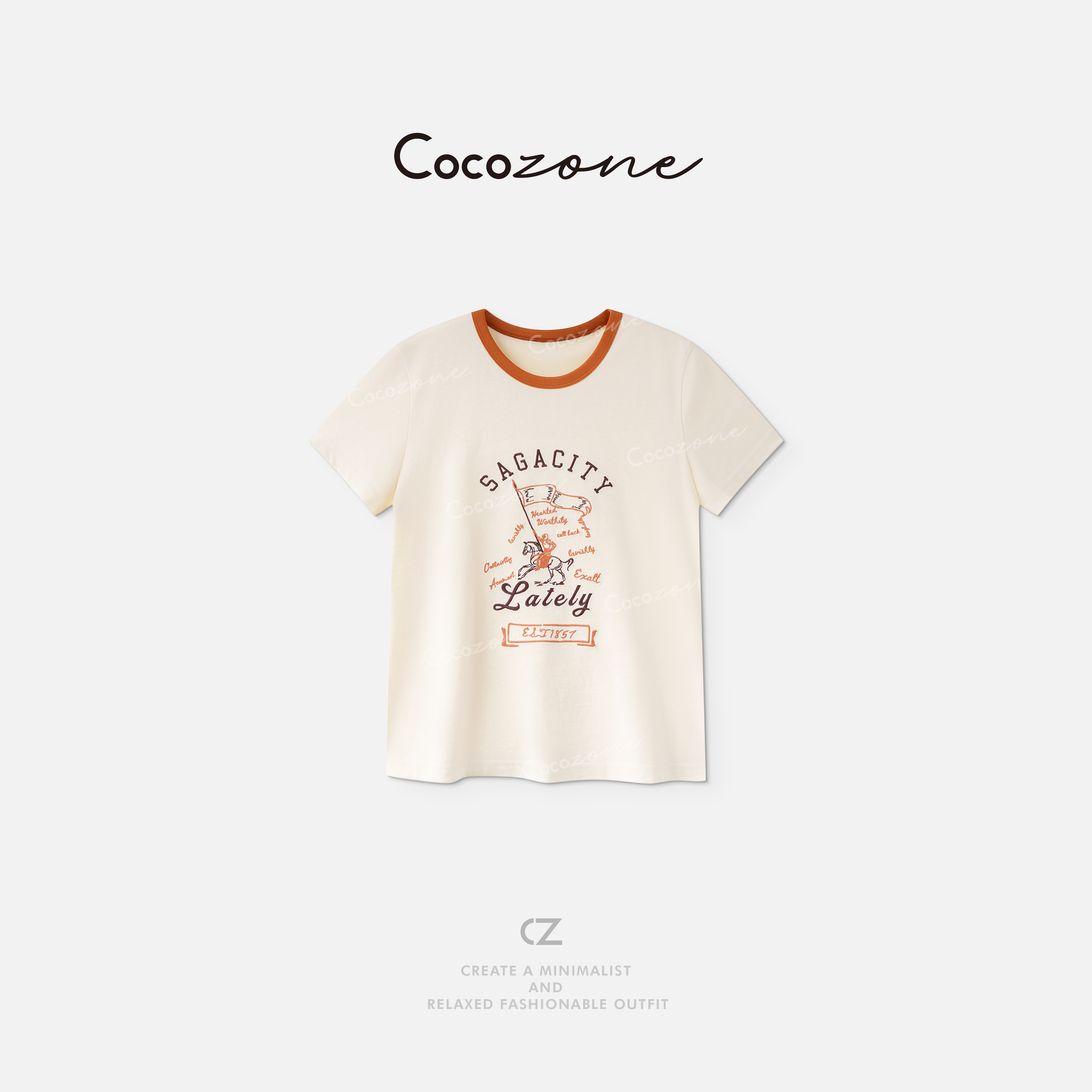 COCO ZONE 刘一一”小马T“长绒棉混纺透气圆领短袖T恤 CD2A1674