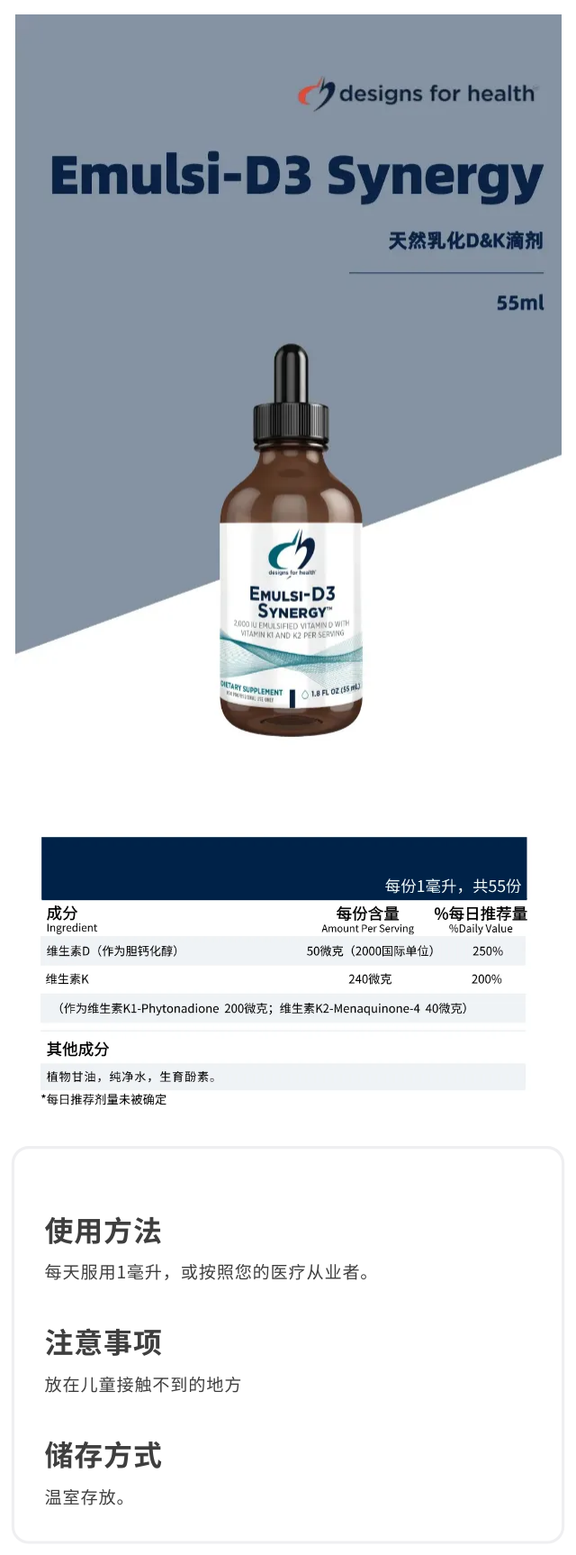 海淘 健康设计 Emulsi-D3 Synergy 天然乳化D&K滴剂 55ml 27.03