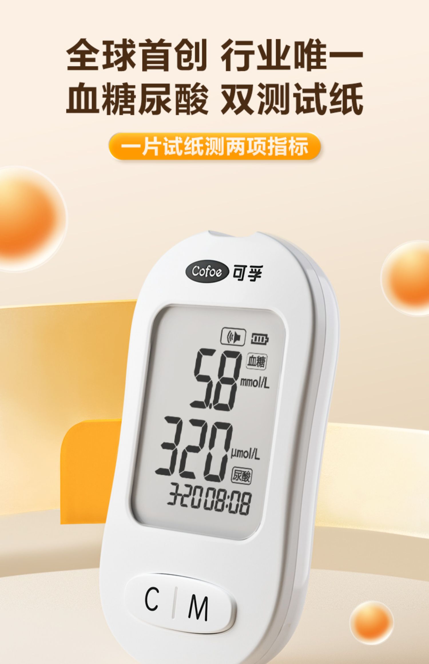 【领券立减50】可孚血糖尿酸双功能一体检测仪 一滴血即可检测血糖和尿酸