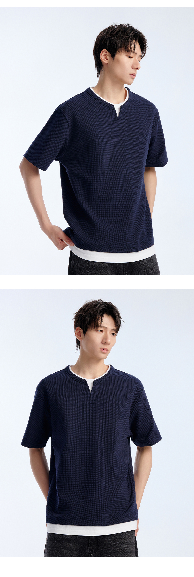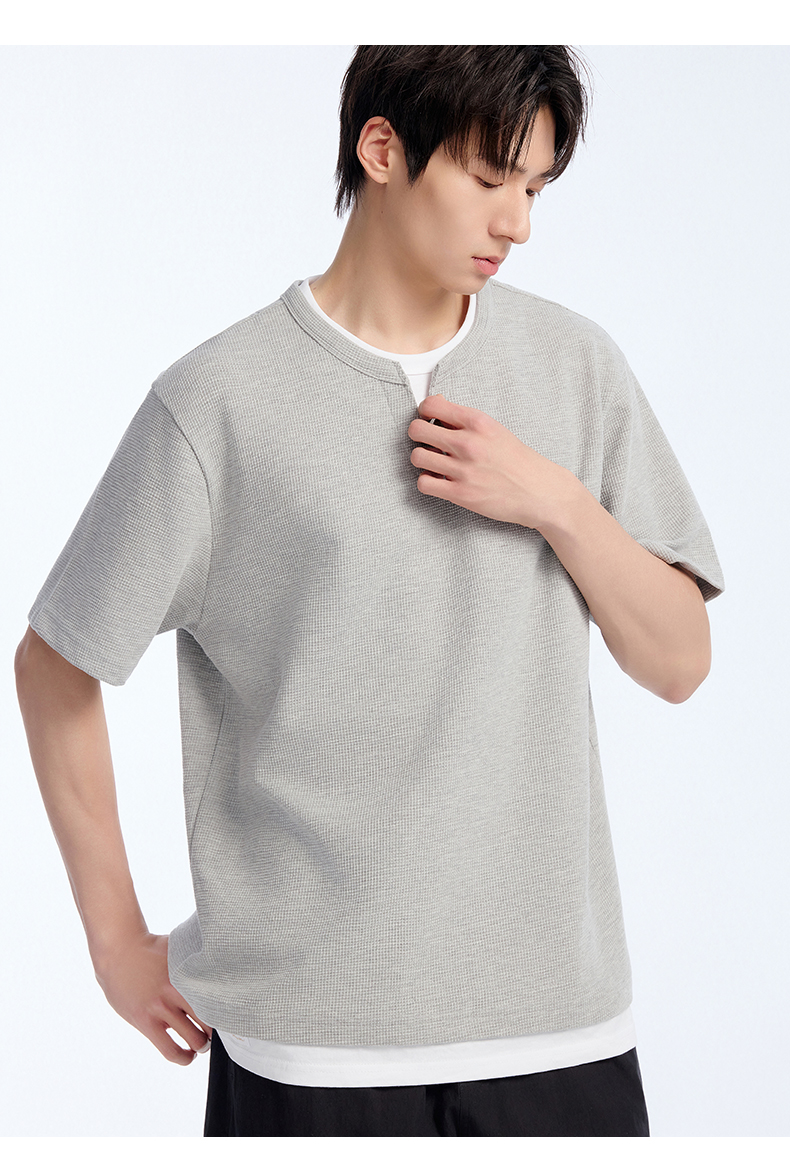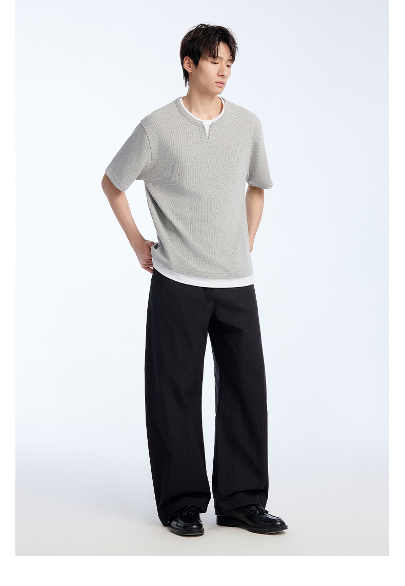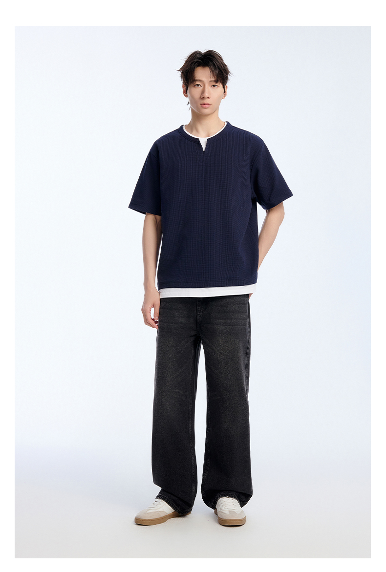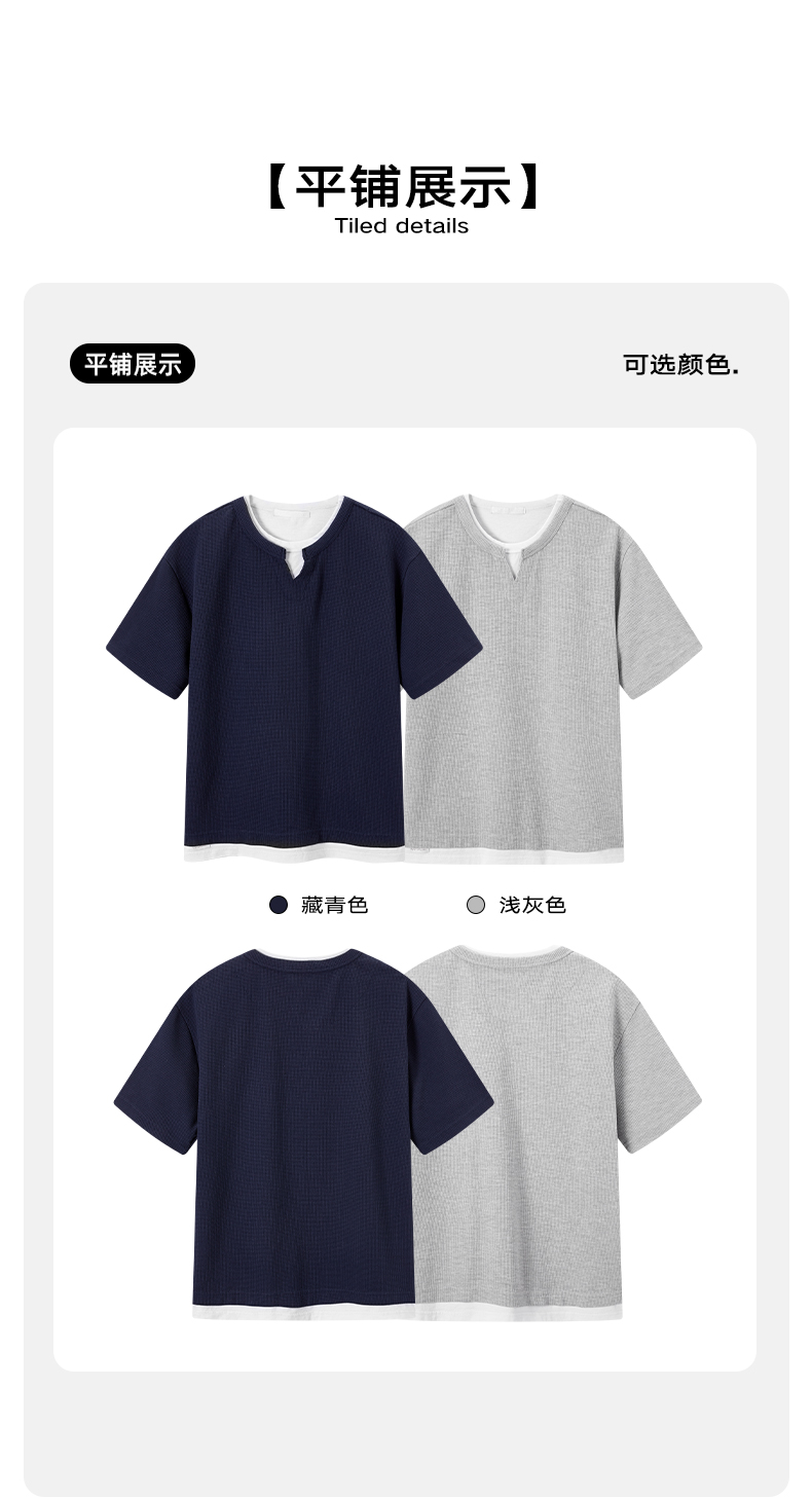 NPC潮牌棉混纺宽松假两件华夫格短袖T恤撞色亲肤春上新NP61TE12