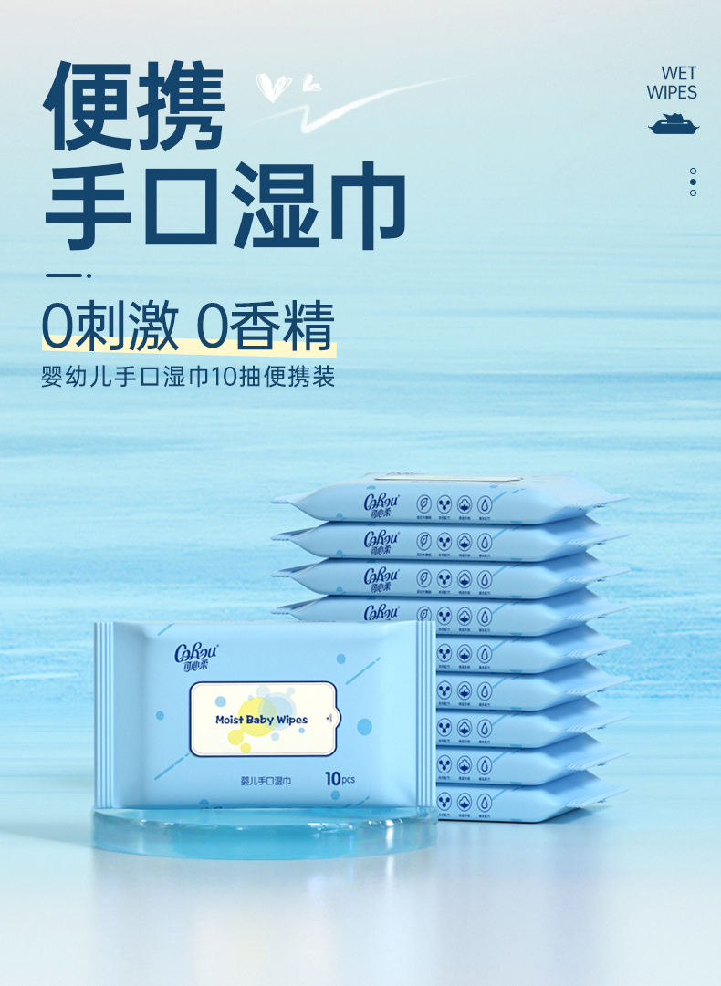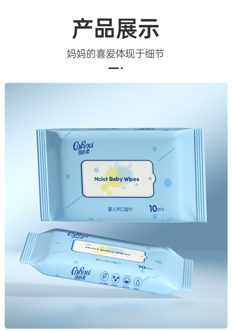 可心柔 婴儿湿巾手口专用婴儿湿纸巾新生儿湿巾10抽便携装20包SJ10-20