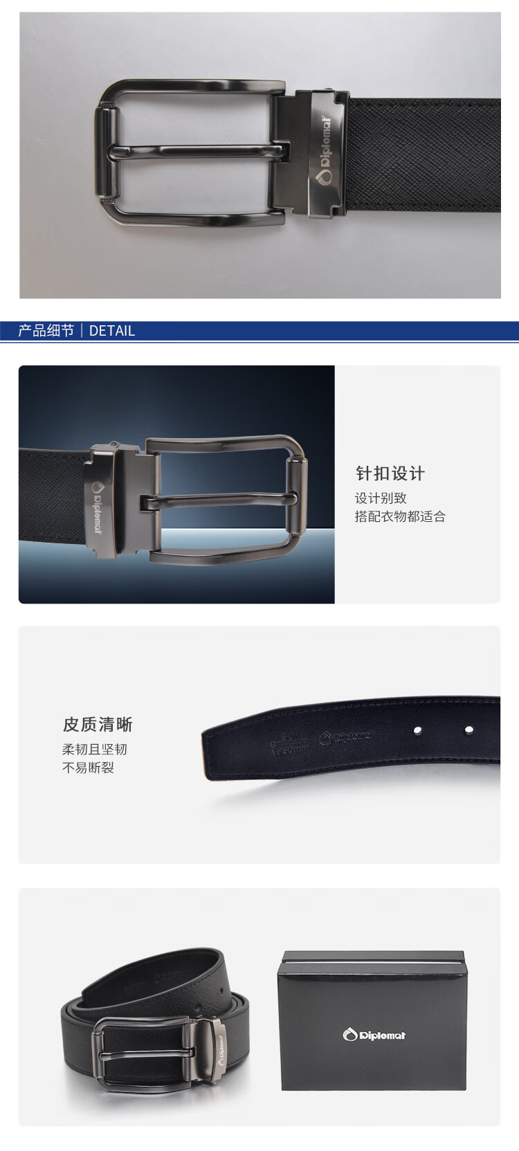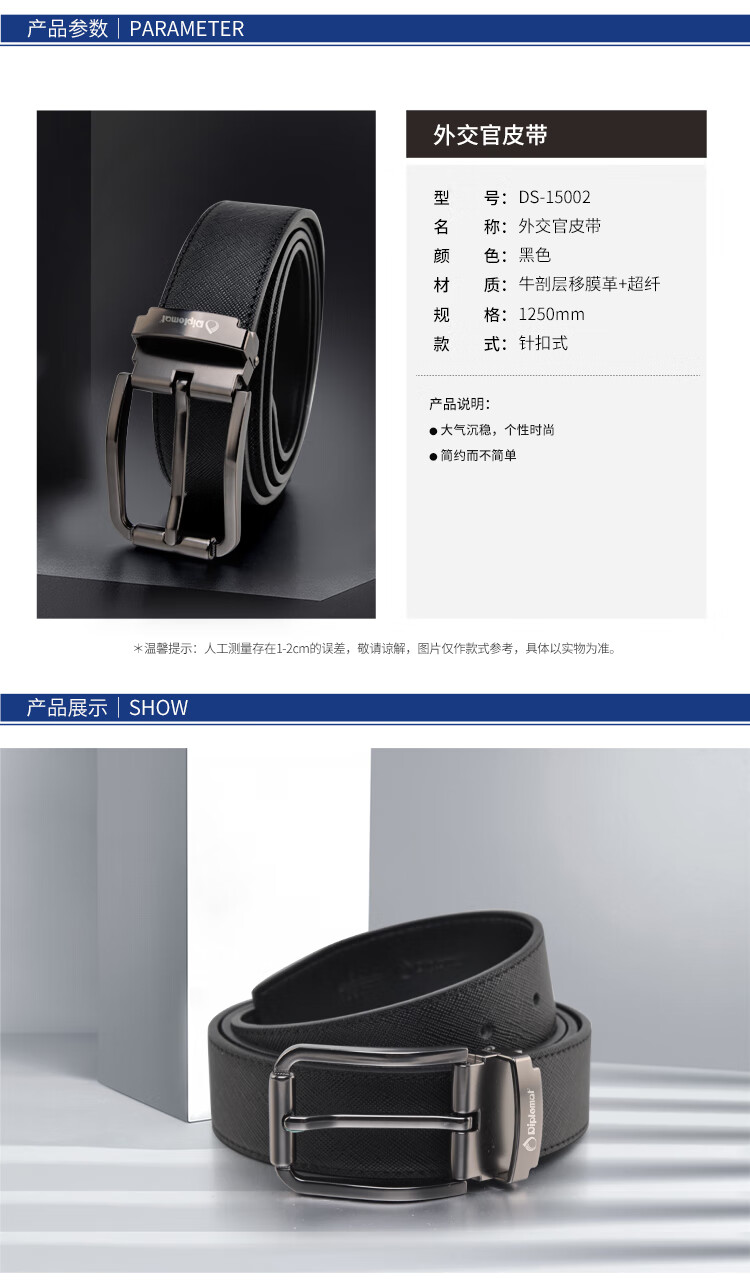 外交官针扣式皮带 DS-15002 黑色 125cm
