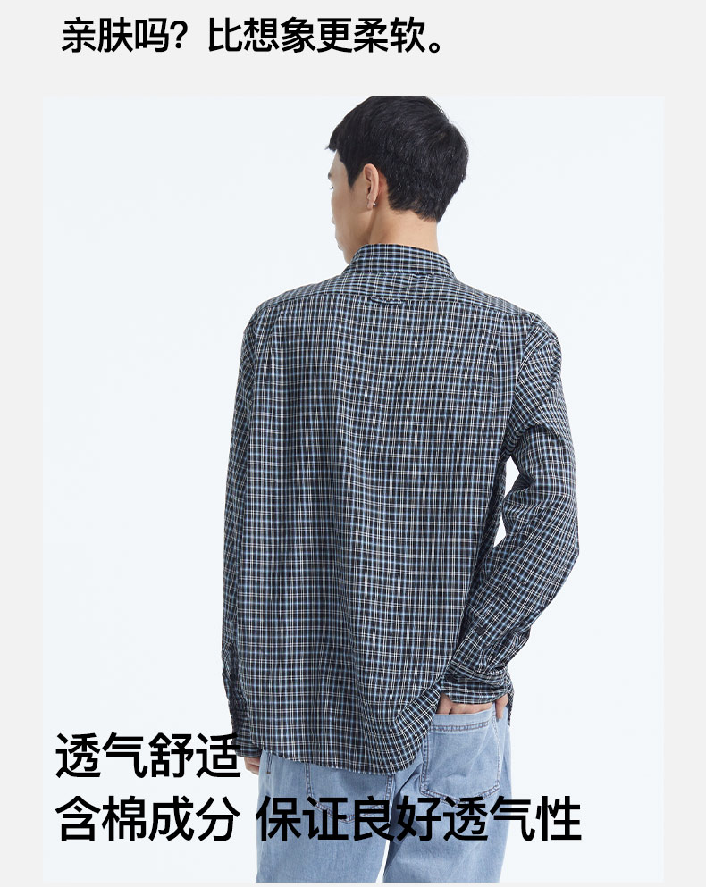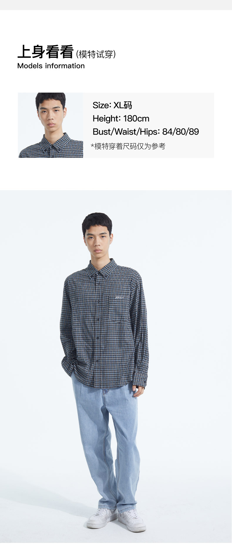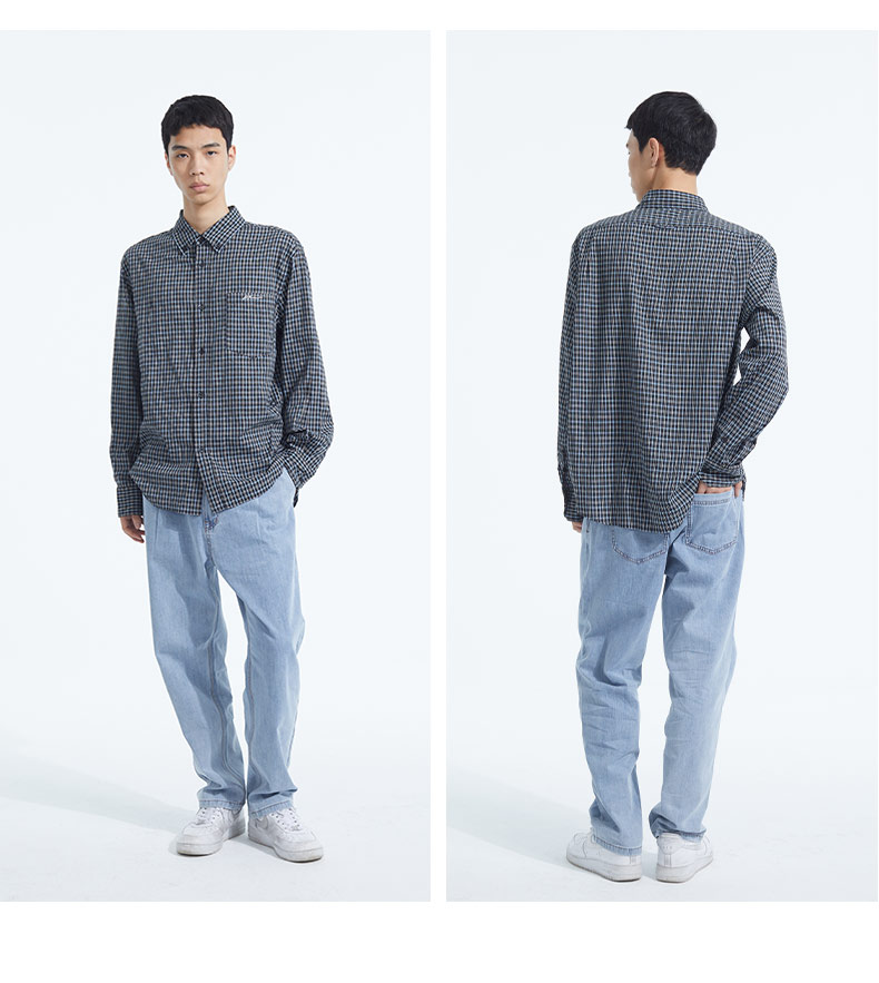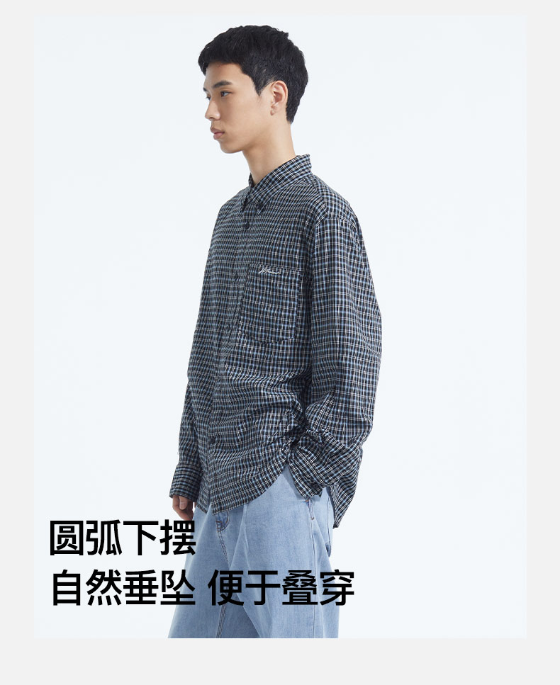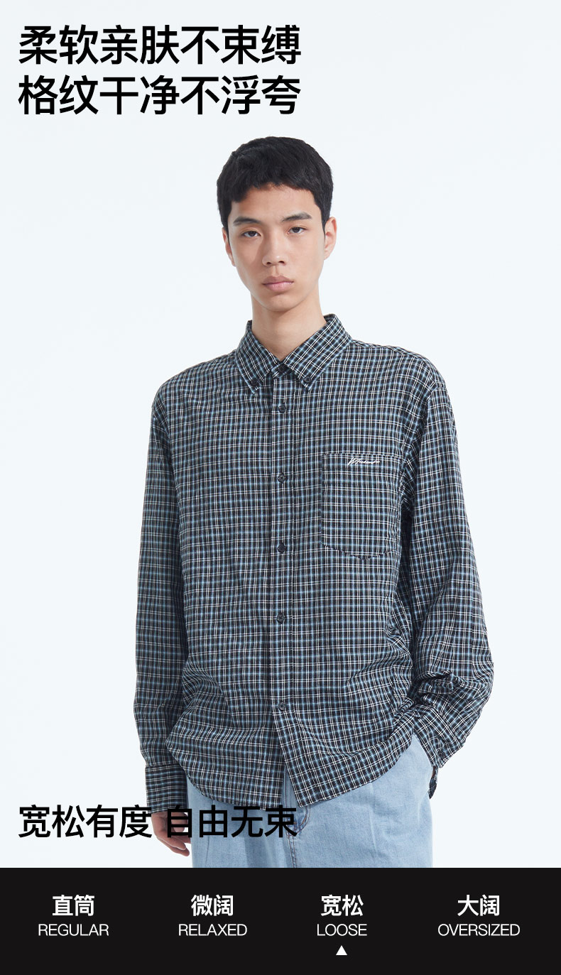 NPC潮牌复古老钱风字母刺绣小格纹翻领衬衫男圆弧下摆NP53SH15