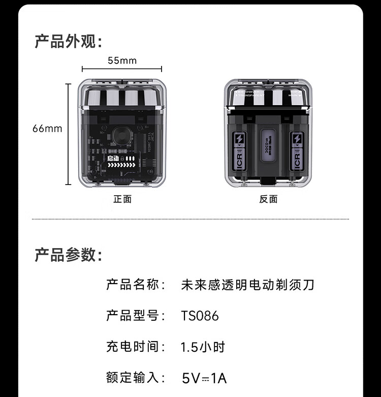 DOCO LAB未来感透明剃须刀TS086