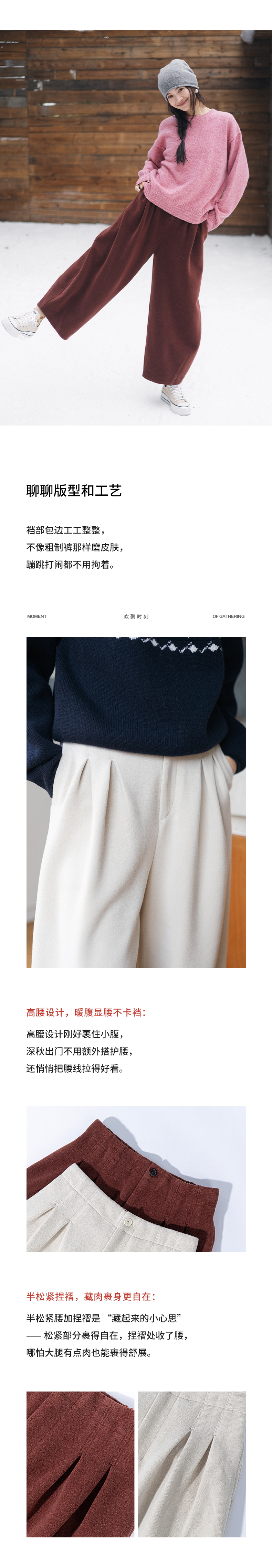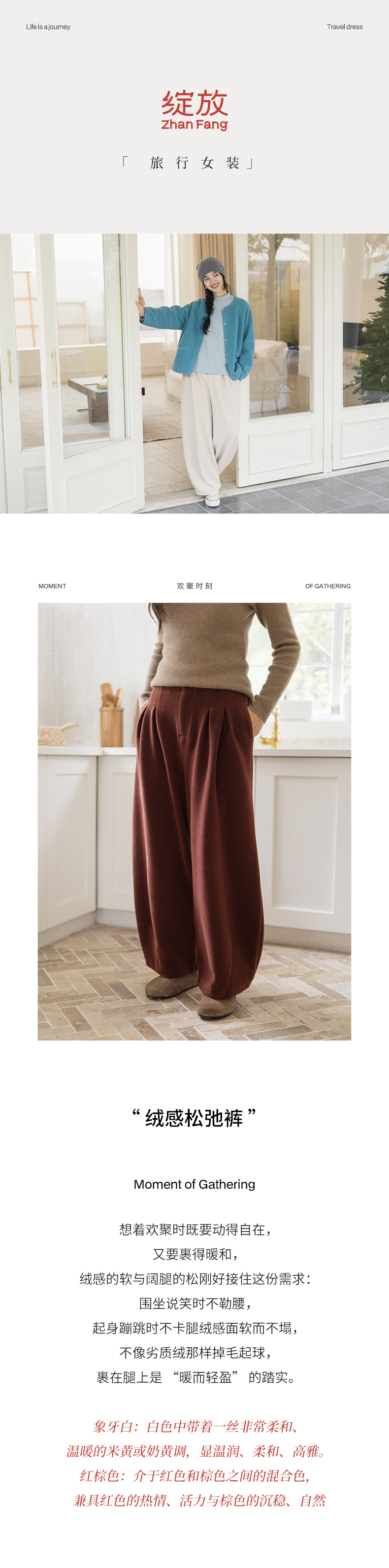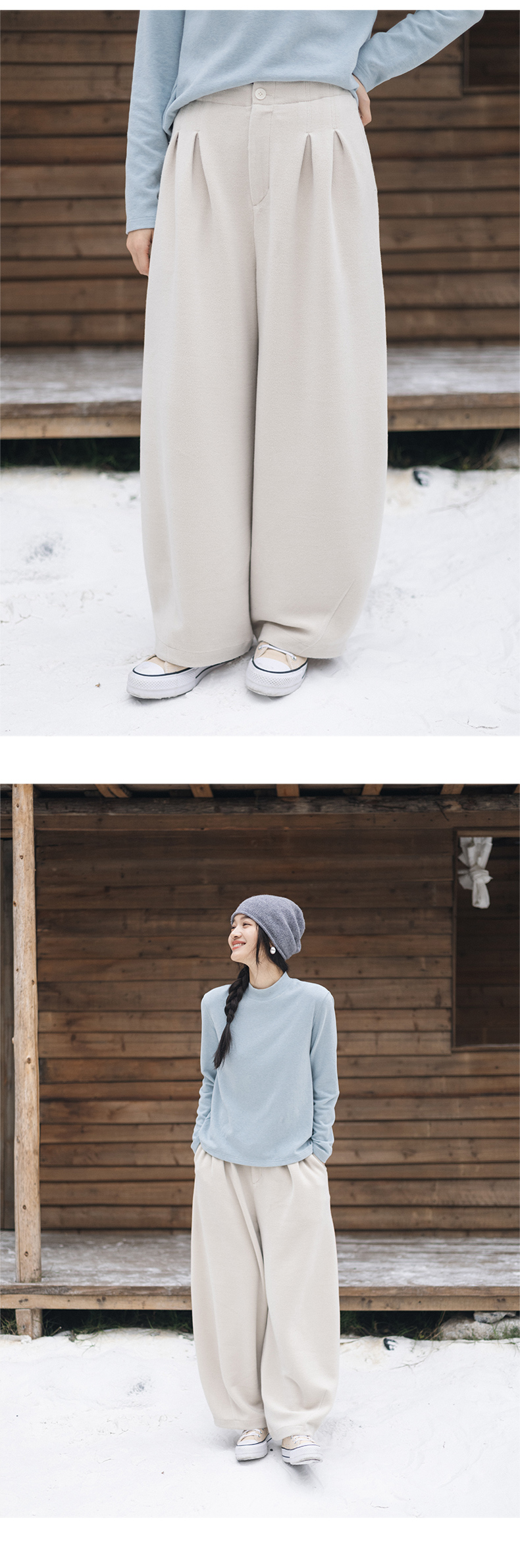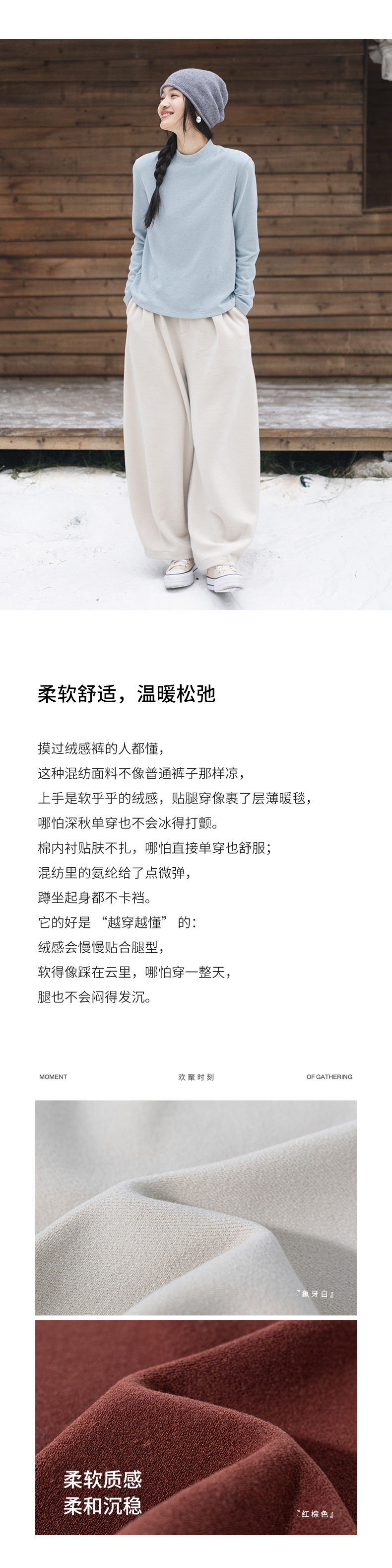 绽放851朵/绒感松弛裤·腰部半松紧对褶阔腿长裤百搭加厚休闲裤