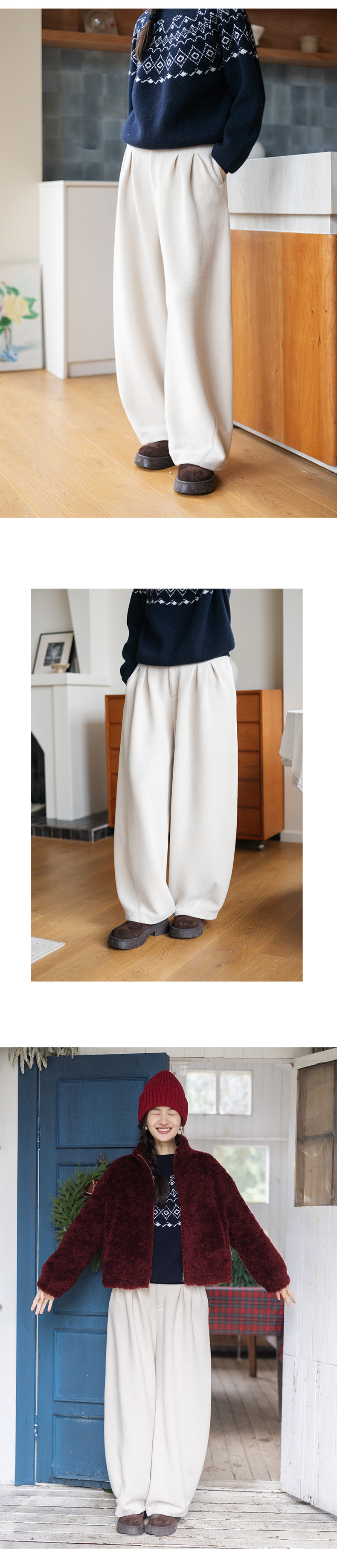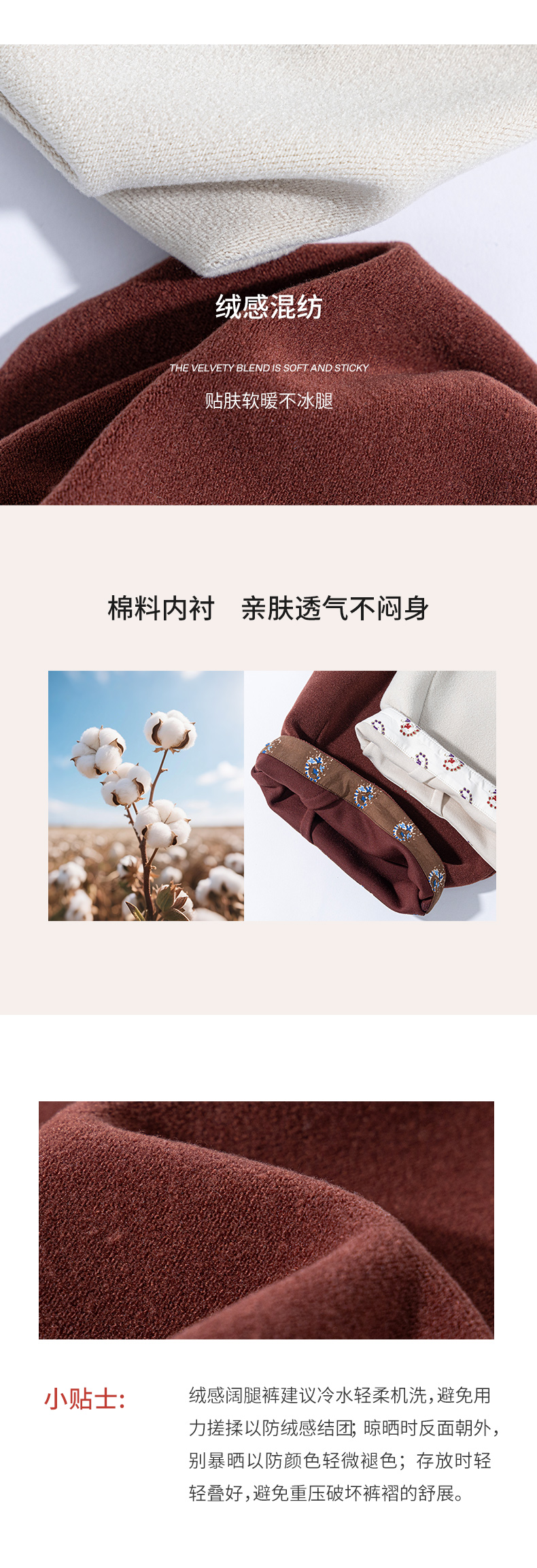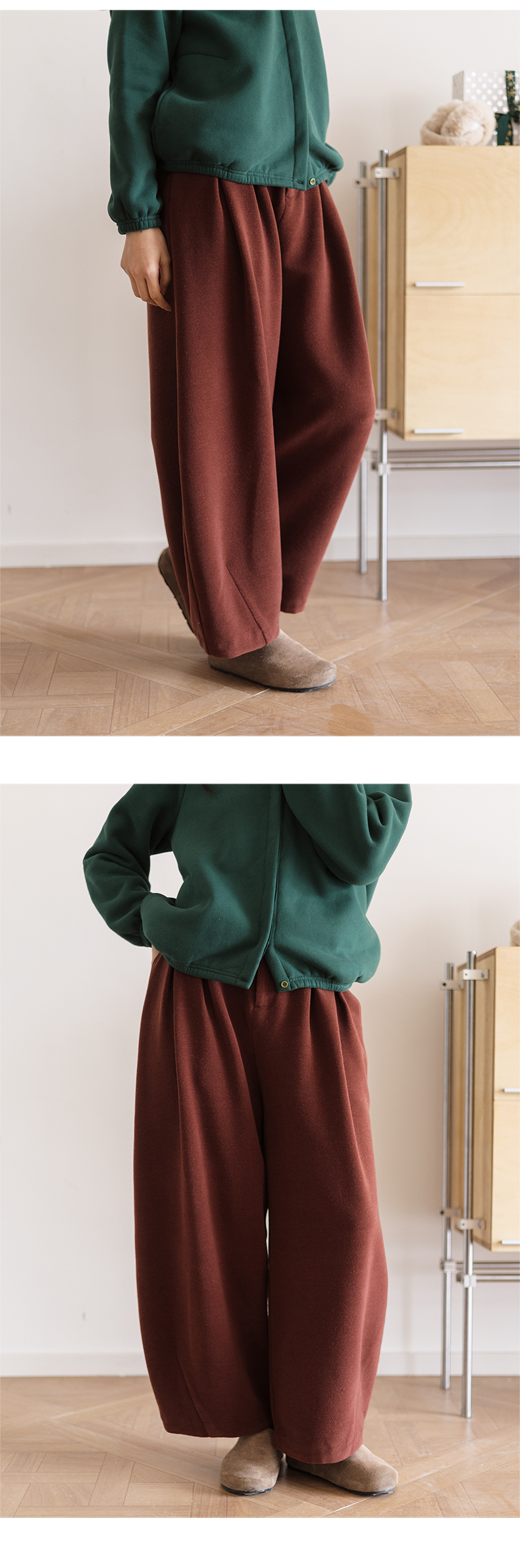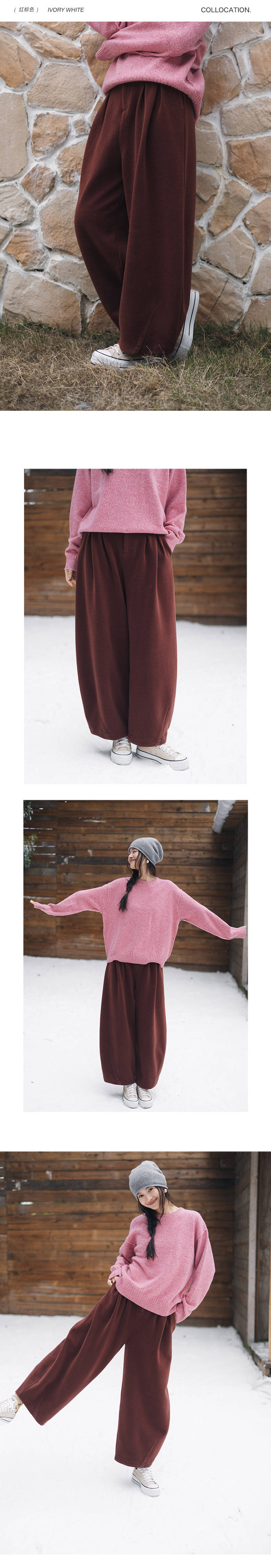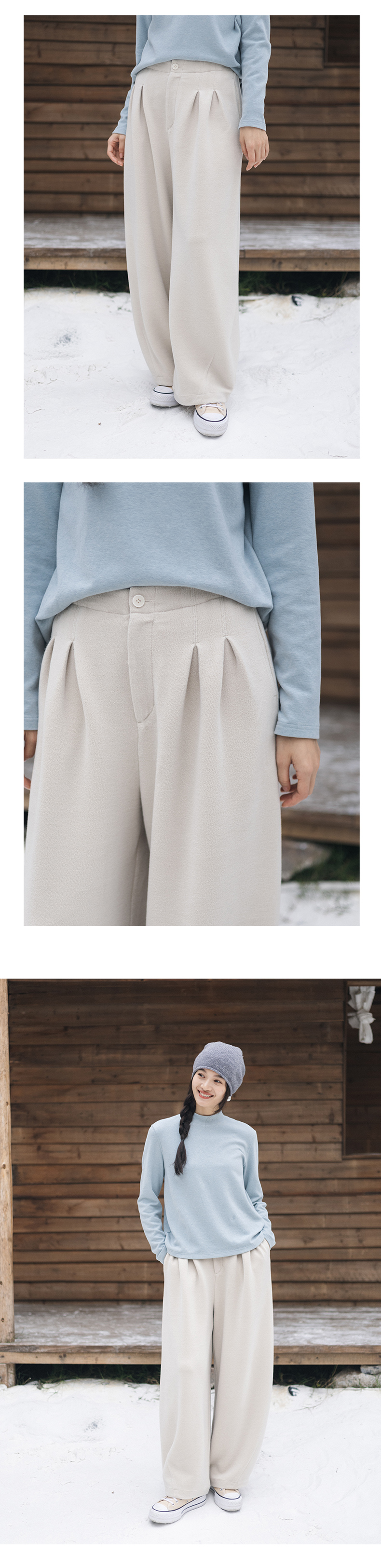 绽放851朵/绒感松弛裤·腰部半松紧对褶阔腿长裤百搭加厚休闲裤