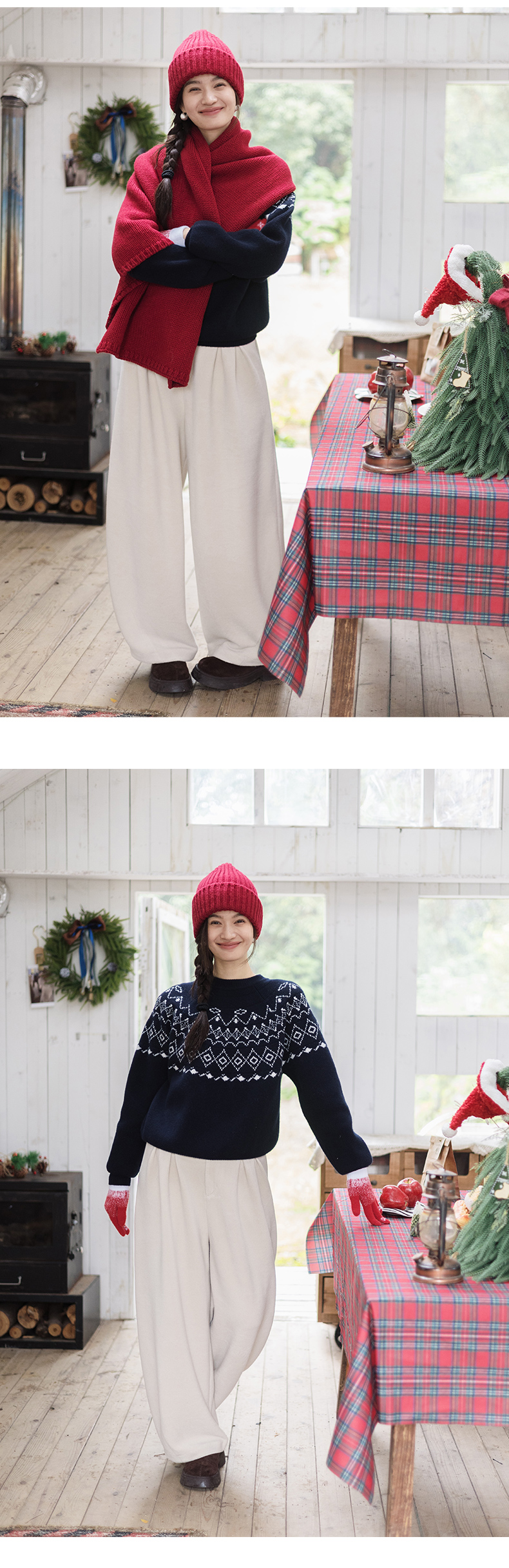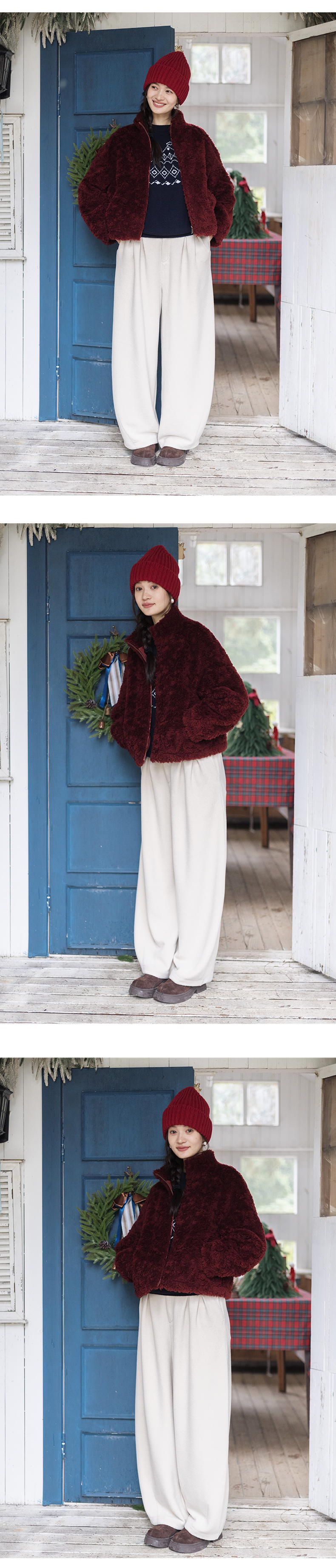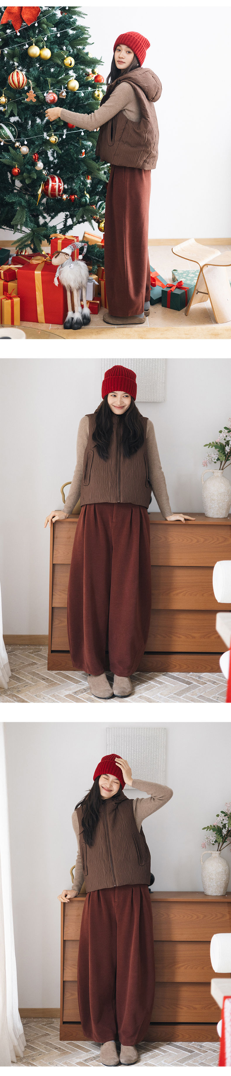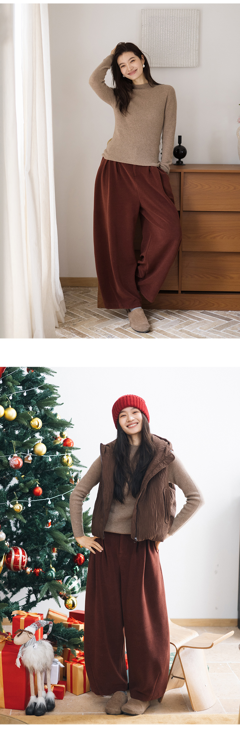 绽放851朵/绒感松弛裤·腰部半松紧对褶阔腿长裤百搭加厚休闲裤