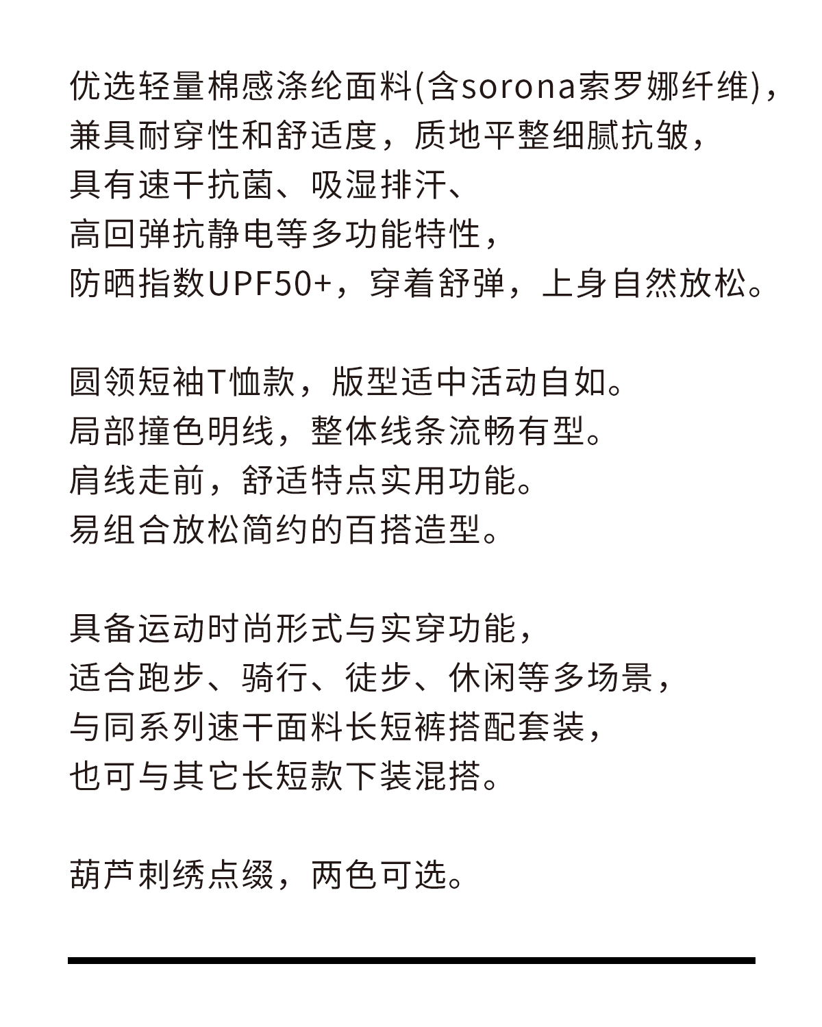 吃茶去chichaqu25速干明线索罗娜吸湿排汗棉感防晒轻量短袖T运动