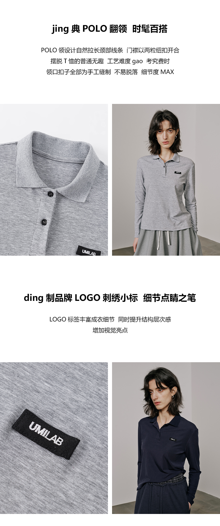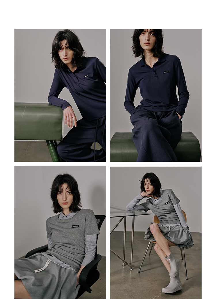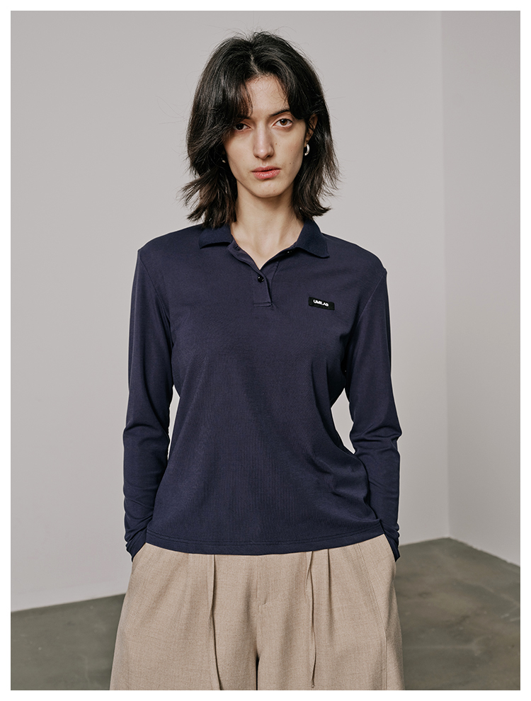 UMILAB【月影】柔软垂顺莱赛尔混纺面料弹力修身百搭poloT恤T712W