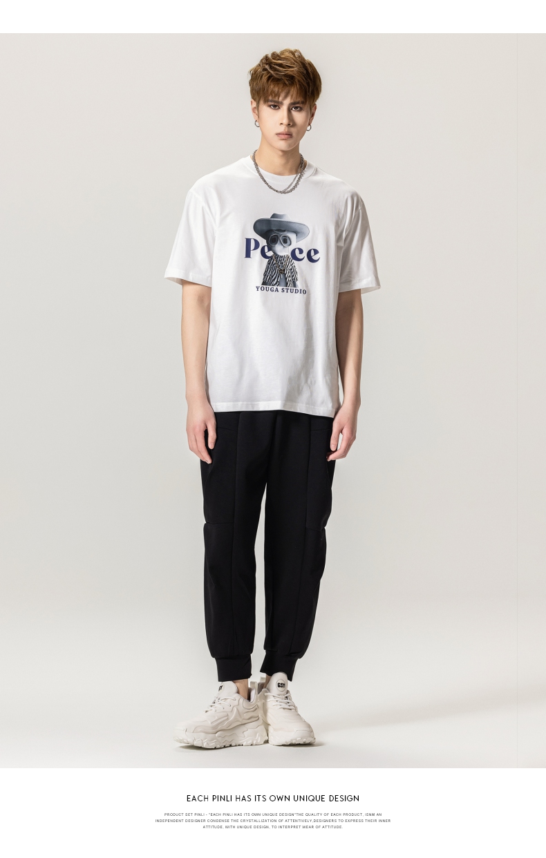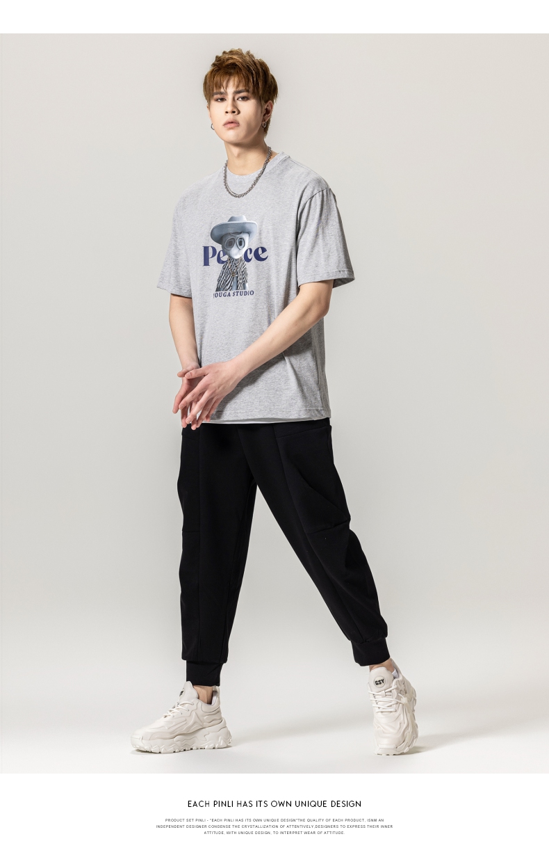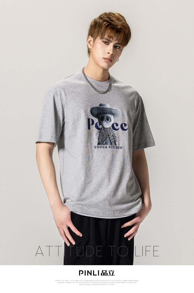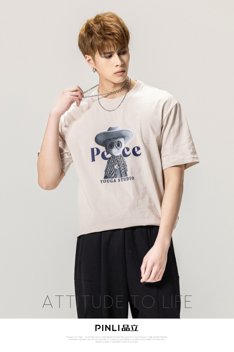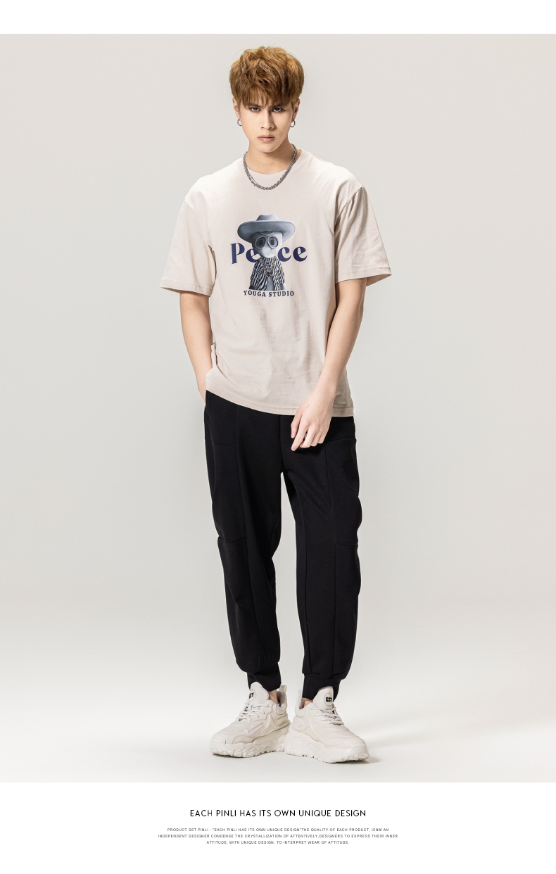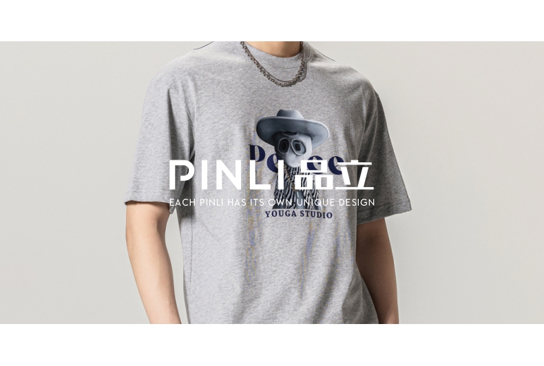 PINLI品立春季新款男士纯棉体恤印花短袖休闲T恤BG231111011