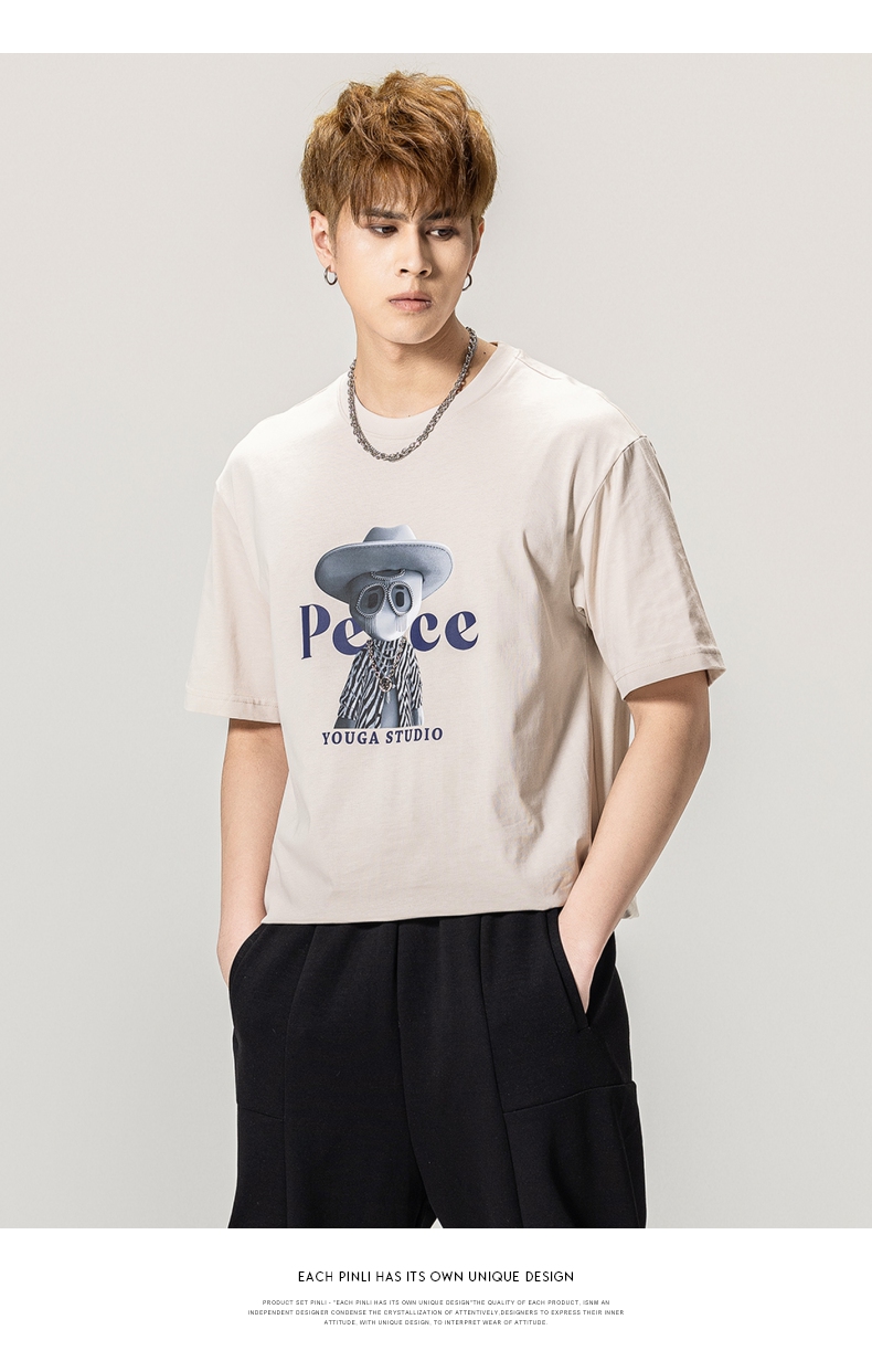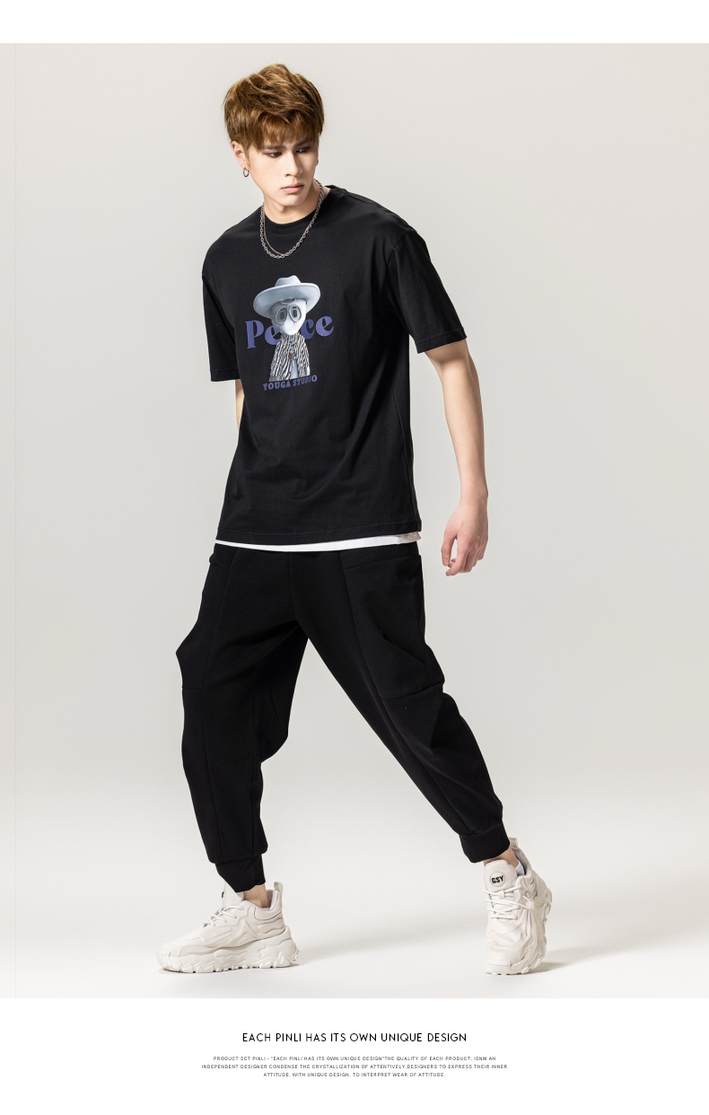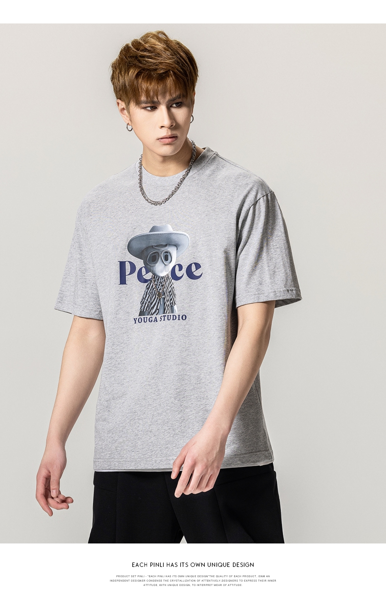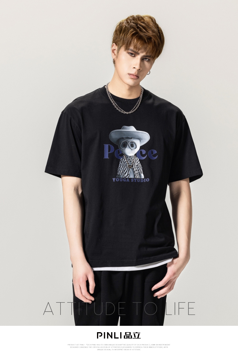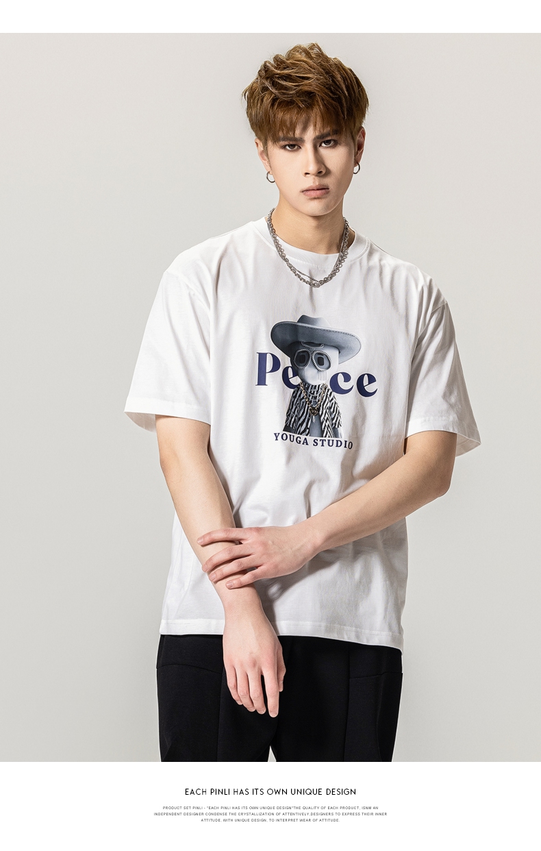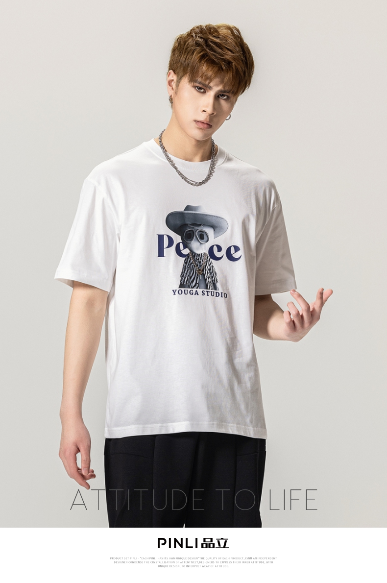 PINLI品立春季新款男士纯棉体恤印花短袖休闲T恤BG231111011