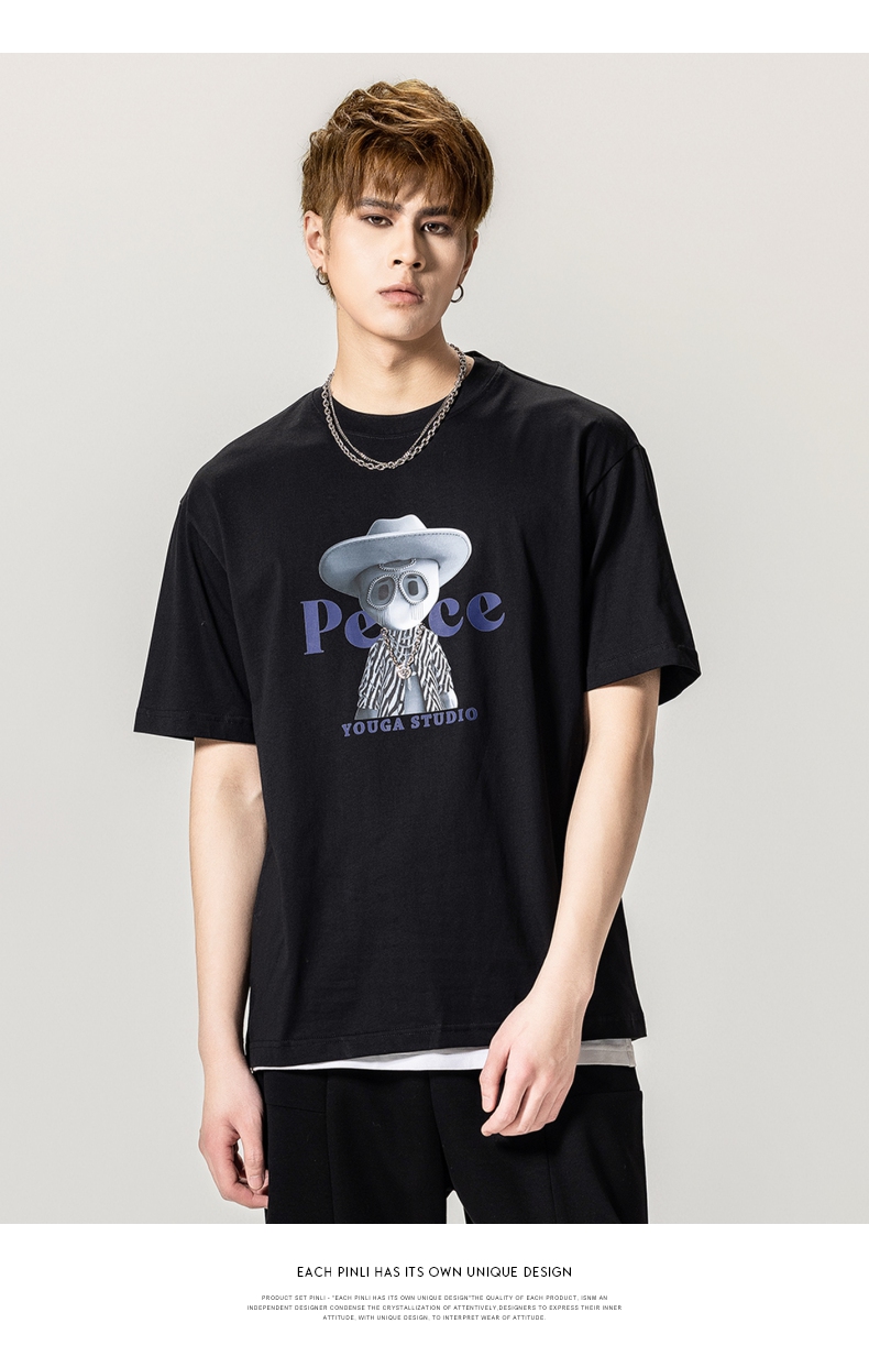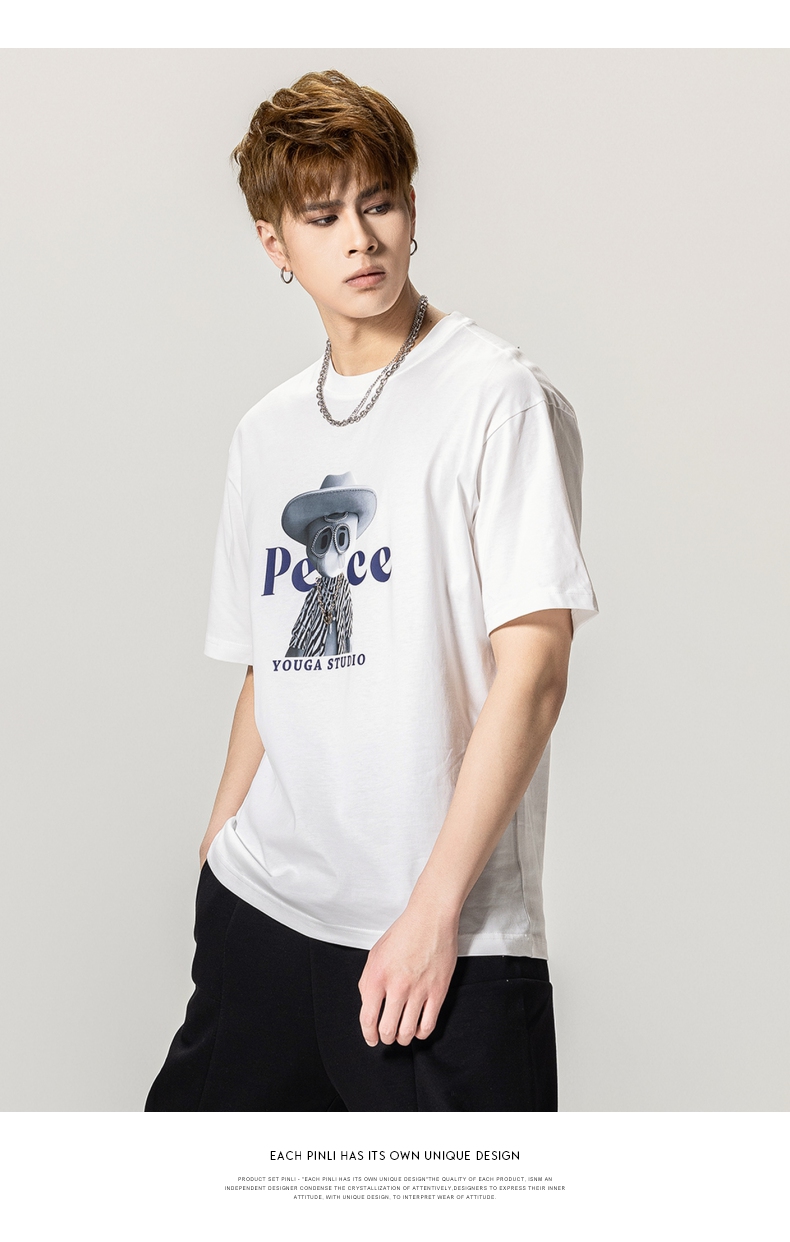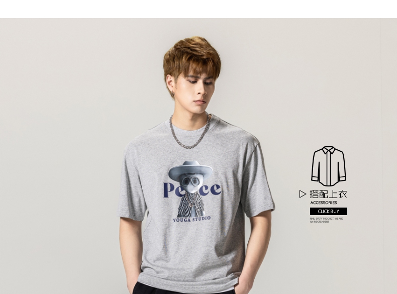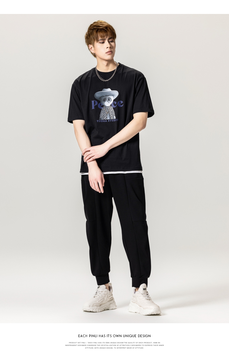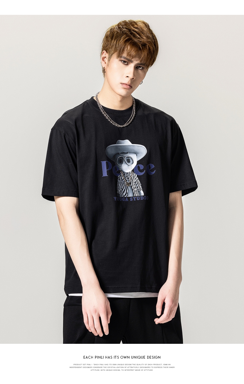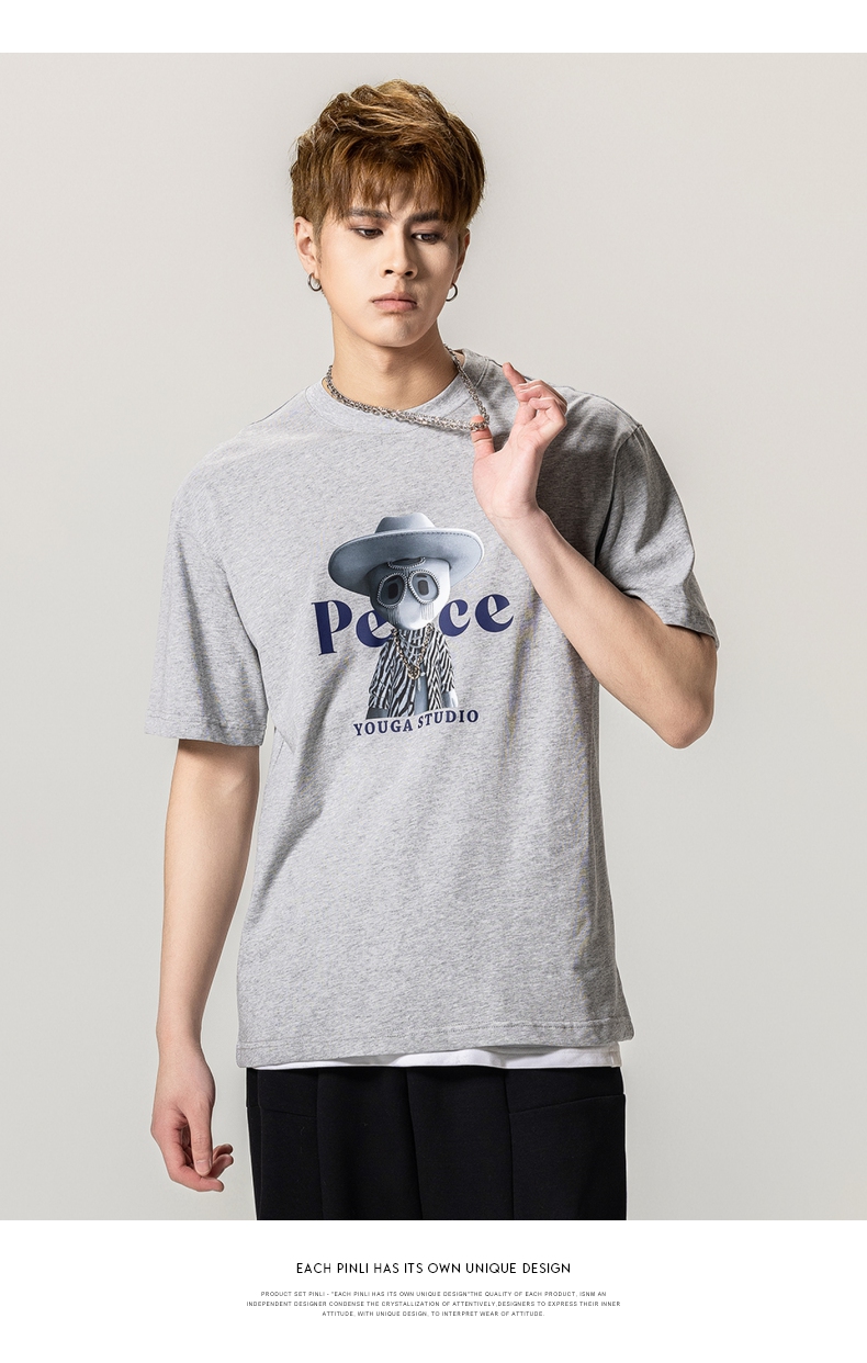 PINLI品立春季新款男士纯棉体恤印花短袖休闲T恤BG231111011