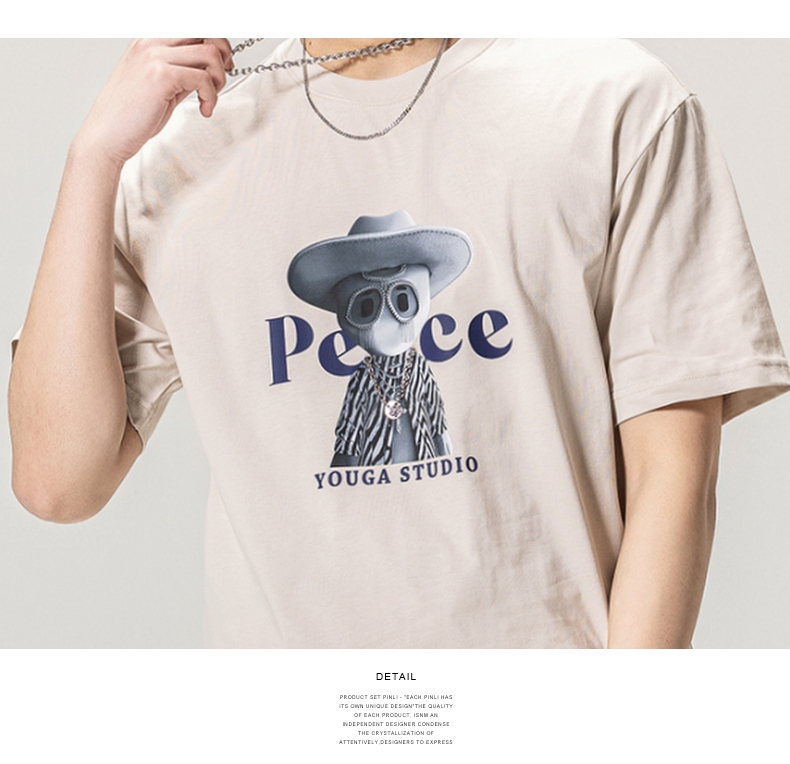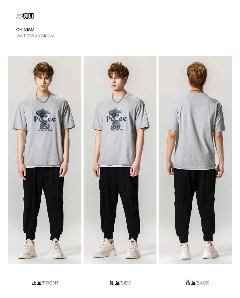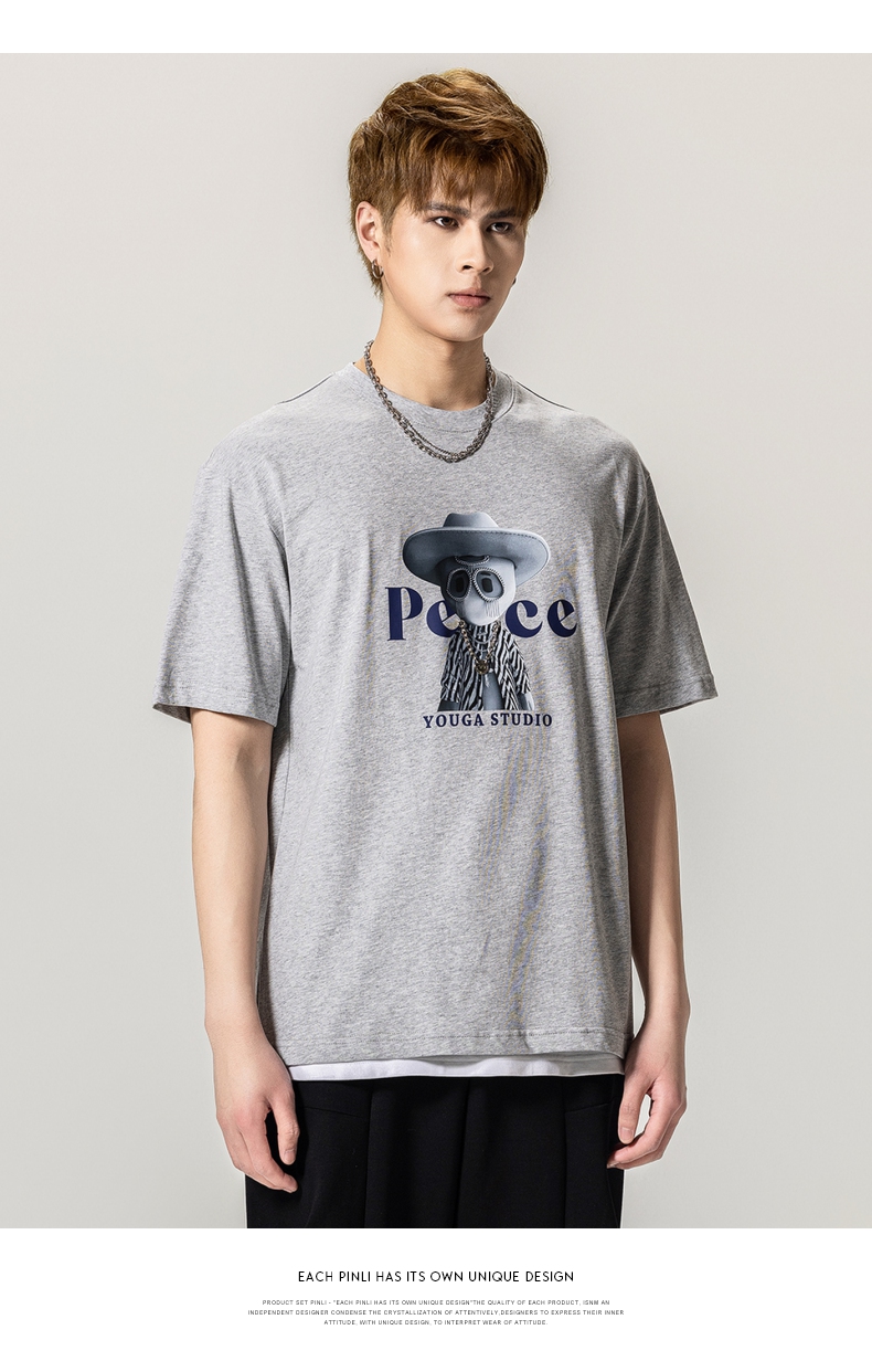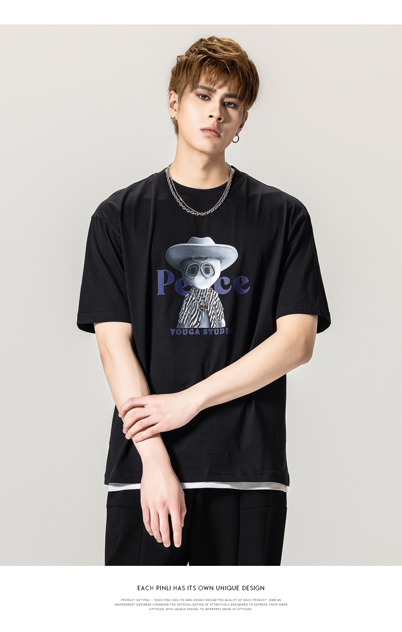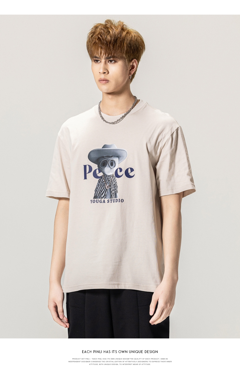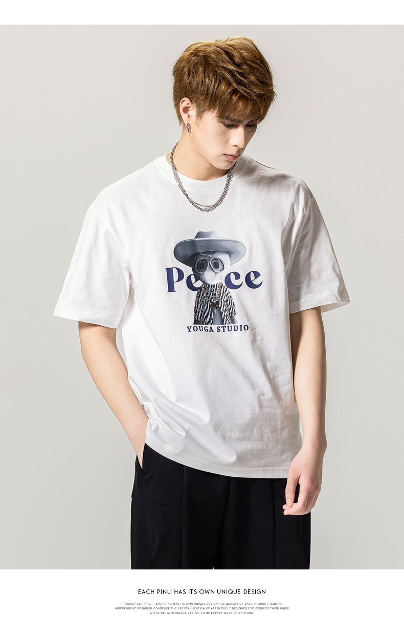 PINLI品立春季新款男士纯棉体恤印花短袖休闲T恤BG231111011