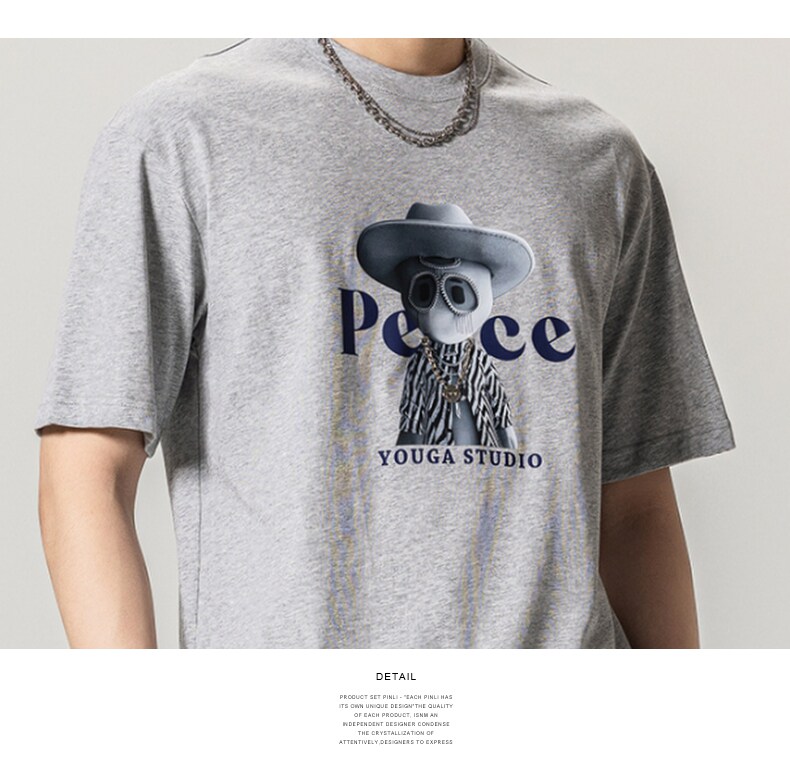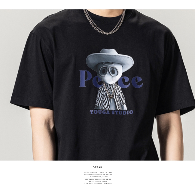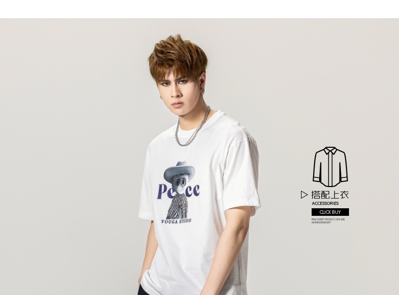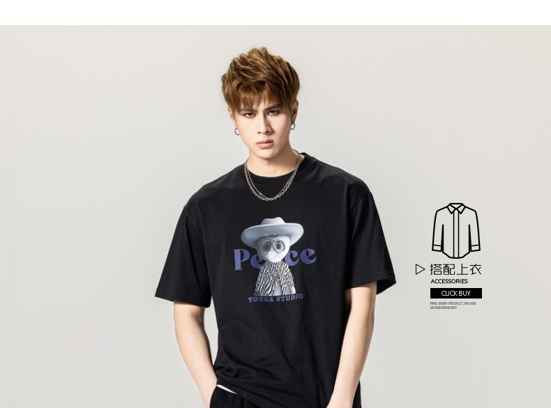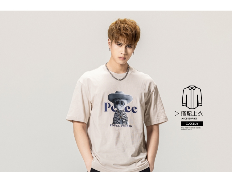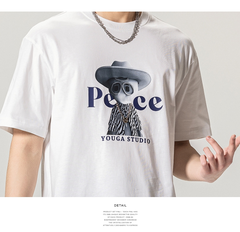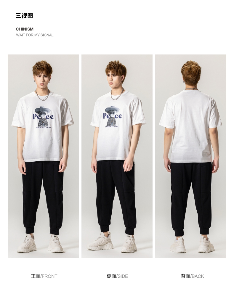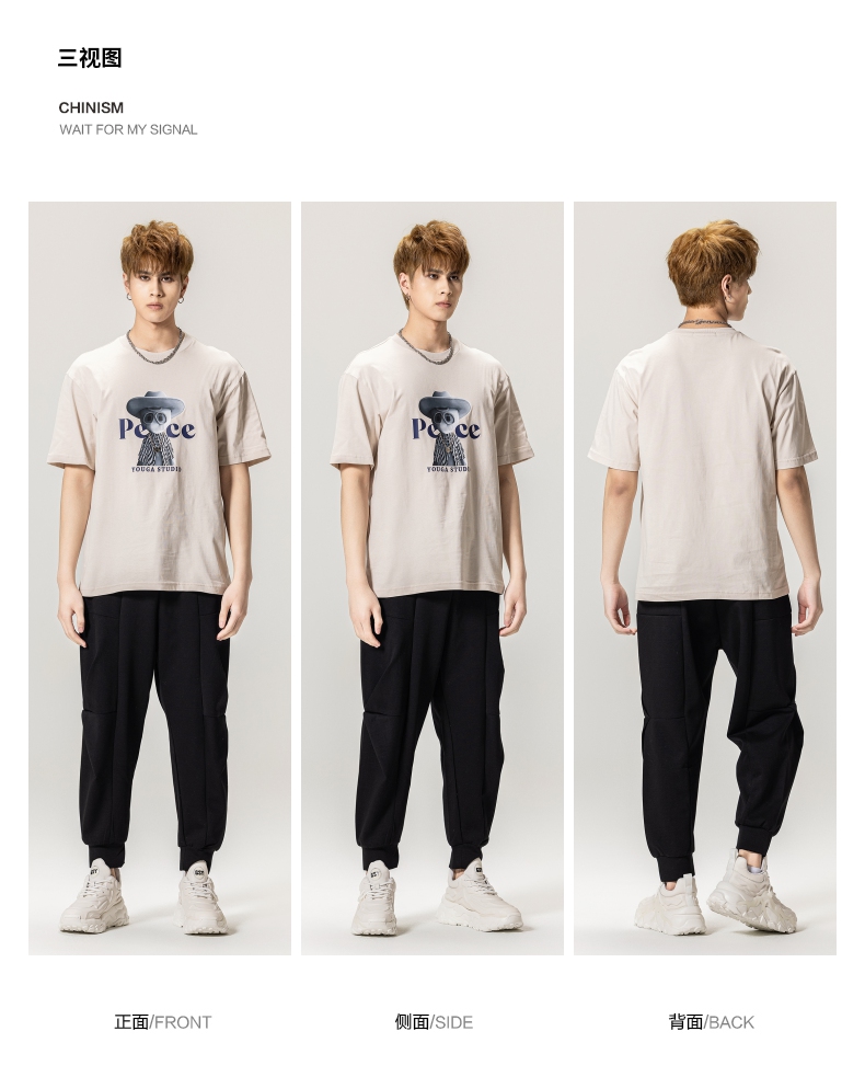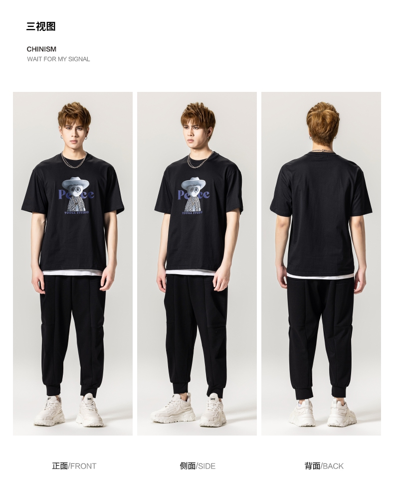 PINLI品立春季新款男士纯棉体恤印花短袖休闲T恤BG231111011