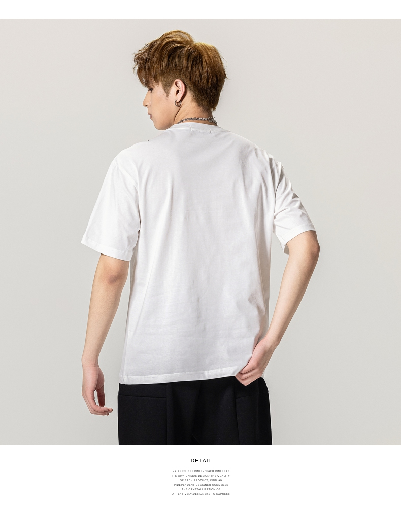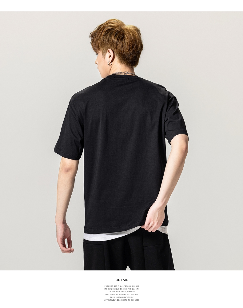 PINLI品立夏季新款龙形刺绣短袖T恤中国风拼接提花宽松男上衣B242111133