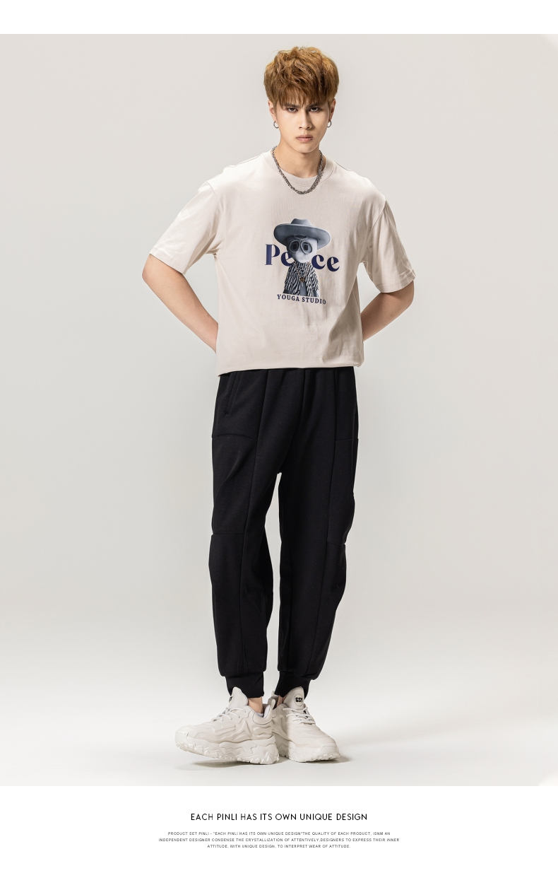 PINLI品立2025夏季新款修身纯色束脚裤男士潮流简约百搭休闲长裤GD252117264