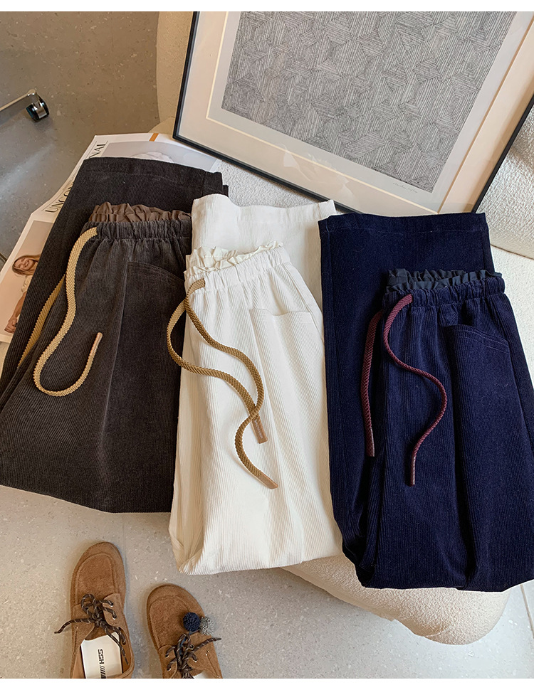拼接花苞腰斜线插袋微弧九分直筒休闲裤!#