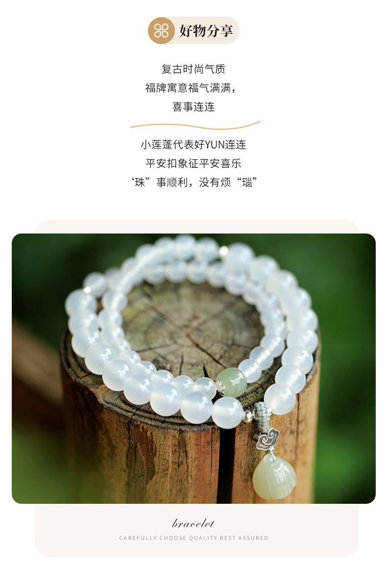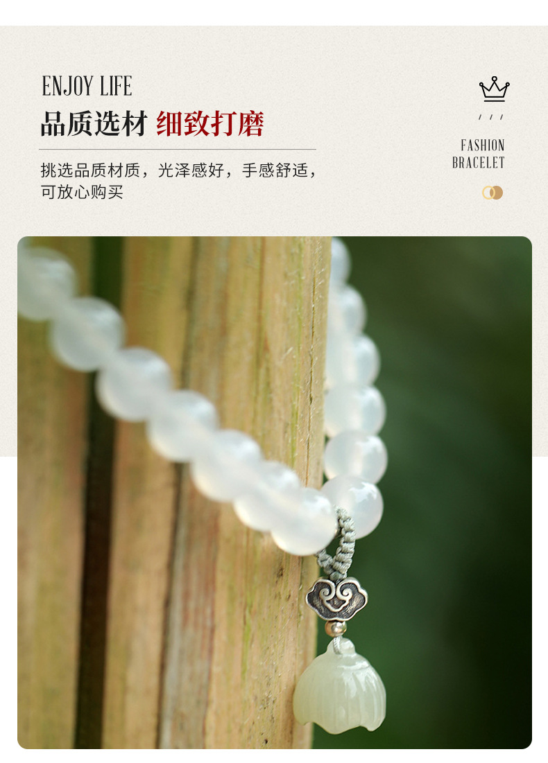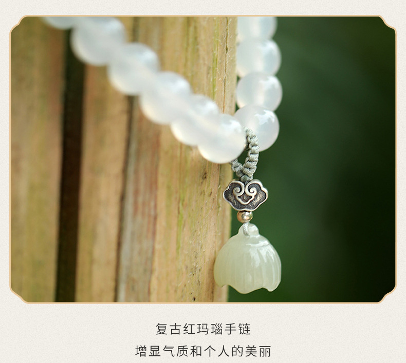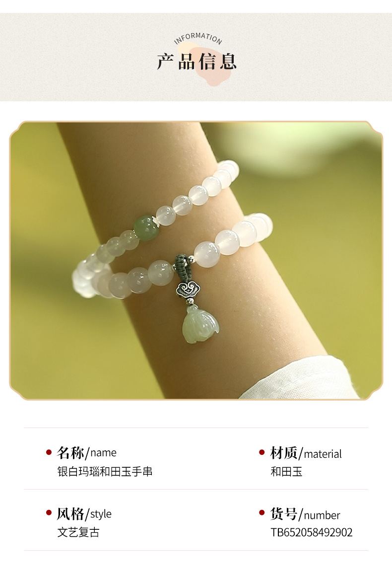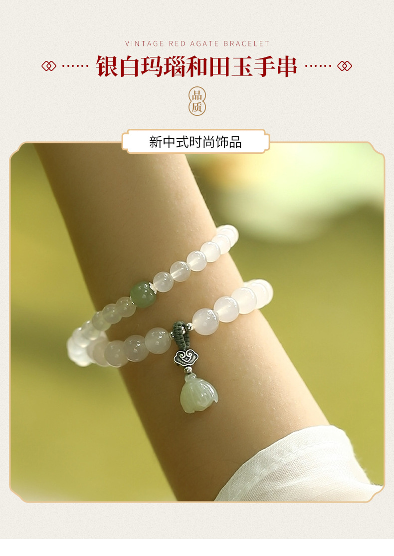 六鑫珠宝 原创小众设计s925银白玛瑙和田玉爱莲说手链