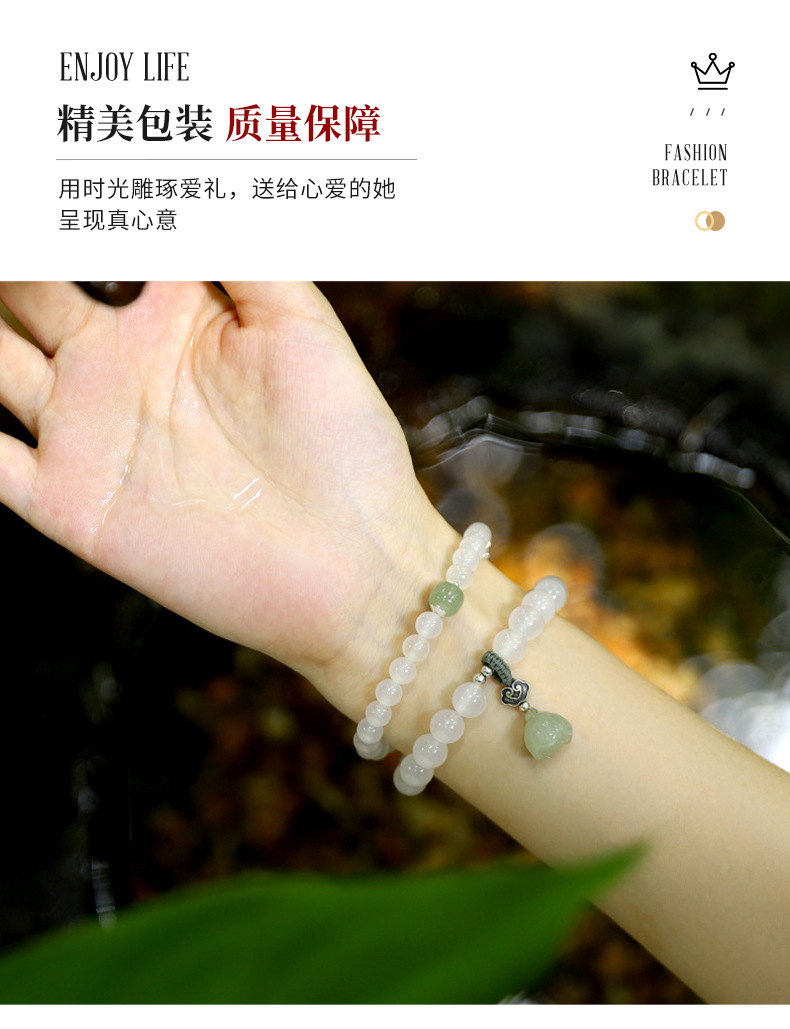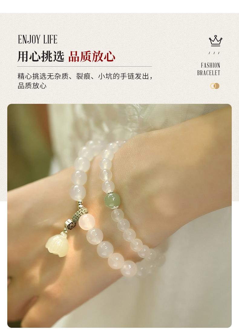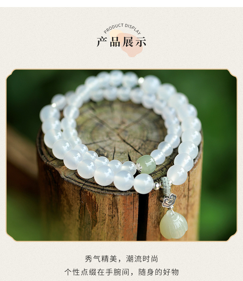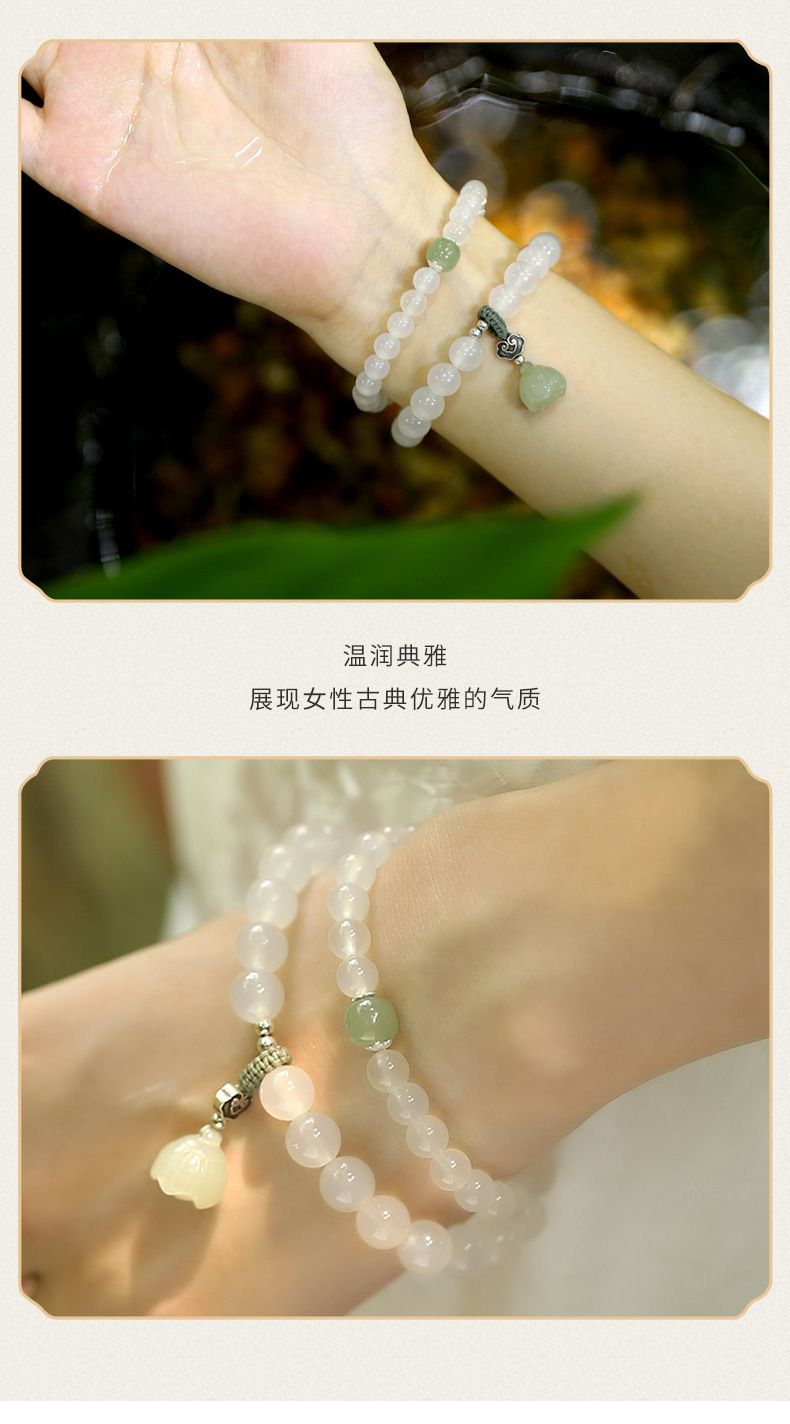 六鑫珠宝 原创小众设计s925银白玛瑙和田玉爱莲说手链