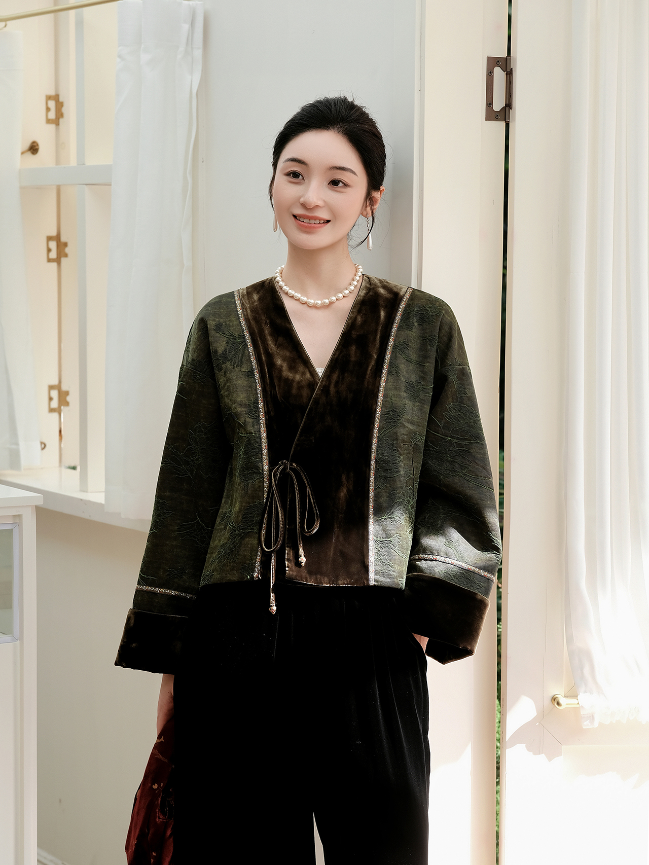 盛唐婧 | 轻奢新中式油丝香云纱拼丝绒外套