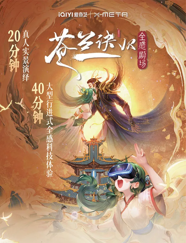 20分钟真人实景演艺+40分钟大型行进式全感科技体验,深度还原《苍兰诀》原著中的经典场景、人物形象和故事情节。