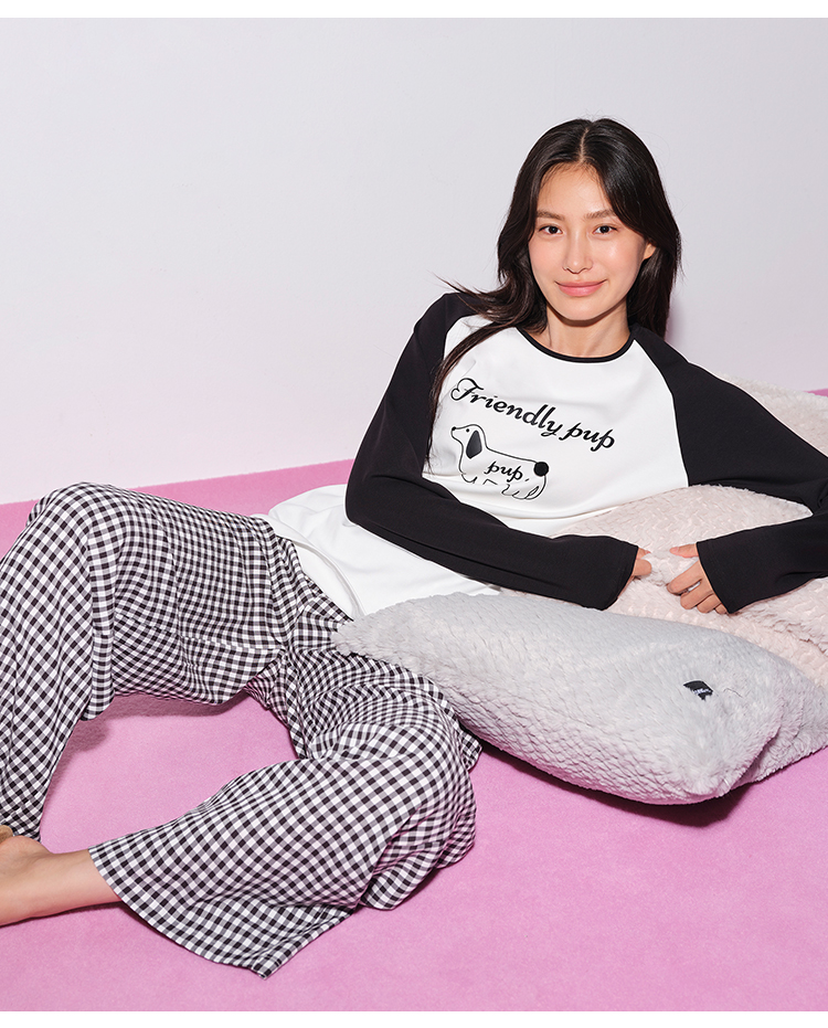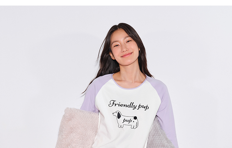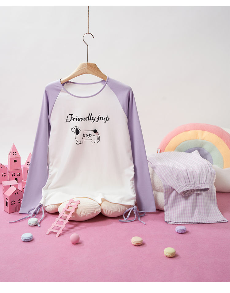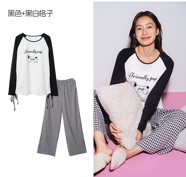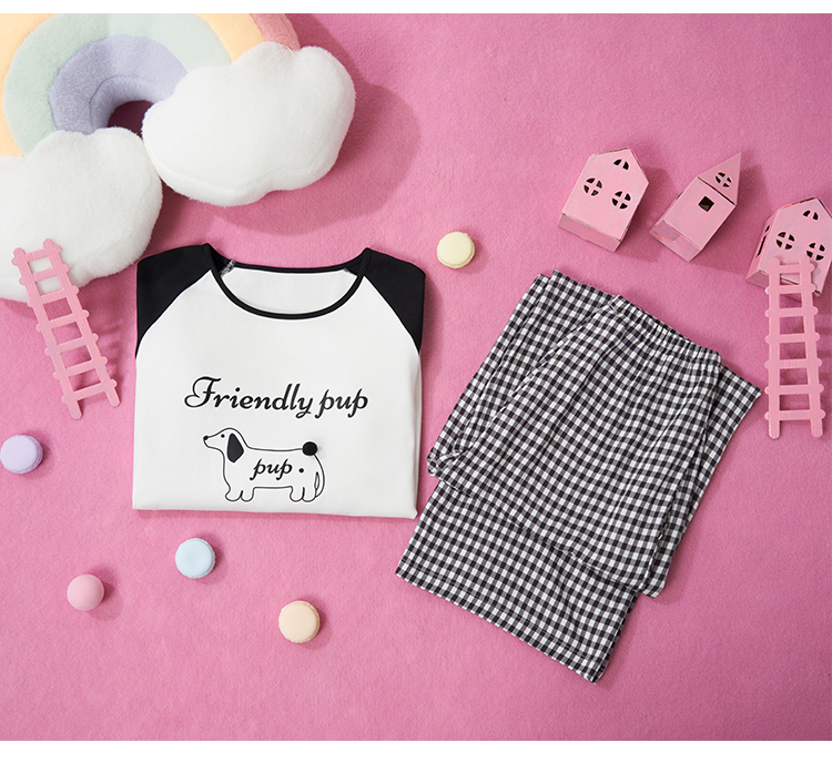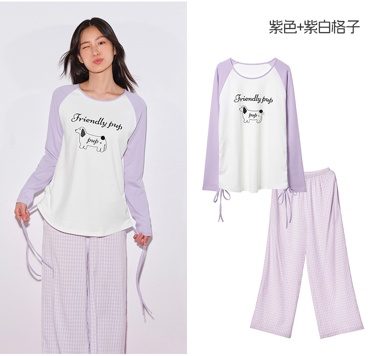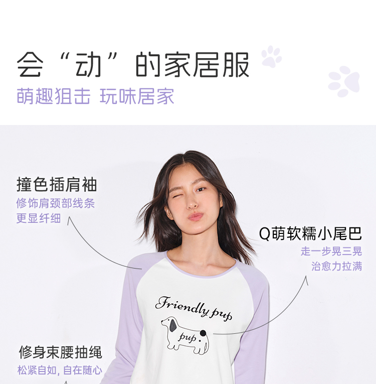 奶糖派墩墩尾睡衣女小狗圆领款宽松舒适可外穿家居服套装