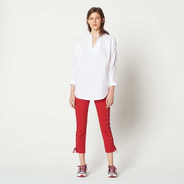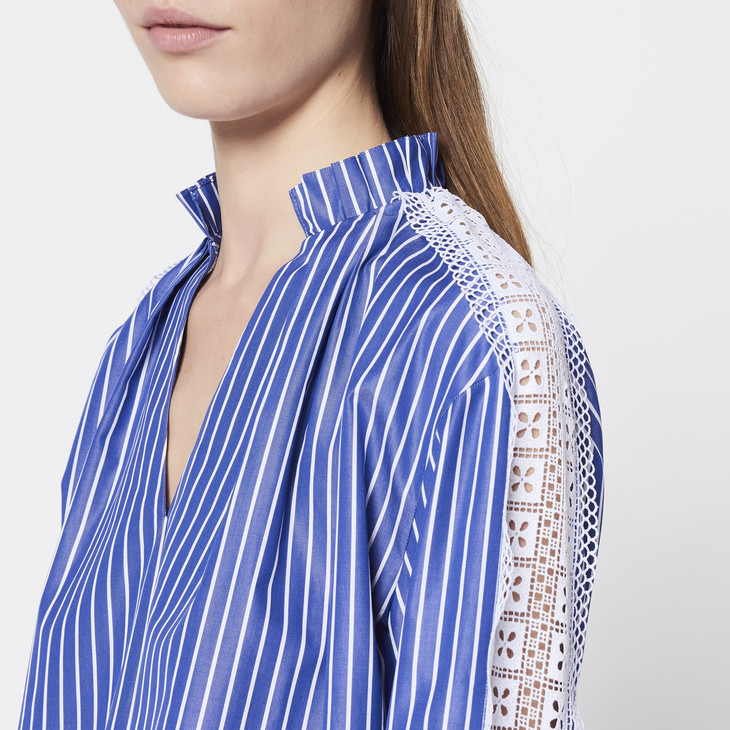 【服饰】。S家竖条纹拼接花边衬衣上衣