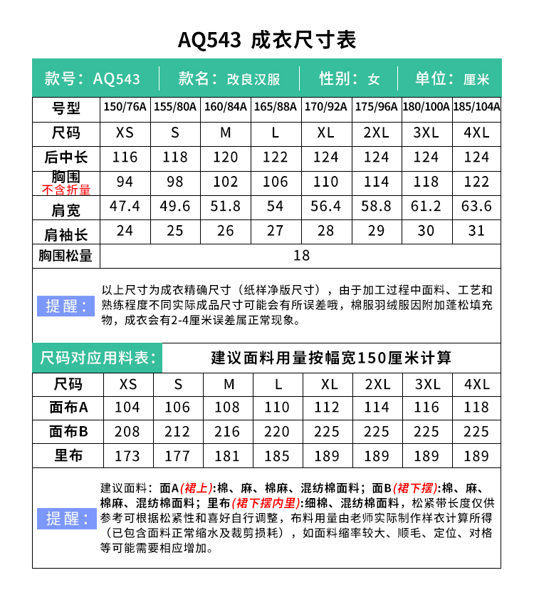 裁缝学苑AQ543新中式汉元素改良宽松汉服连衣裙纸样女装短袖裙子样板