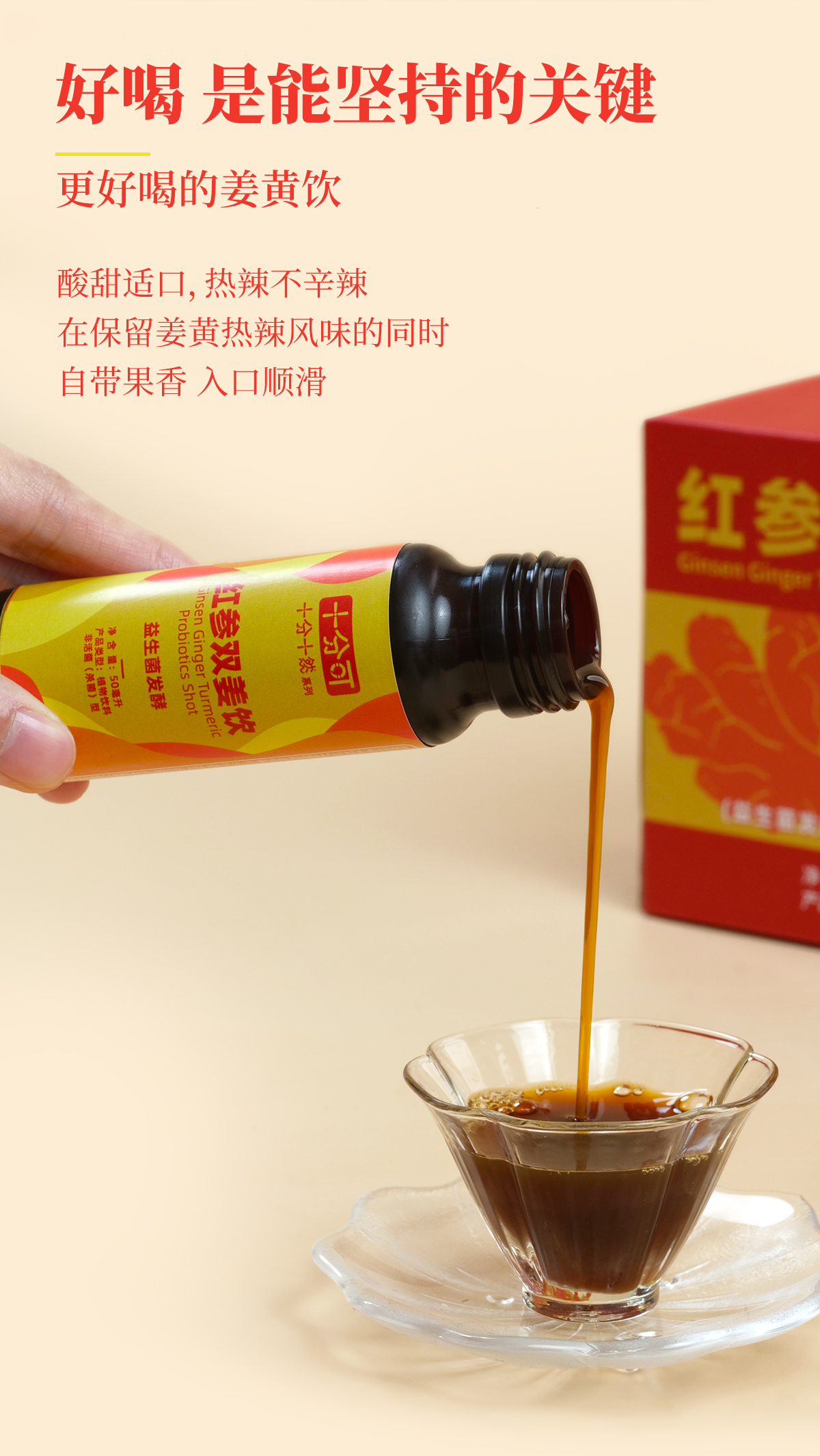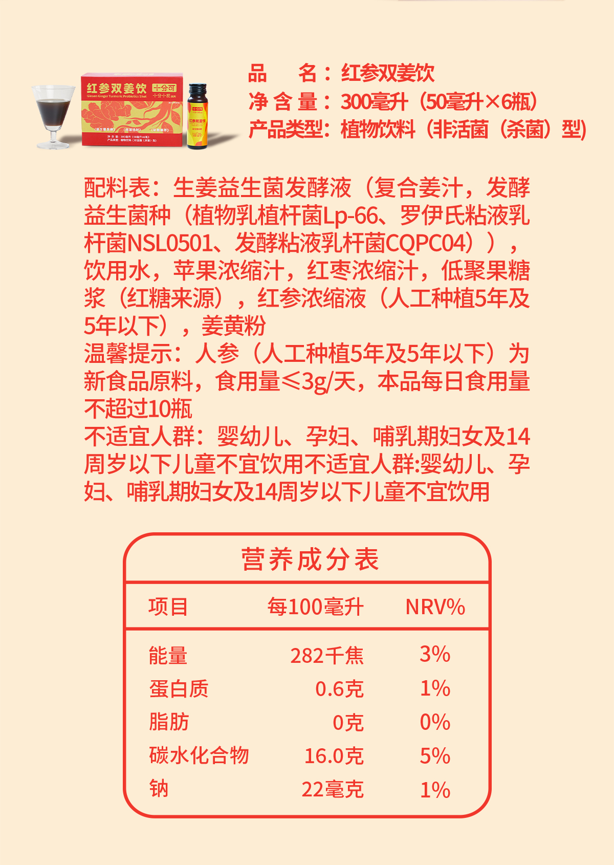 红参双姜饮植物饮料生姜姜黄超级食物6瓶/盒