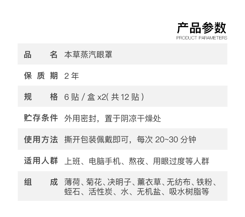 本草蒸汽眼罩2盒装 |本草配比无纺布弹力耳挂舒适不勒耳朵夜间睡眠可佩戴。薄荷菊花决明子薰衣草。铝膜单独包装易携带。