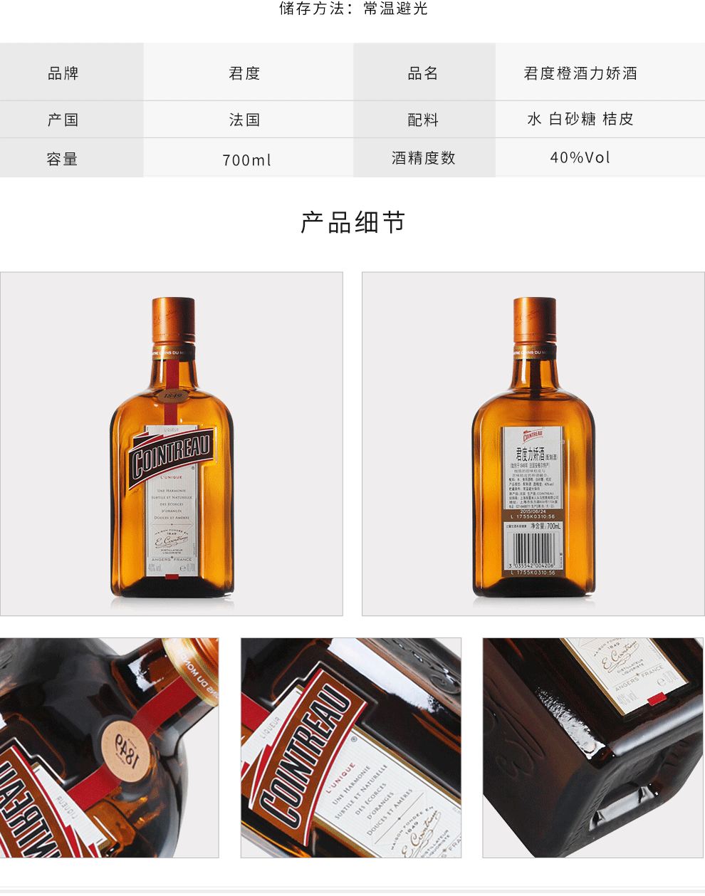 法国君度力娇酒 700ml*1瓶