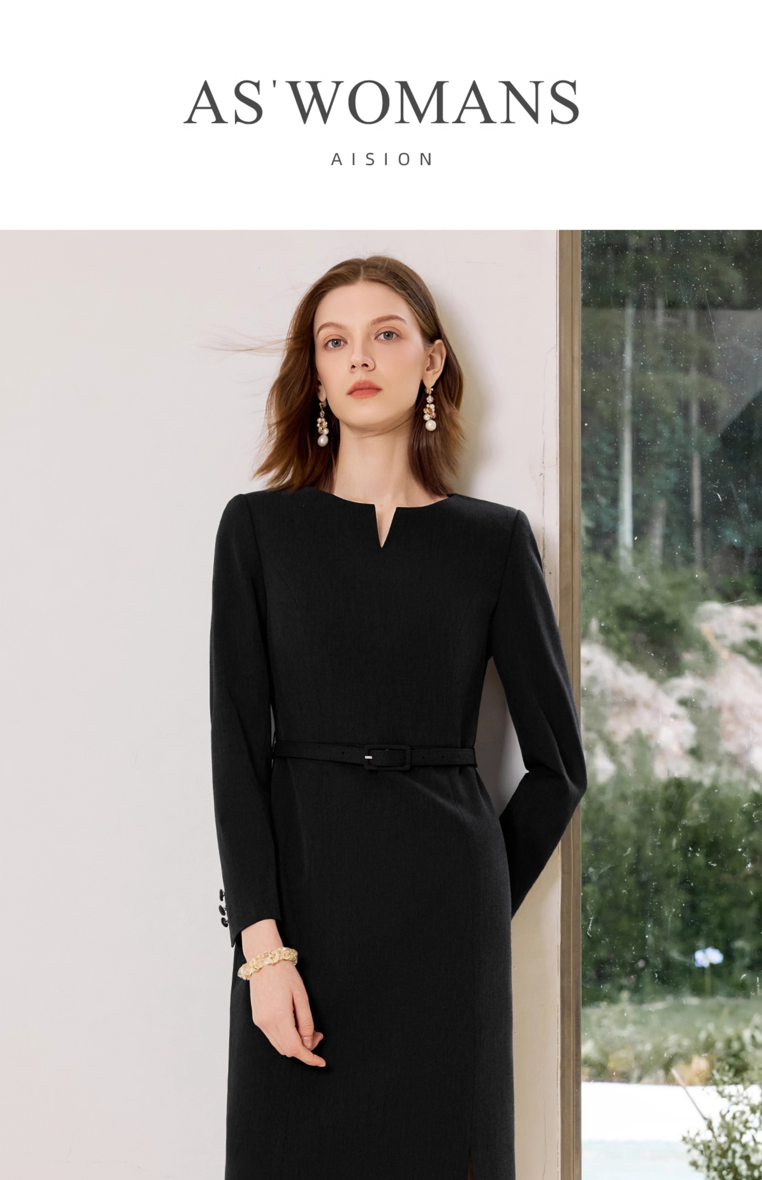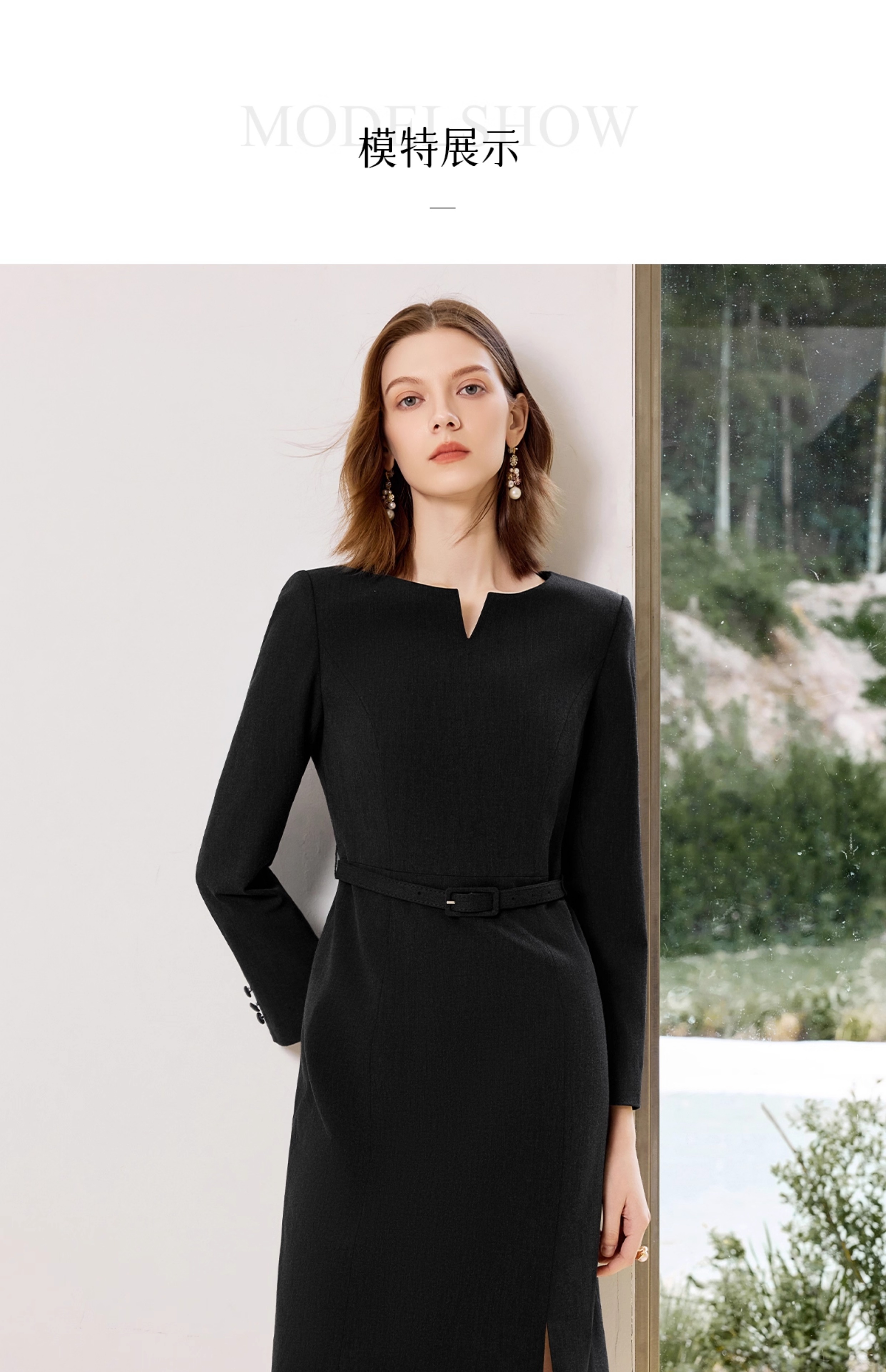 艾尚臣黑色西装连衣裙女气质高端小个子职业装主持人上镜装小黑裙
