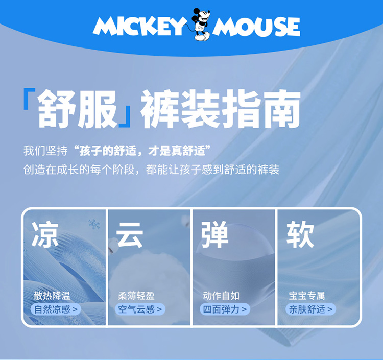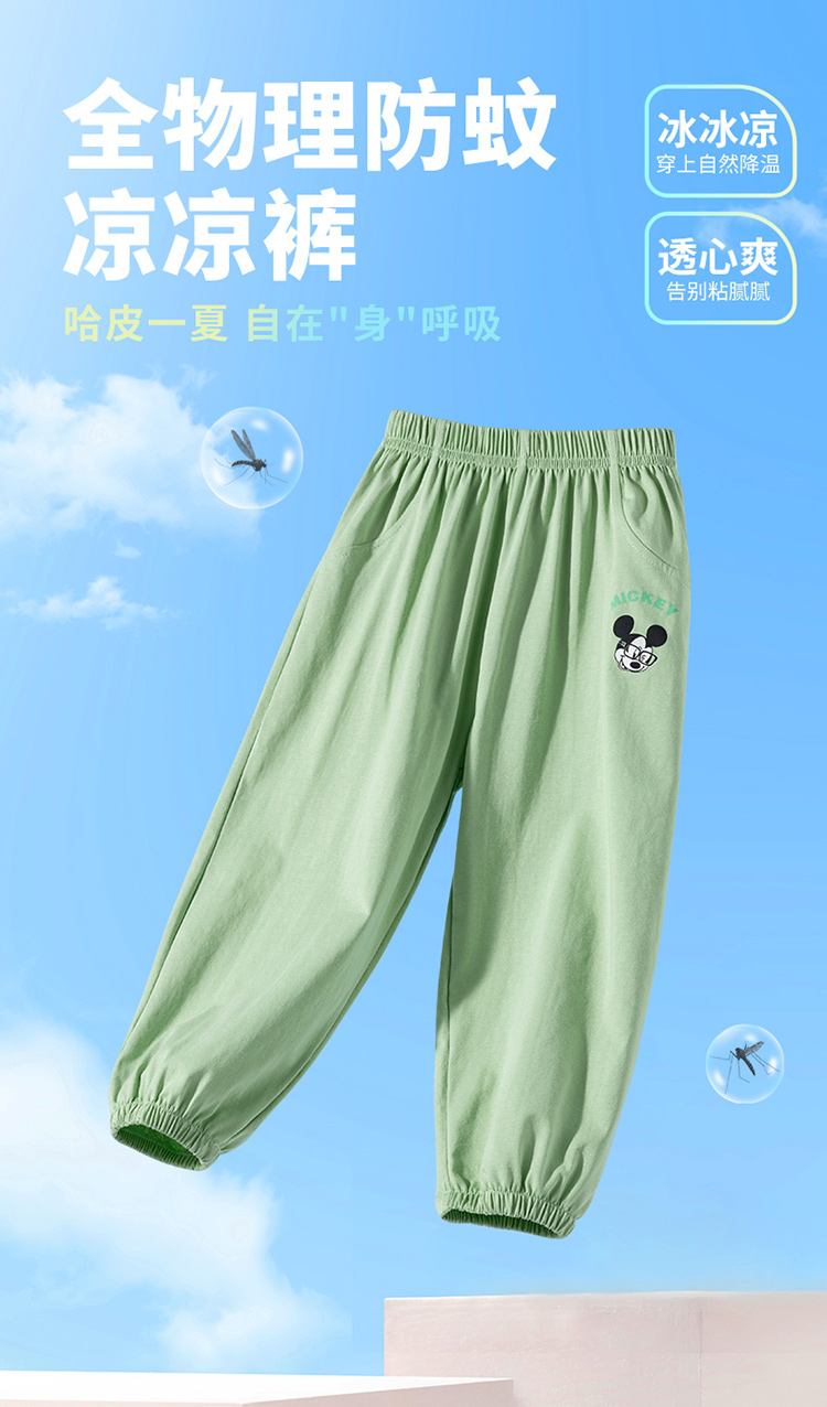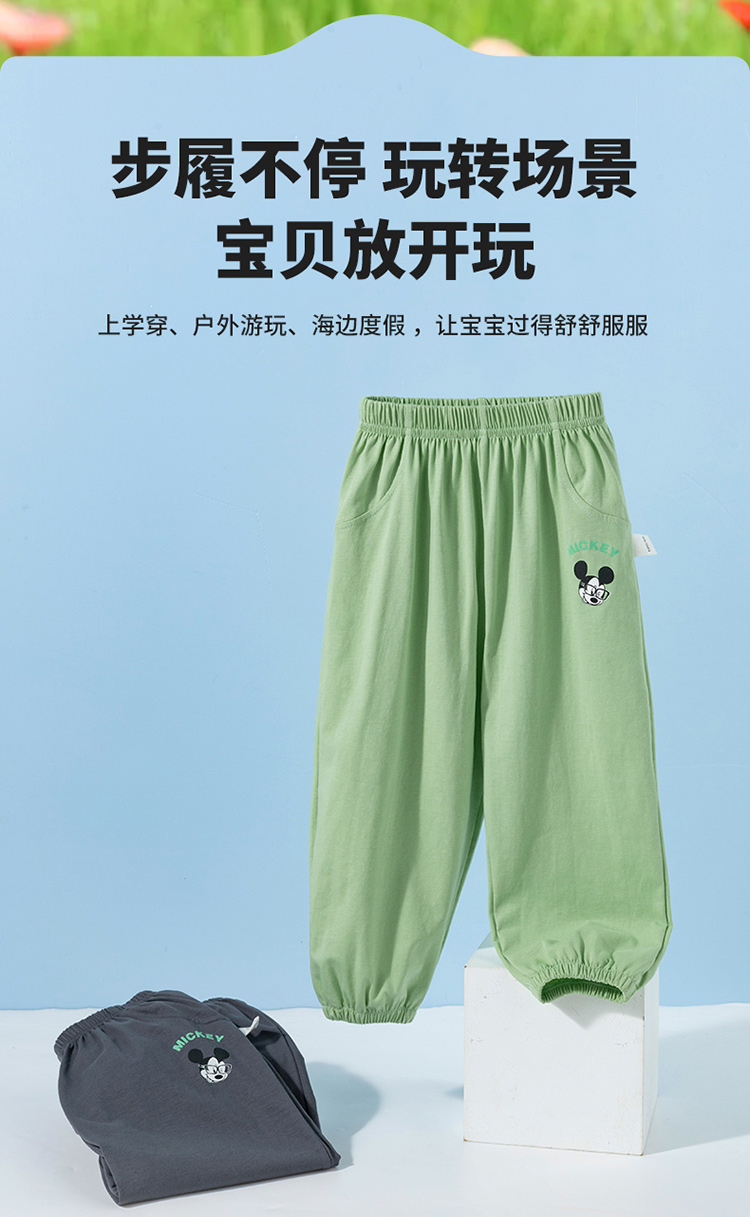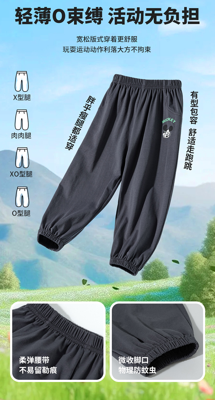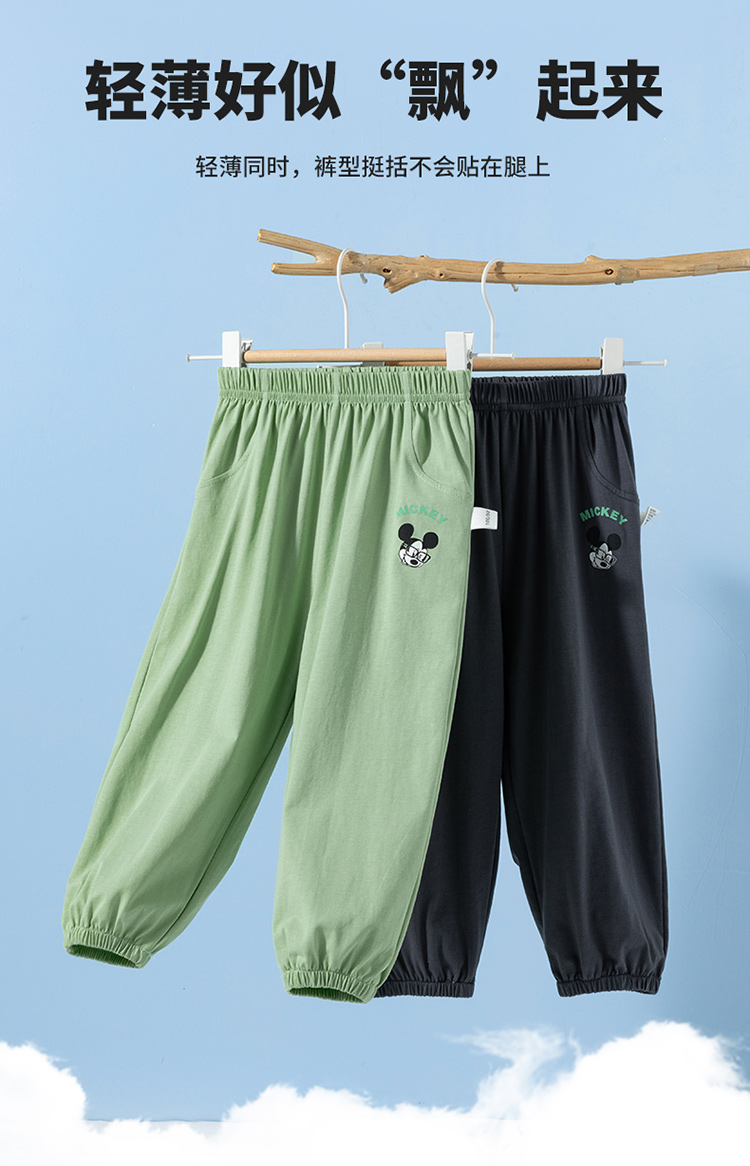 迪士尼2025春夏季新款男童米奇印花防蚊裤宽松透气速干凉爽运动裤休闲裤ZD2EK006