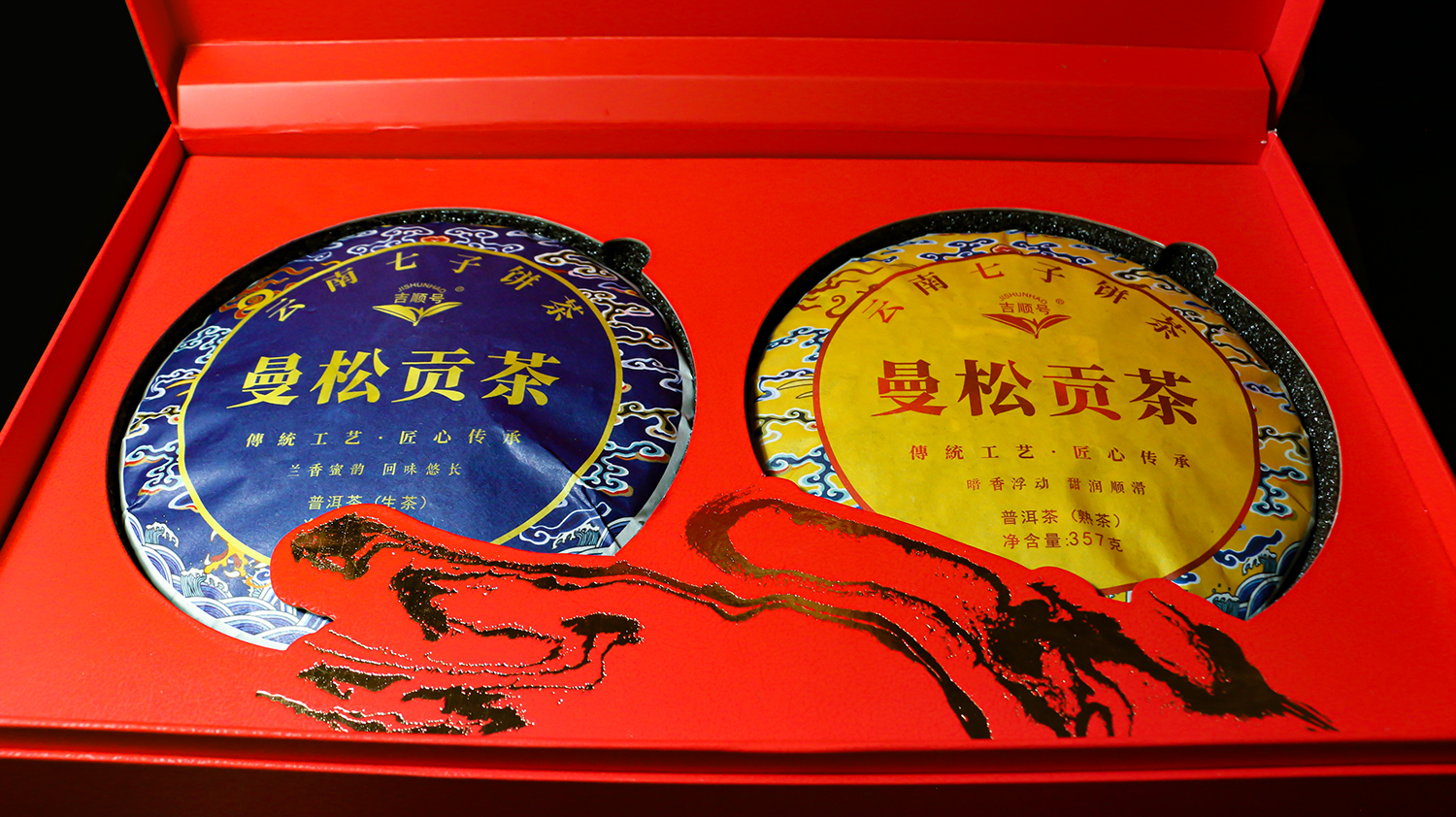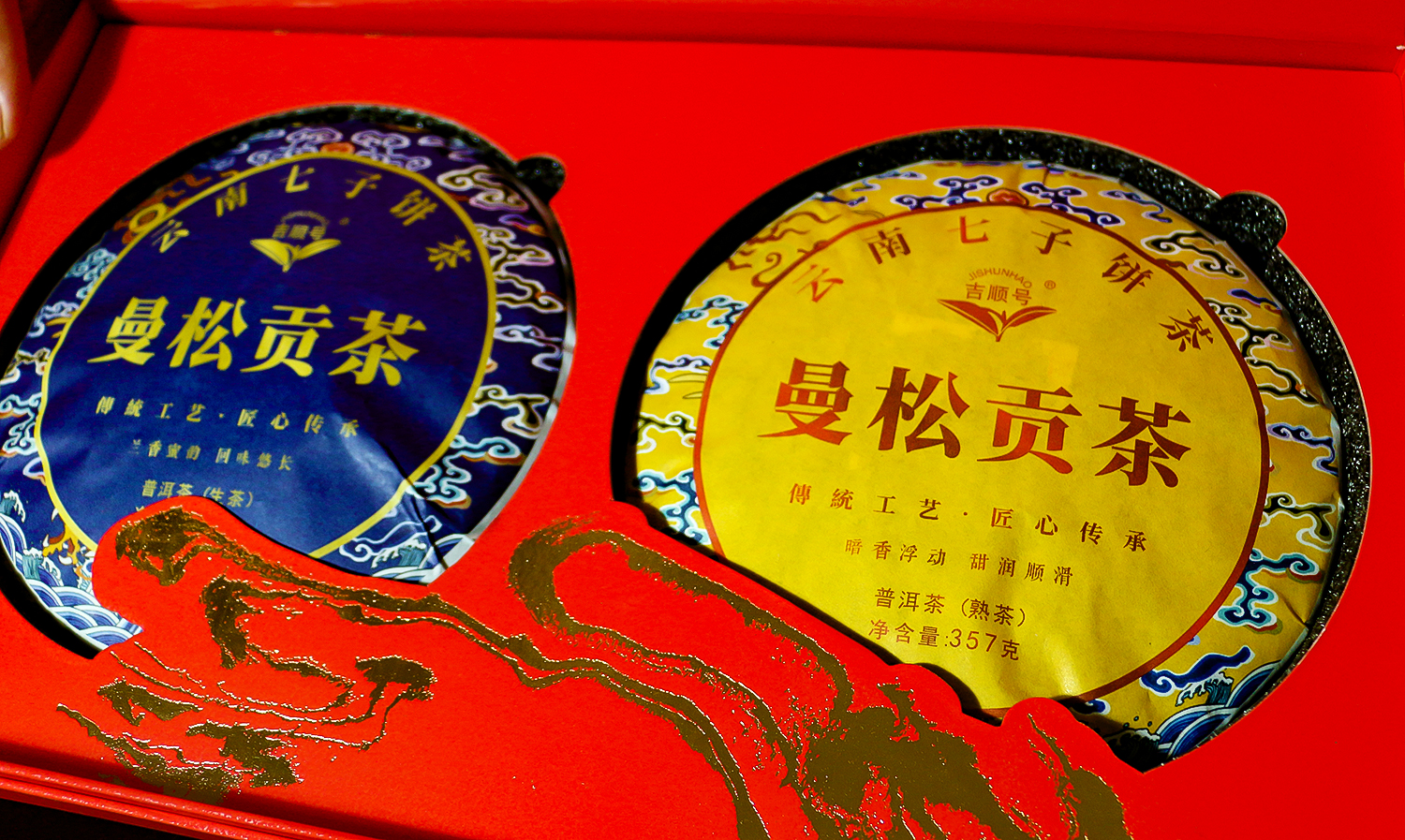【礼品茶】吉顺号曼松普洱茶生熟双饼礼盒357克*2饼(带礼盒) 商品图3