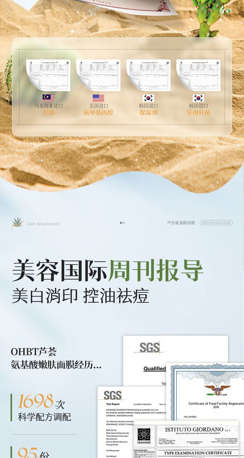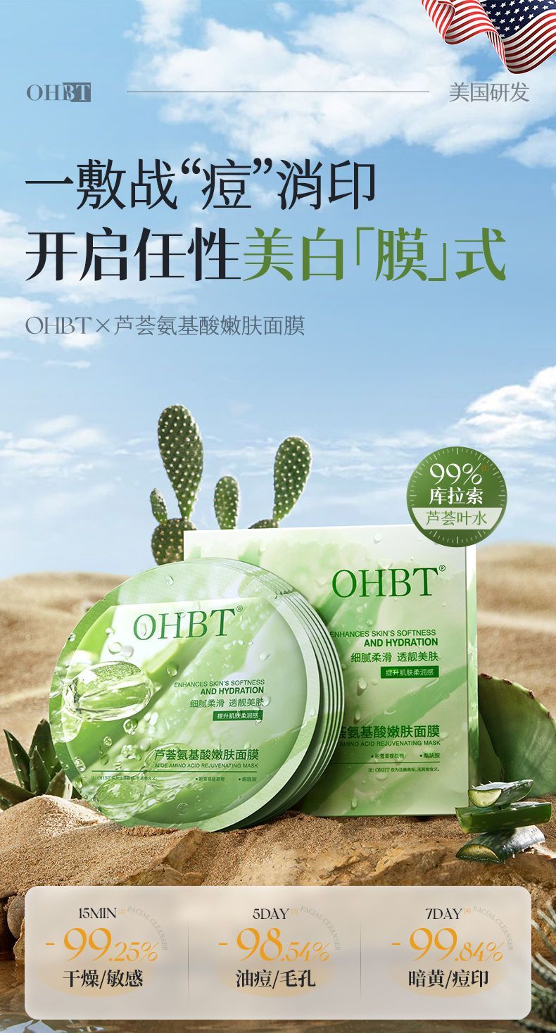 OHBT芦荟氨基酸嫩肤面膜28ml*10片