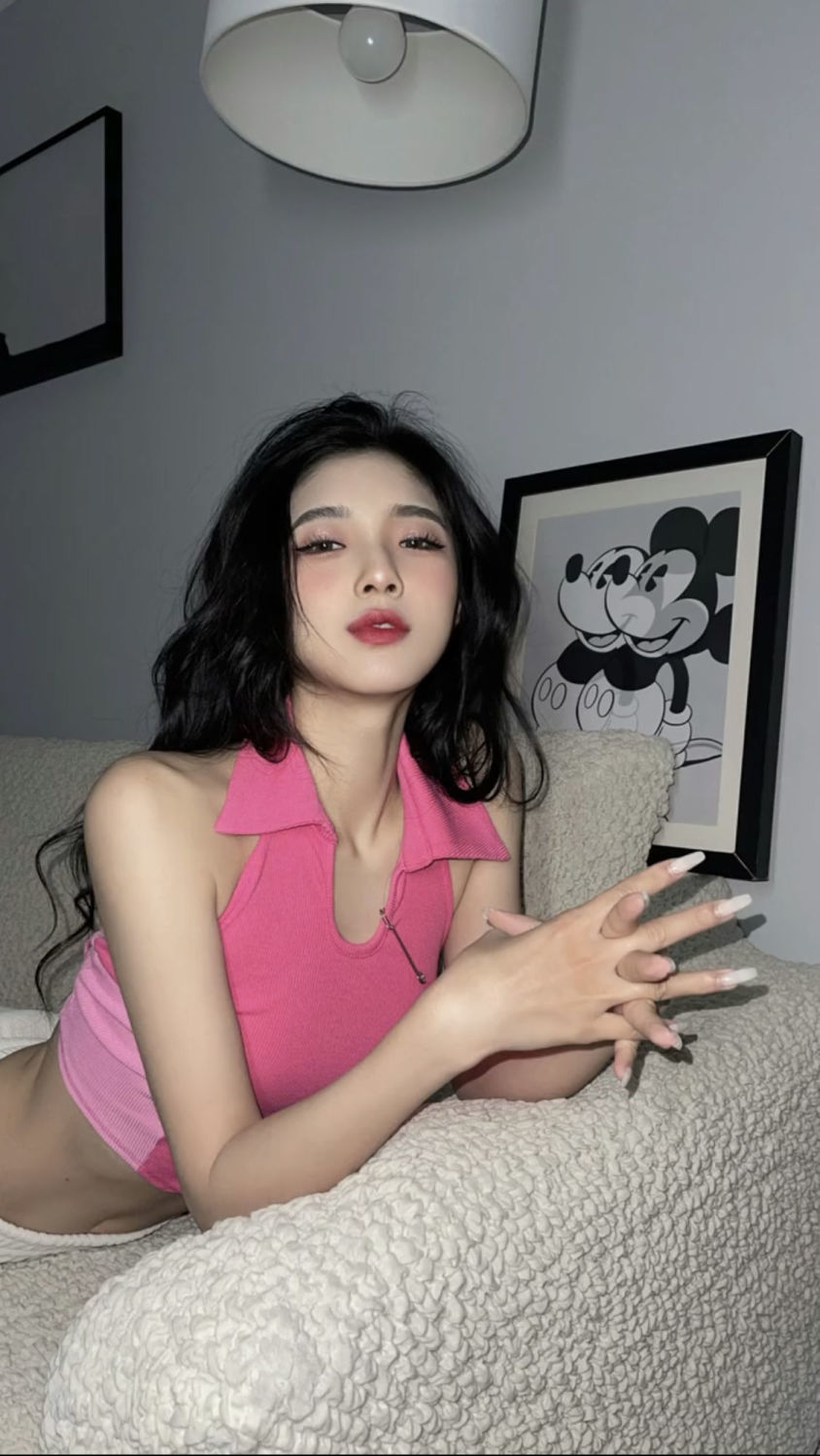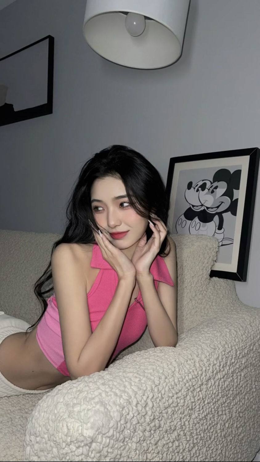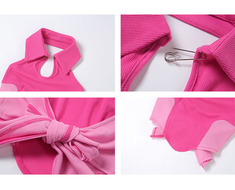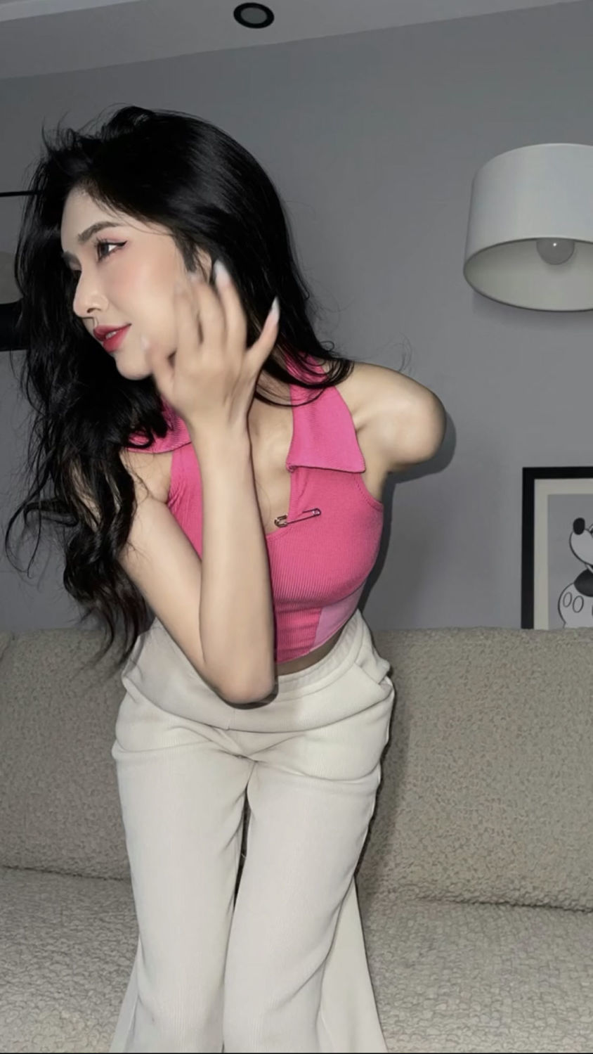【芭比风】黛唯梵爆款T恤女短款 纯欲POLO领紧身 粉色无袖内搭打底衫