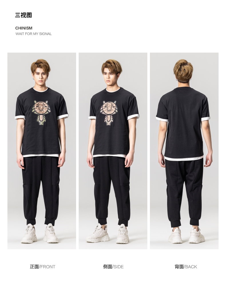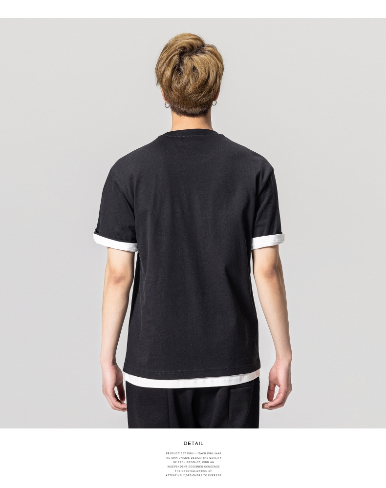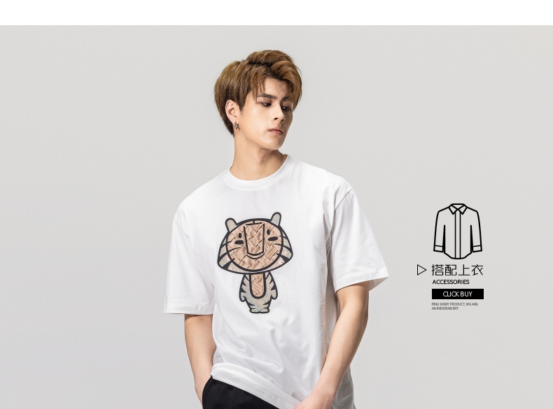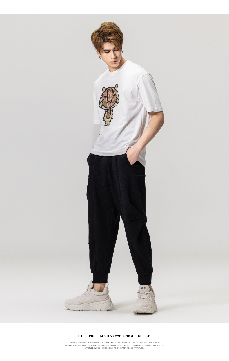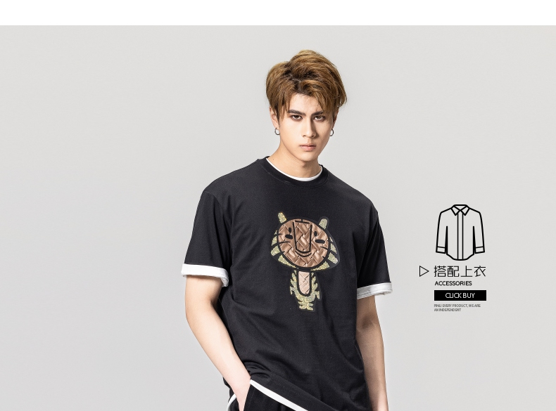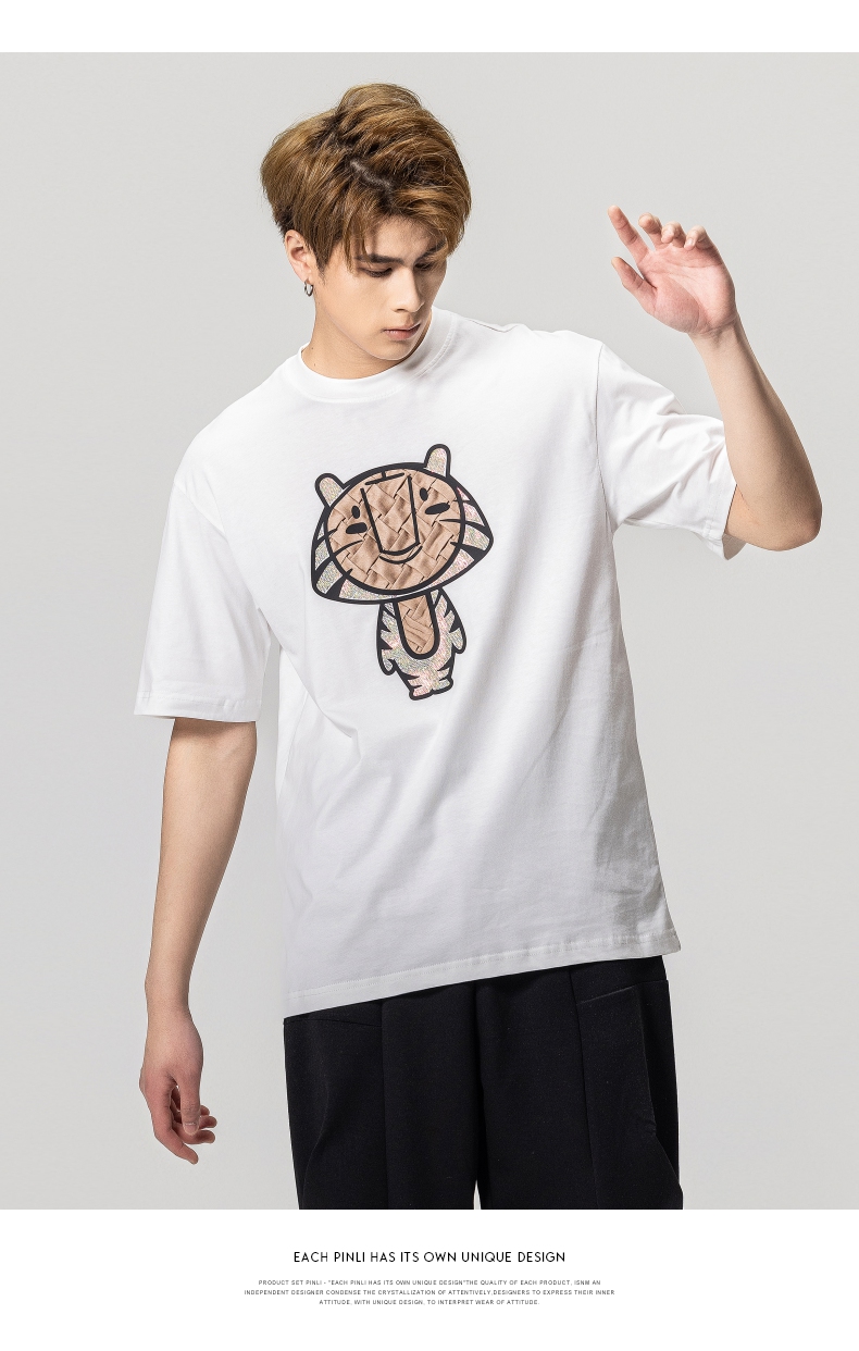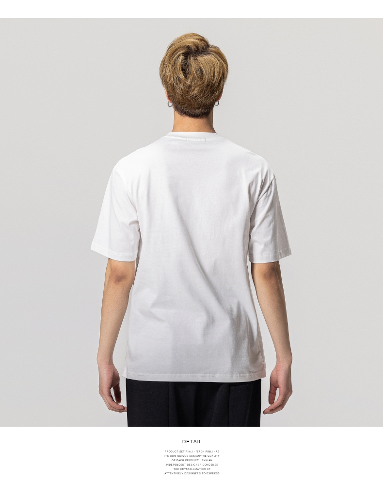 PINLI品立2023夏季新款圆领贴布烫钻短袖T恤男士上衣BG231111057