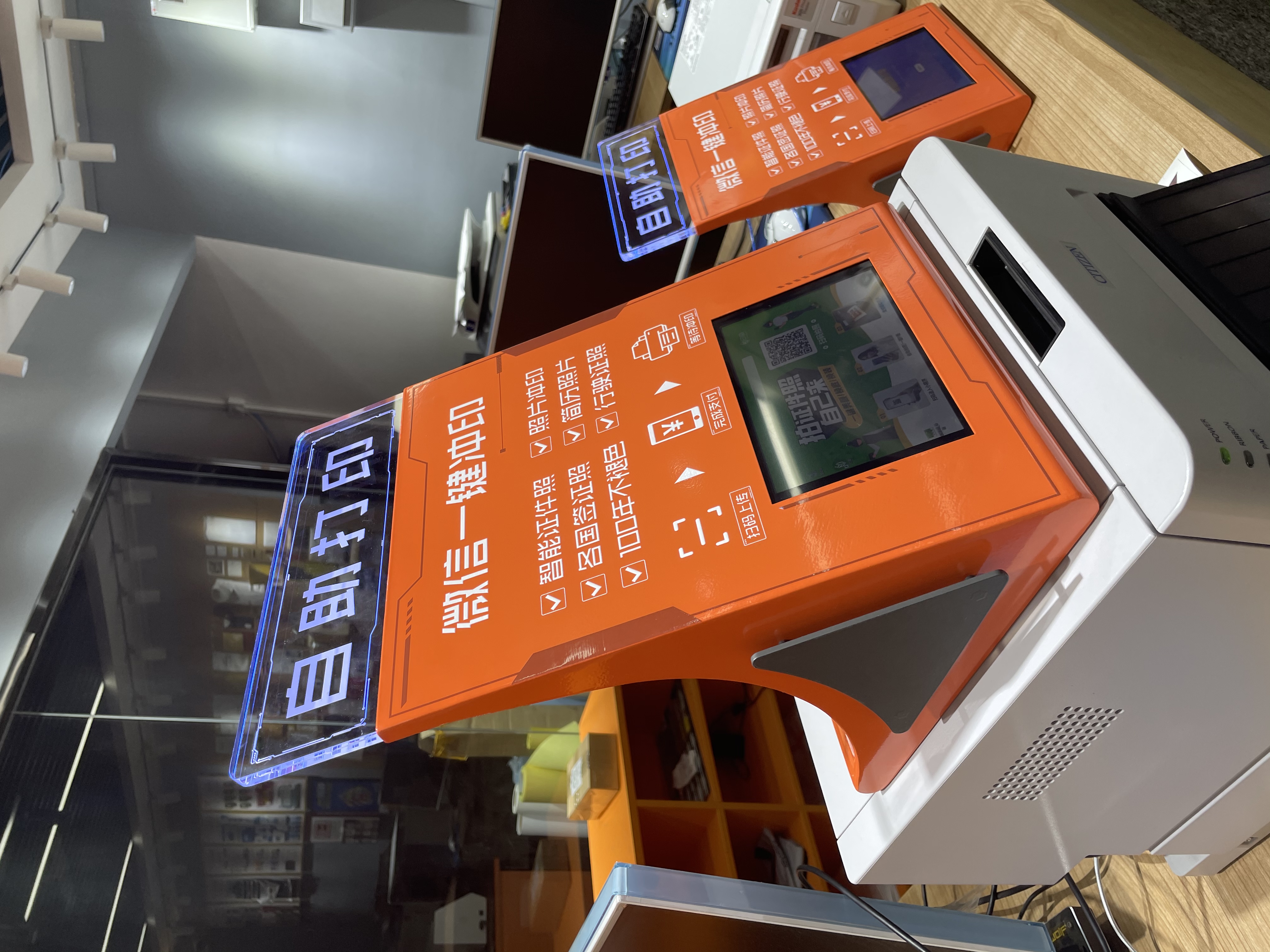 万用自助打印终端(不含打印机)7寸触摸屏工控WIN10电脑+定制钣金机甲外壳透明亚克力发光牌