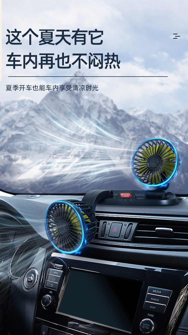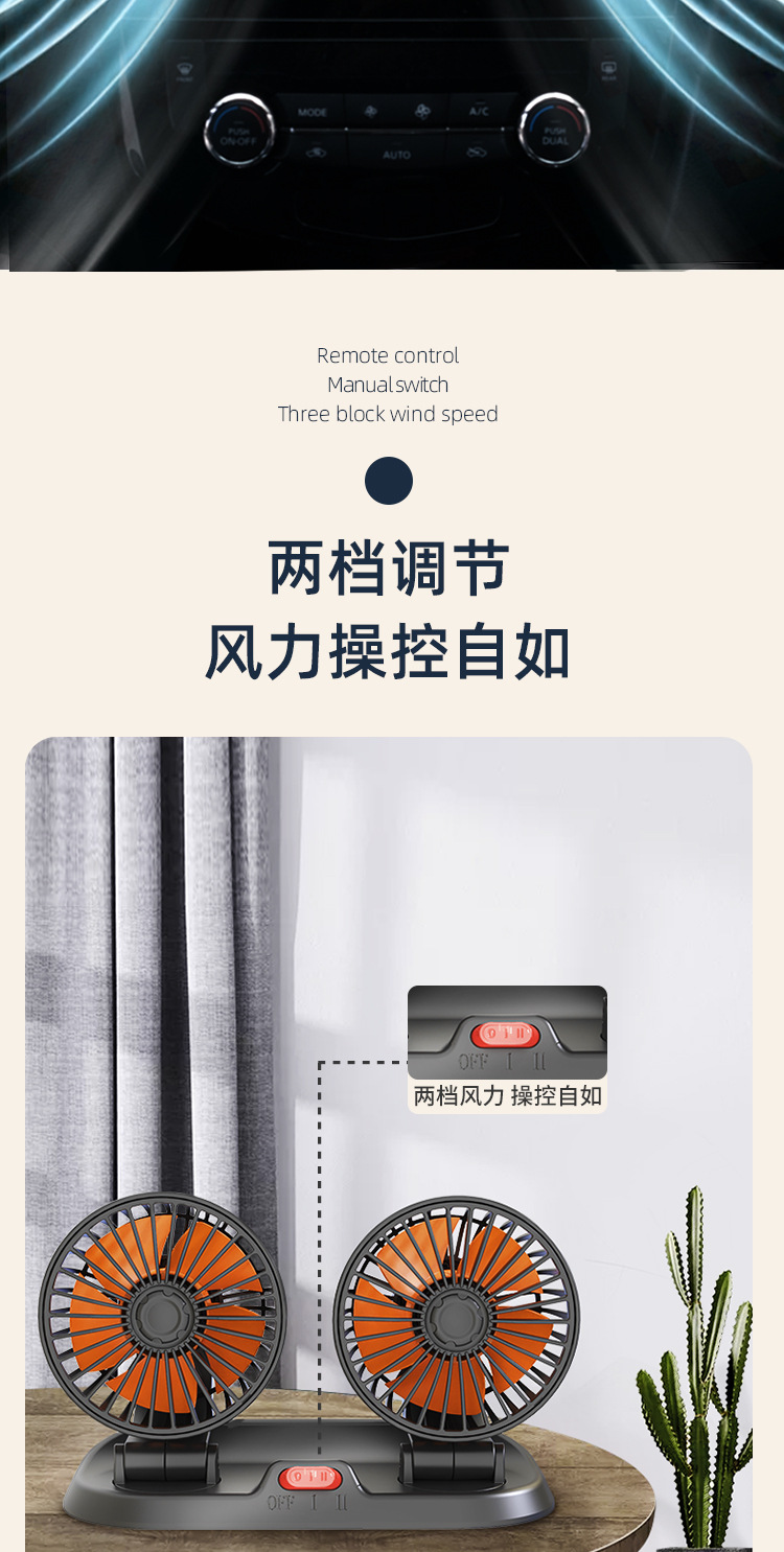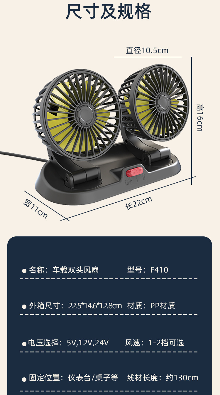 【风扇停车牌二合一】润东 车载双头风扇 轿车货车可用 12V/24V/USB可选